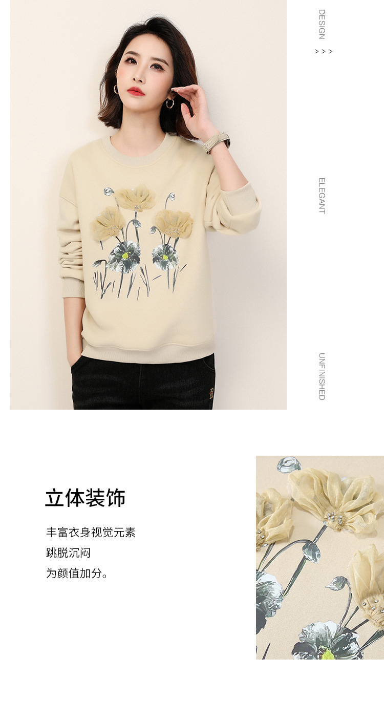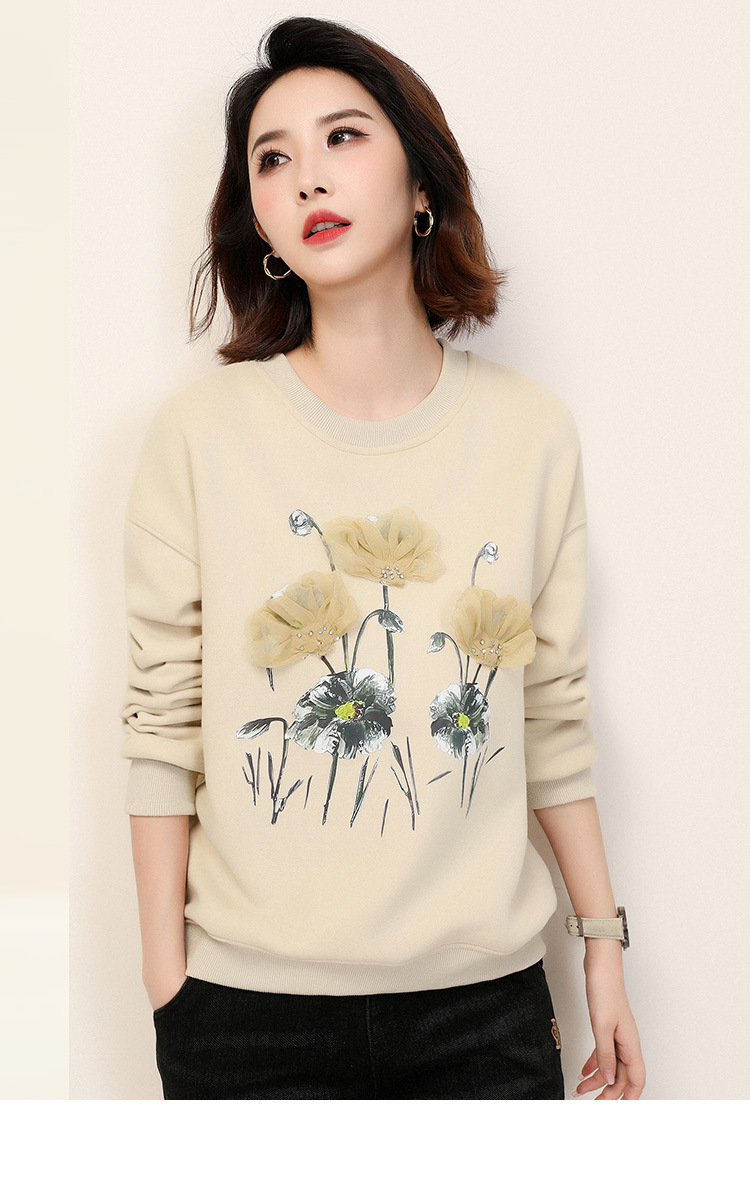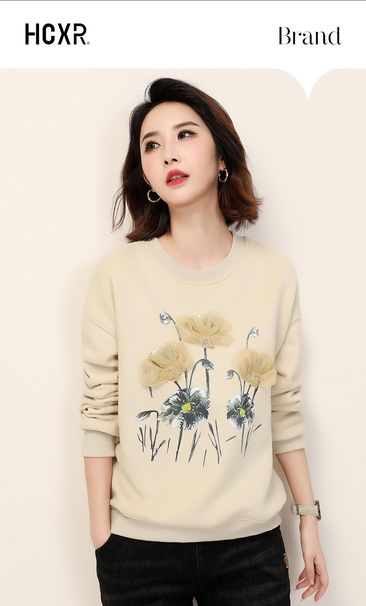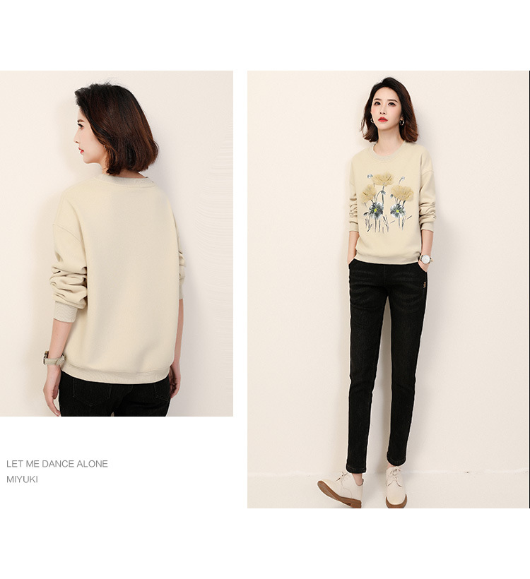 复古文艺印花圆领长袖加绒卫衣,女冬装新款休闲百搭套头上衣GYM-D0469