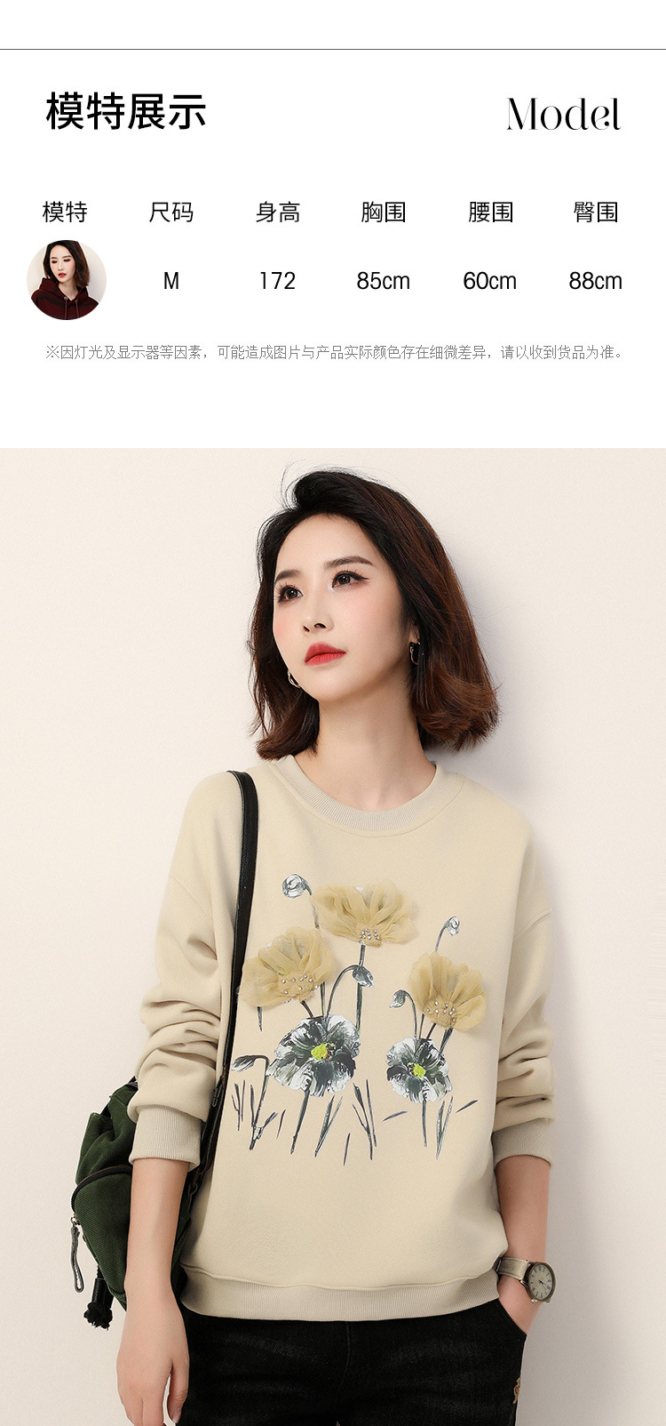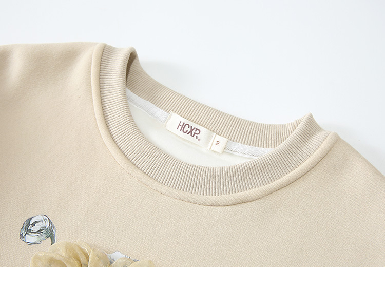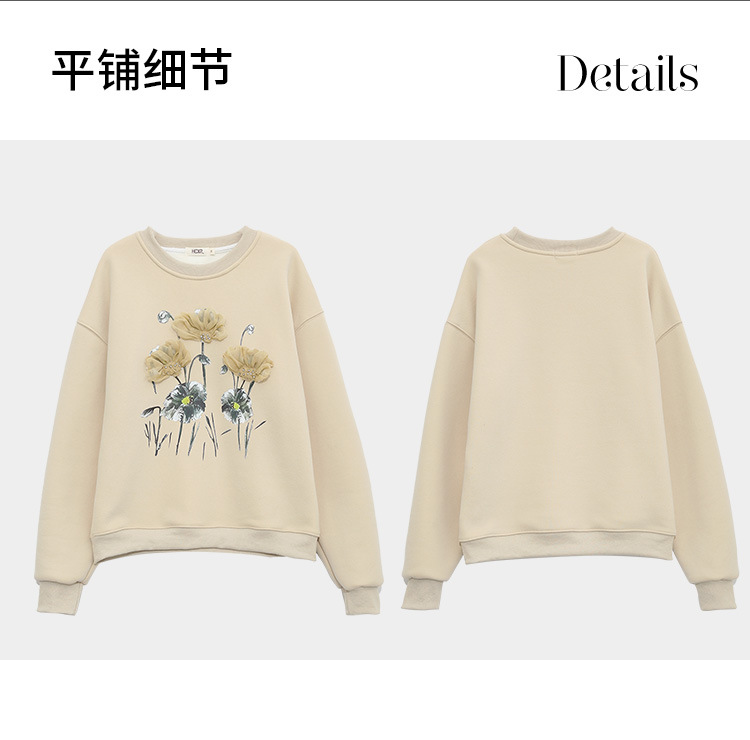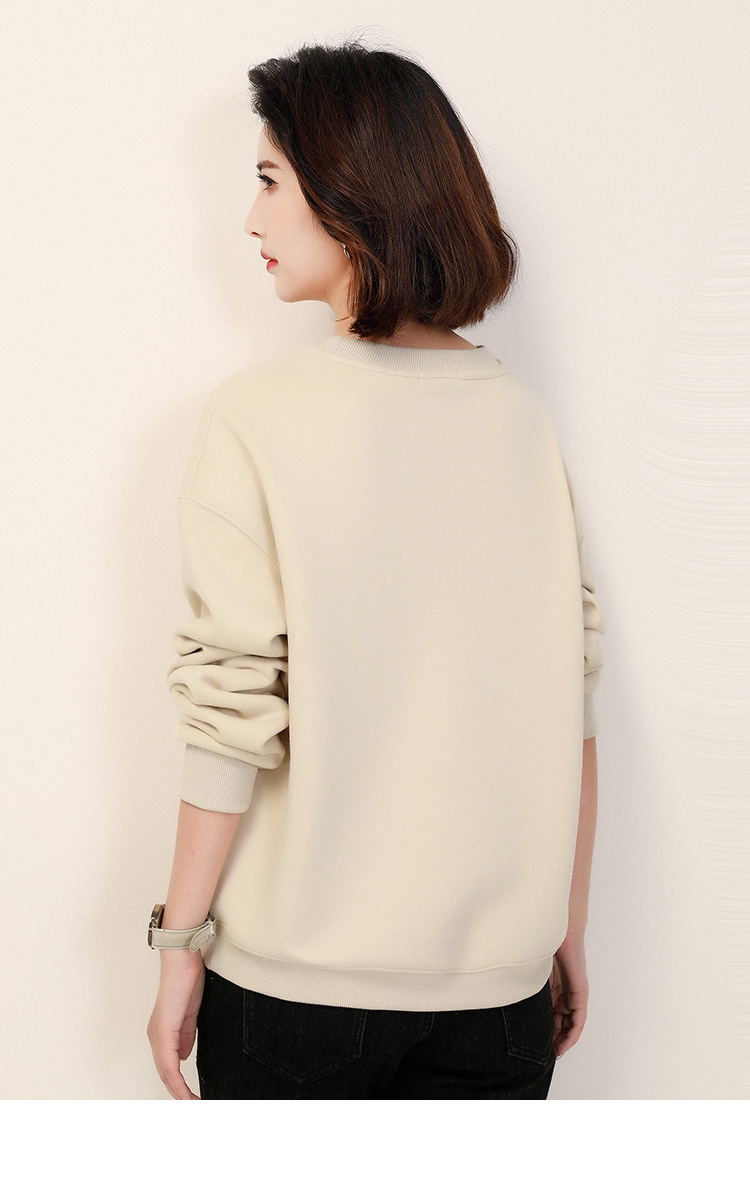 复古文艺印花圆领长袖加绒卫衣,女冬装新款休闲百搭套头上衣GYM-D0469