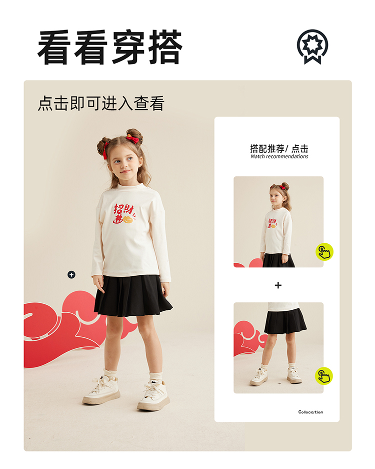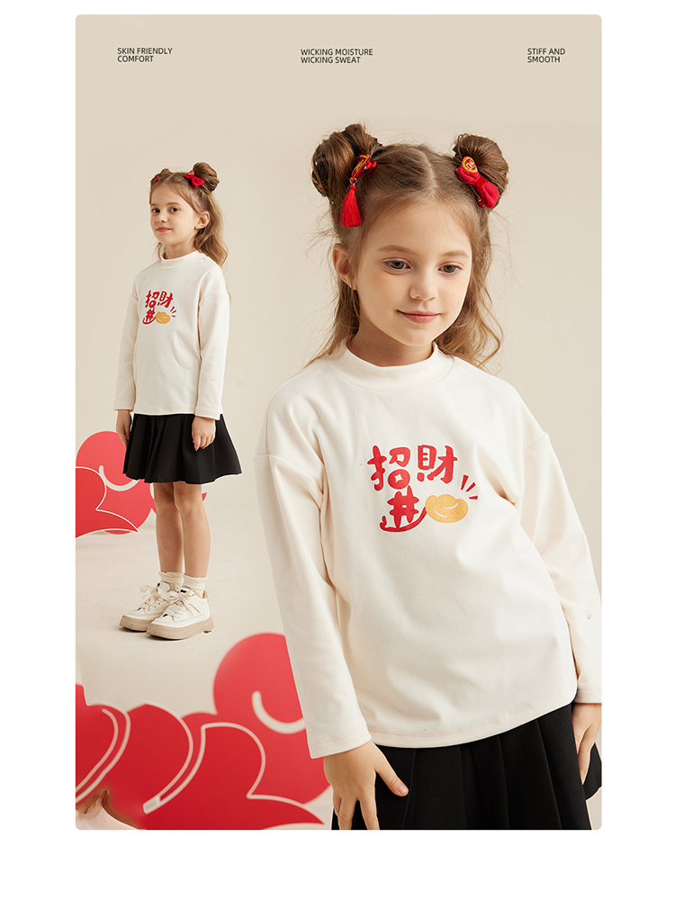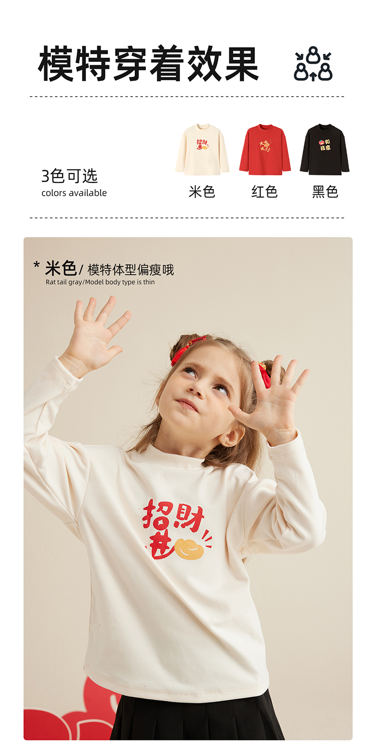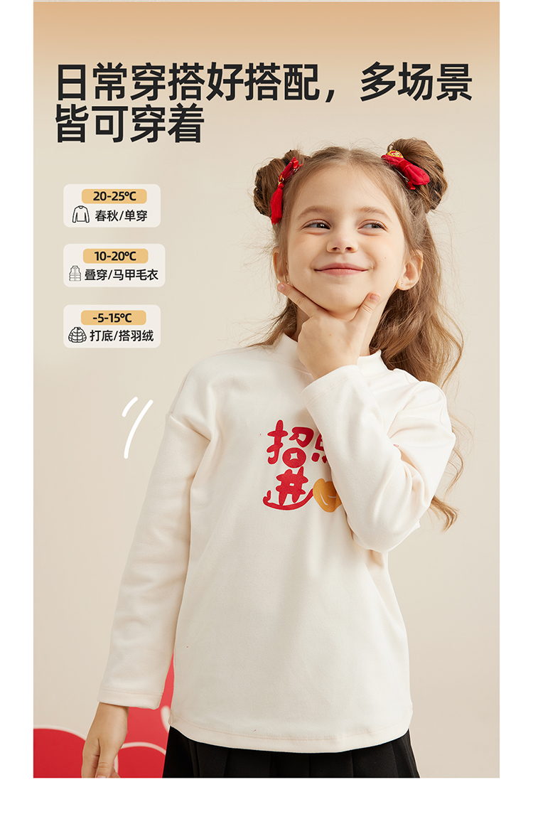 【秋冬上新】【把好运穿在身上】儿童新年小立领印花打底PDT2316