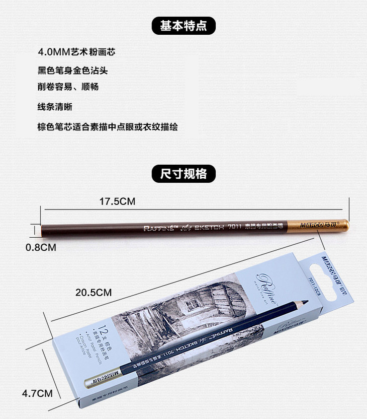 特价 清仓炭笔 马可Marco7010炭画铅笔 绘图绘画素描铅笔 软中硬炭笔