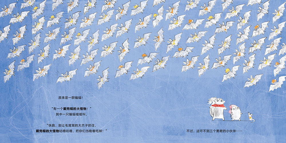 刺猬亨利、松鼠塞米和老鼠马文是好朋友,他们三个都听过这个可怕的都市传说。三个小伙伴决定展开一场暗夜大冒险,去查查真相究竟是怎样。他们三个在黑夜里找啊找,遇到了一群老鼠、一群蝙蝠,还有一群猫,他们都被大怪物吓坏了。不过三个小伙伴可不怕,他们坚持寻找大怪物的踪迹,非得亲眼见见它不可。没想到,他们的身后正跟着……戴兜帽的大怪物!