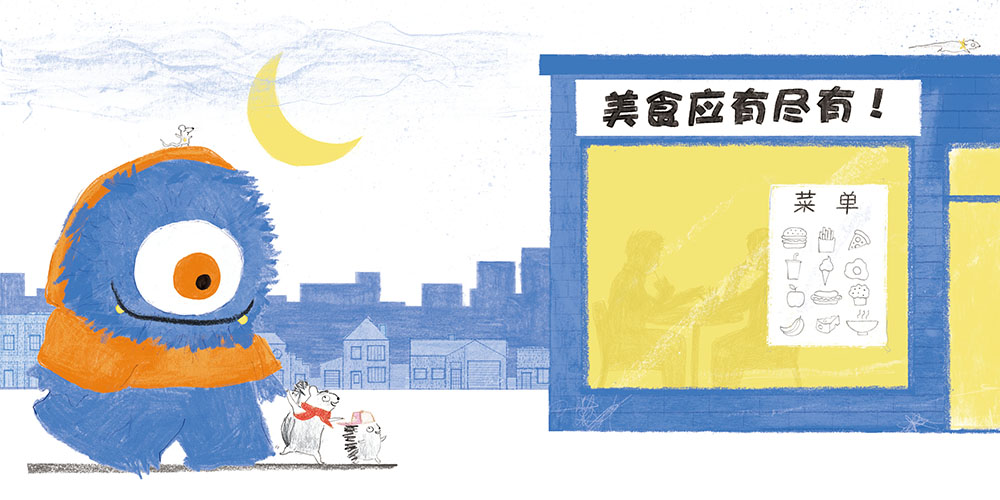 (2)富含趣味性:诙谐的叙事和神转折的故事,图文各有叙事,巧妙结合。文字叙述中,三个小伙伴一直在寻找大怪物的踪迹,然而在图画中,读者以上帝视角观察到,怪物正不知不觉跟在他们身后。