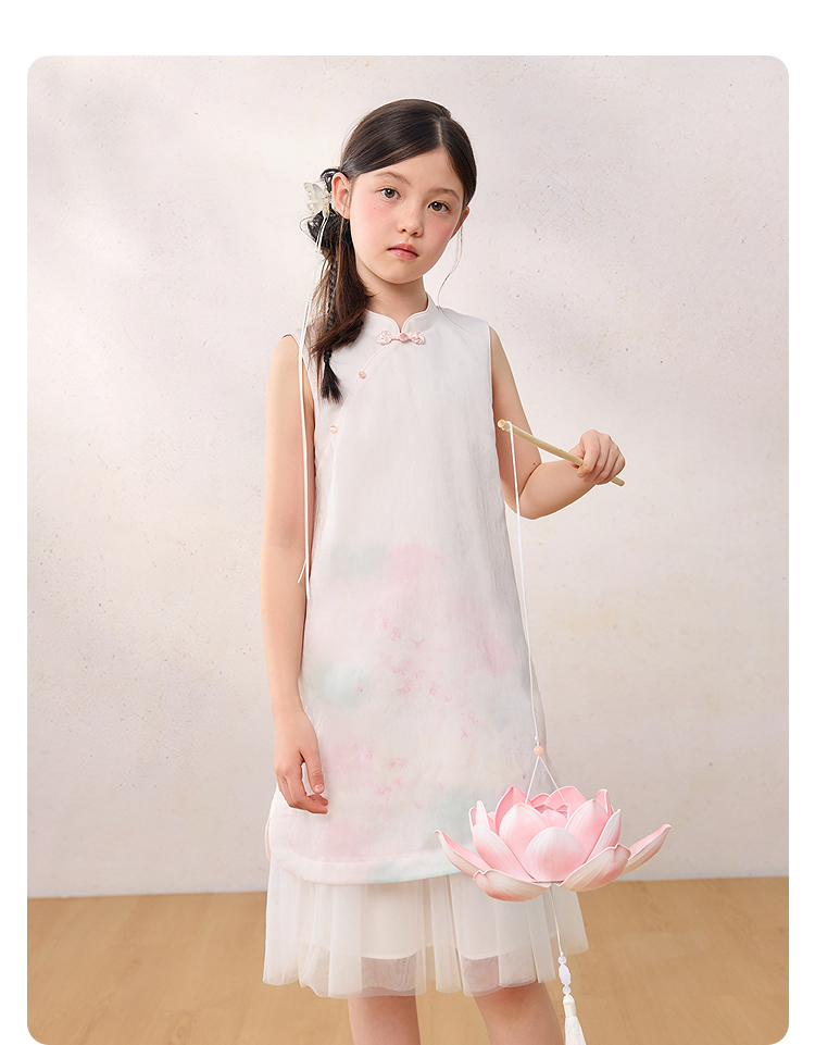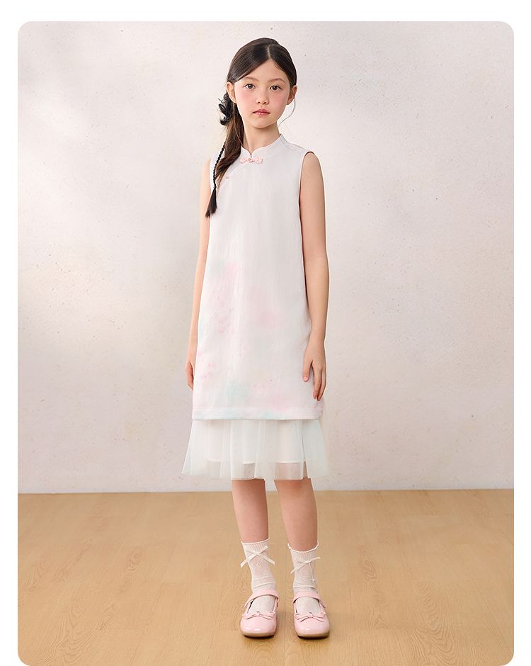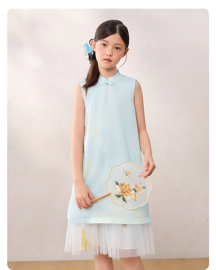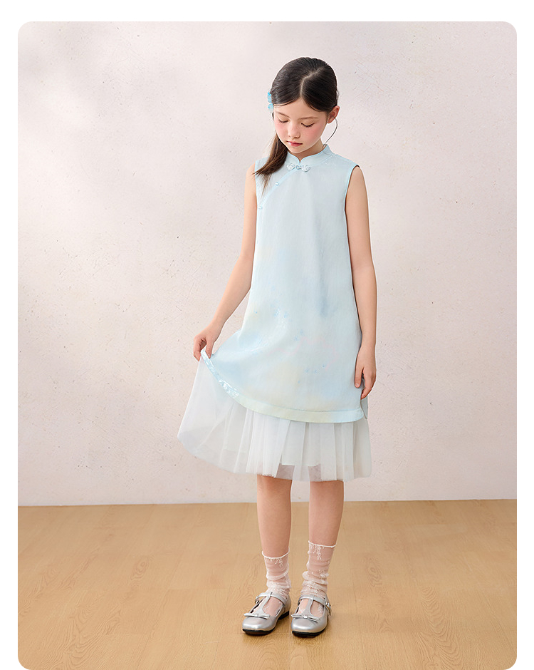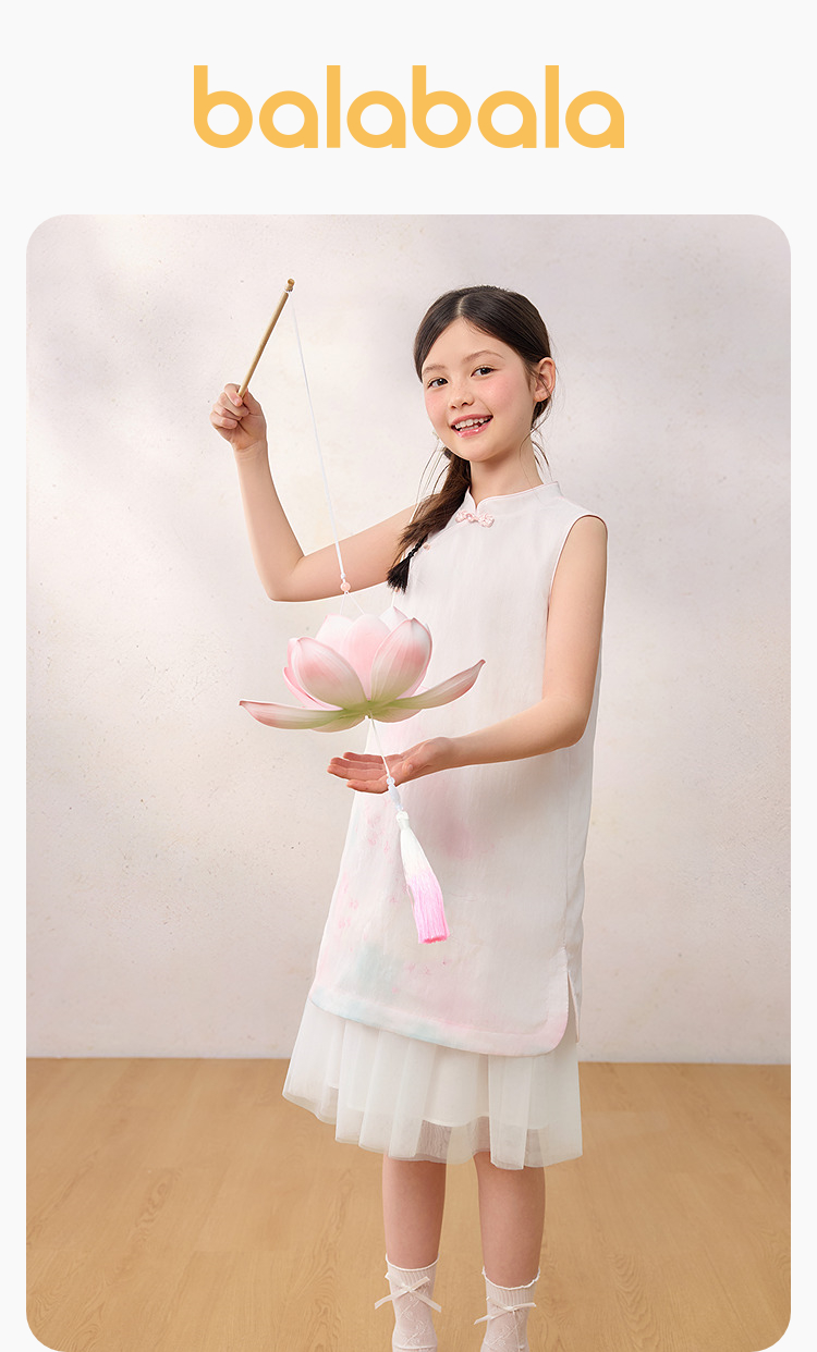巴拉巴拉童装女童裙子儿童连衣裙2026夏新款新中式旗袍裙拼接网纱