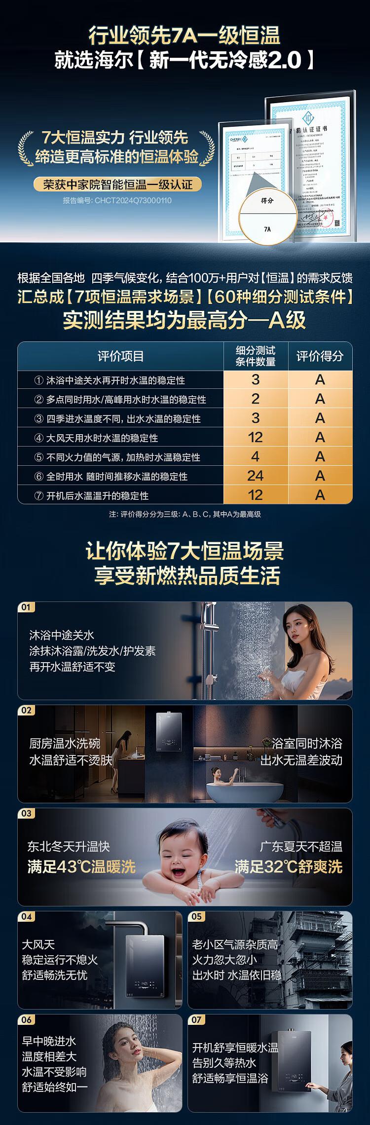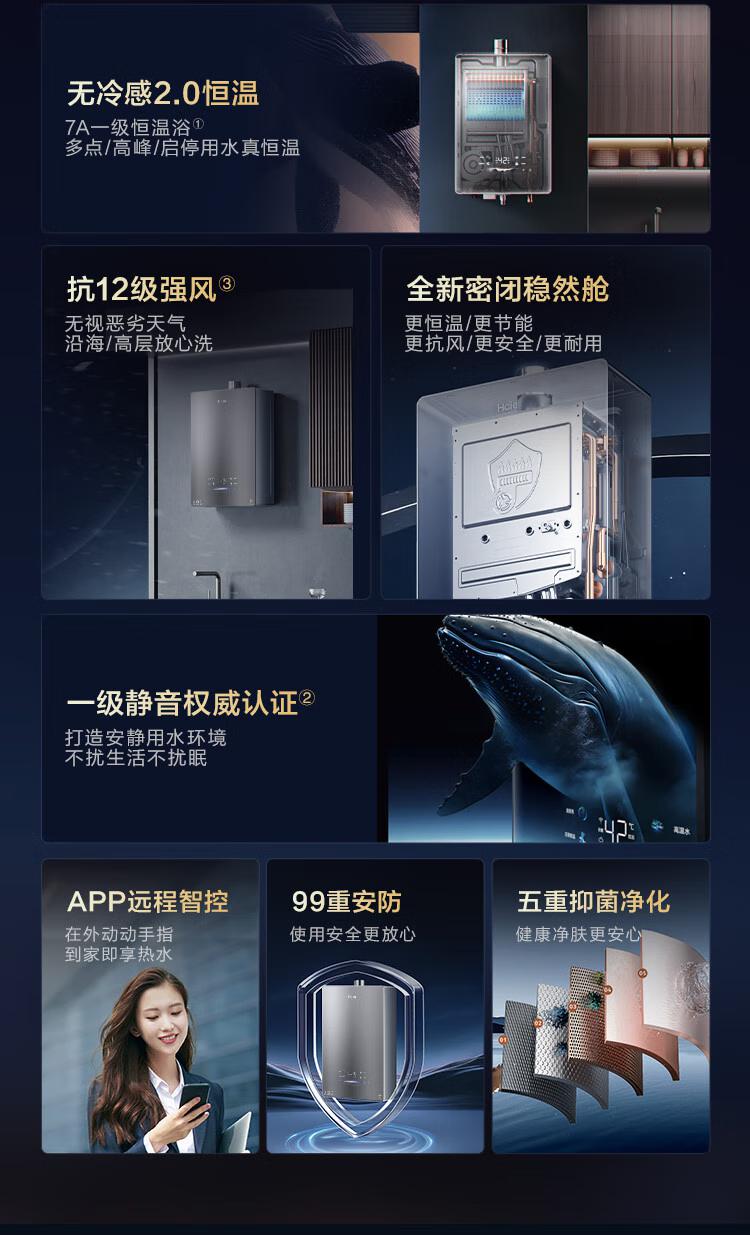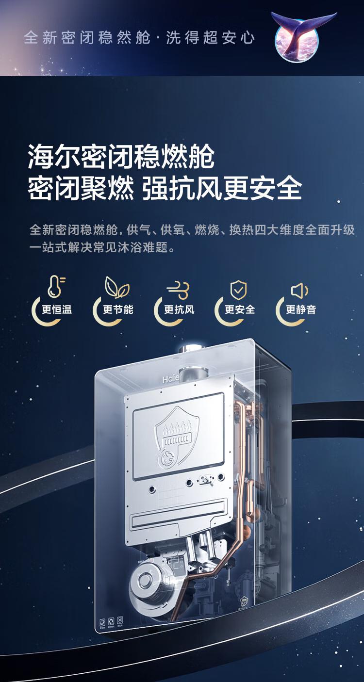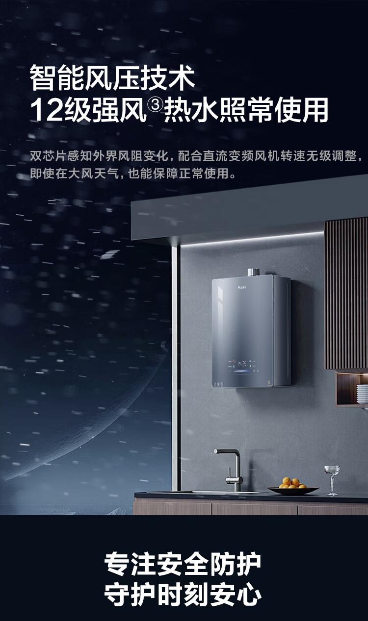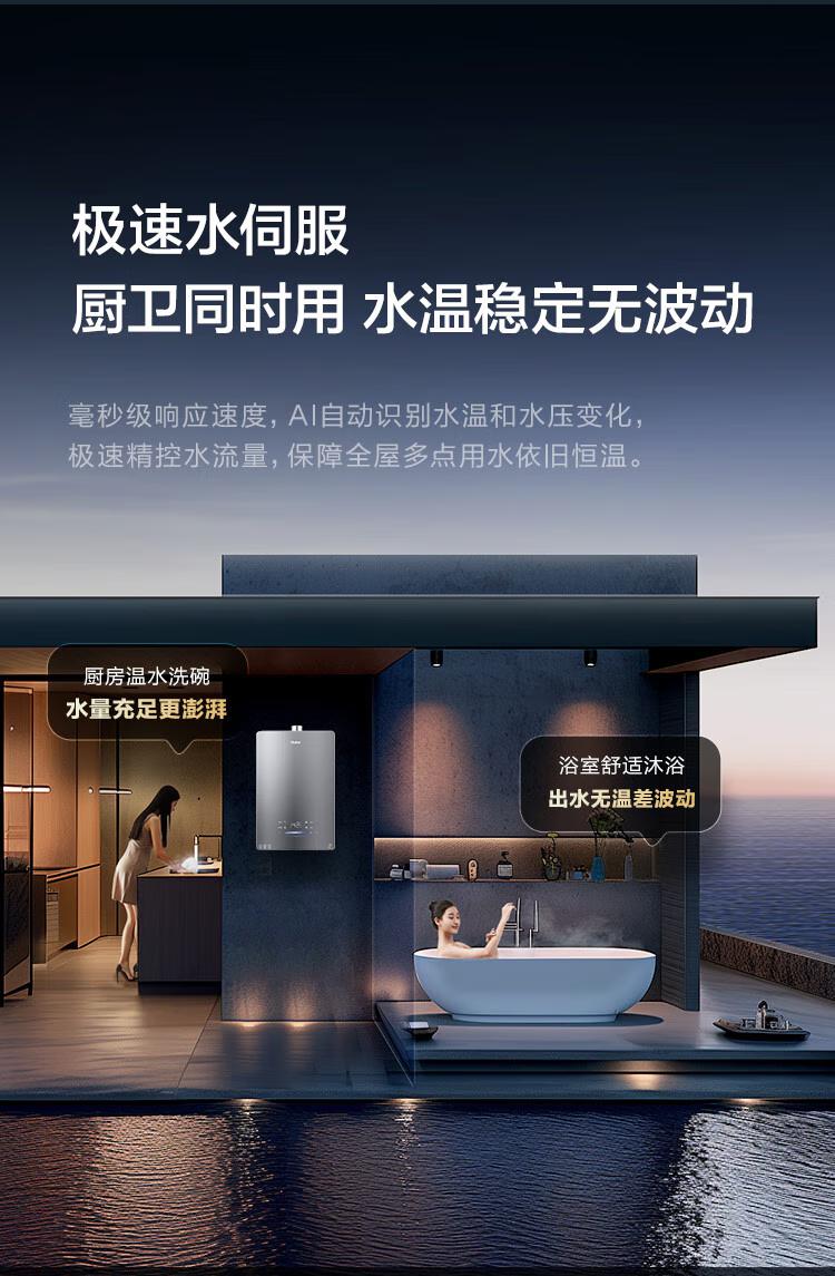 海尔(Haier)16升燃气热水器家用天然气水伺服下置风机WiFi远程智控 变频零冷感7A一级恒温节能省气智能防冻K50 16L 水伺服下置风机JSQ31-16K50FU1