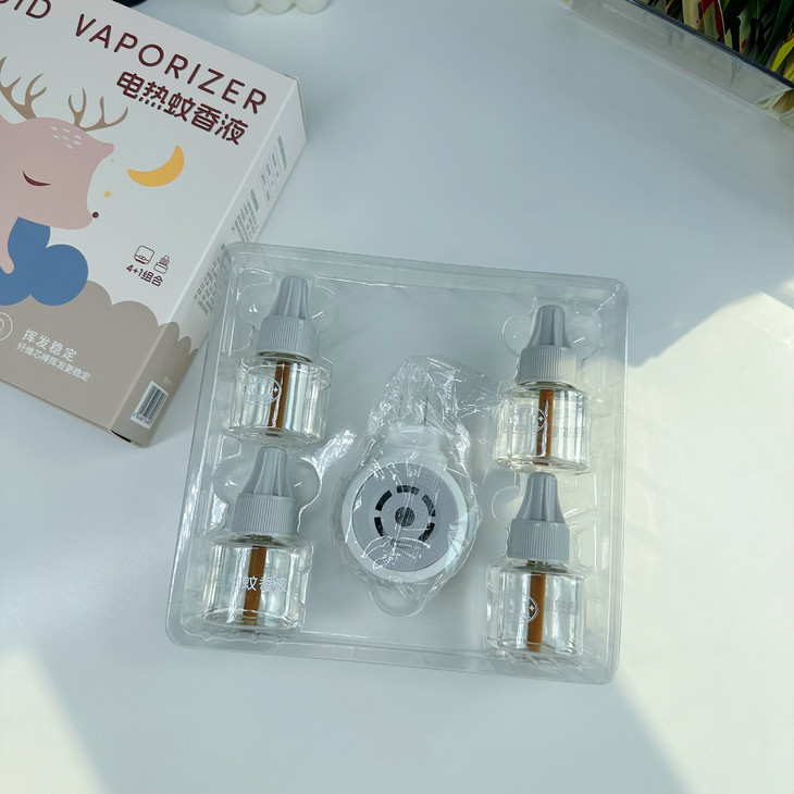 一个加热器+四瓶驱蚊液, 稳定恒温使用不烫手 现在能够摆脱蚊子的折腾, 全靠这款电蚊液!躺着就能驱蚊。