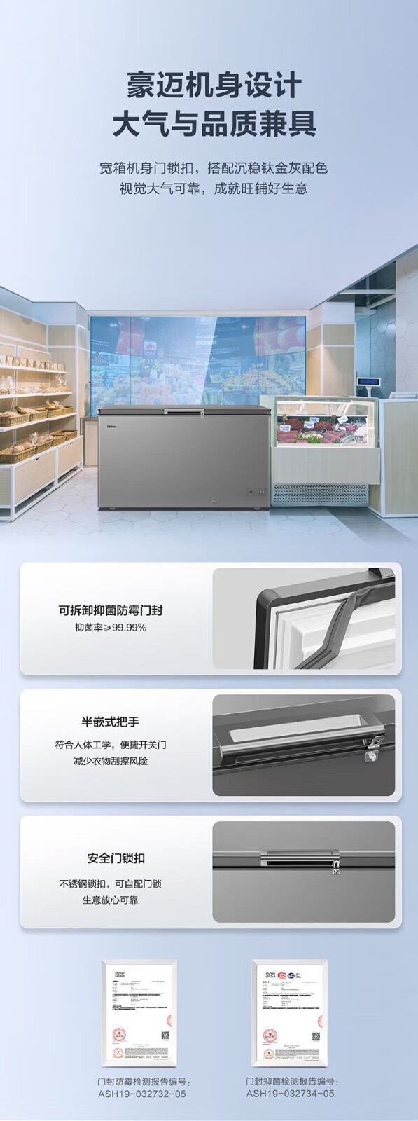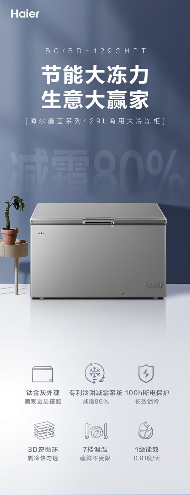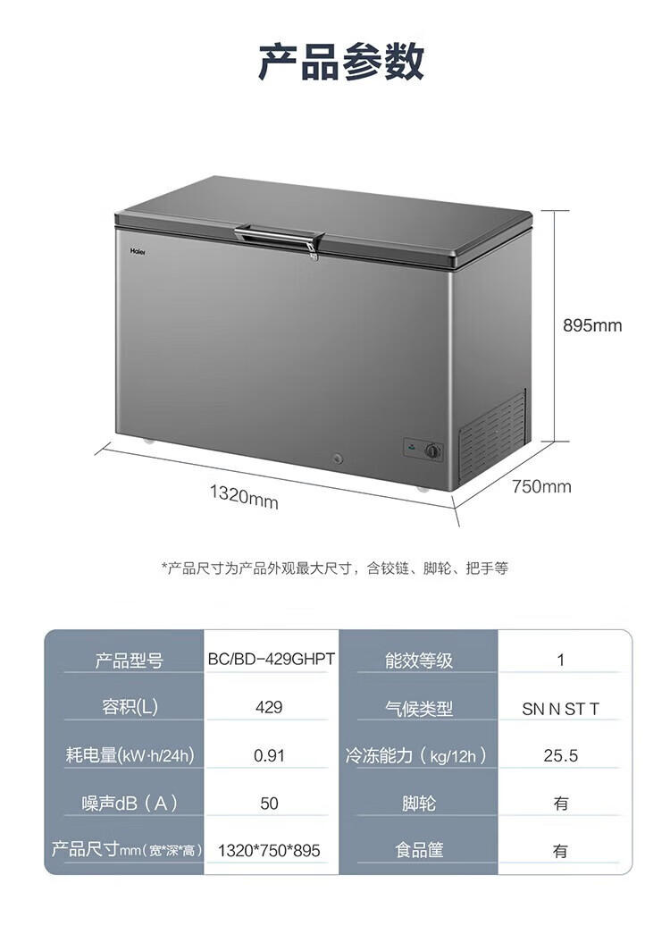 海尔(Haier)冰柜家用商用大容量卧式保鲜深冷速冻 断电保护自由转换顶开门冷藏冷冻冷柜 429升丨-38℃低温丨BC/BD-429GHPT
