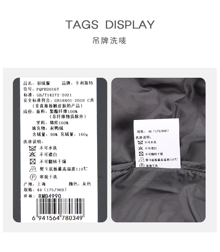 callisto灰色全聚酯纤维羽绒服 FQFED016T