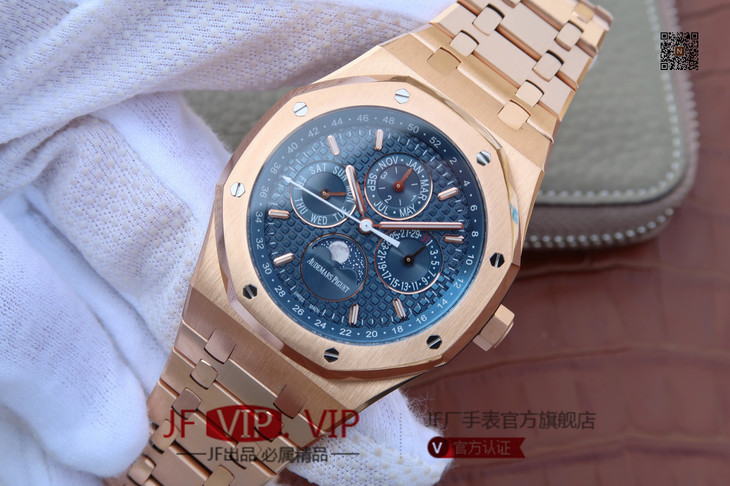 JF爱彼皇家橡树26574。功能:日期显示、星期显示、月份显示、年历显示、万年历、月相进口机克隆原装5134自动机械机芯,41毫米,男士手表腕表