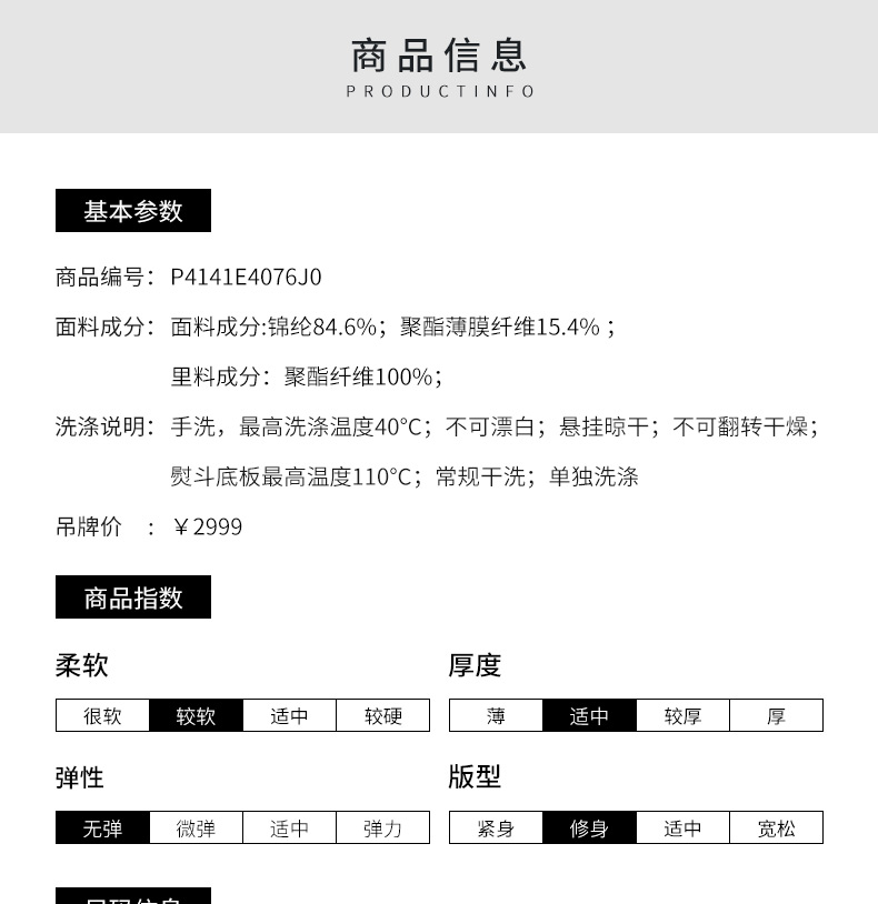 成熟、稳重、高贵典雅、大方得体 融合东方文化的含蓄和法国的浪漫 将创意的艺术性与消费需求相结合 为自信女性塑造高品质场合服装