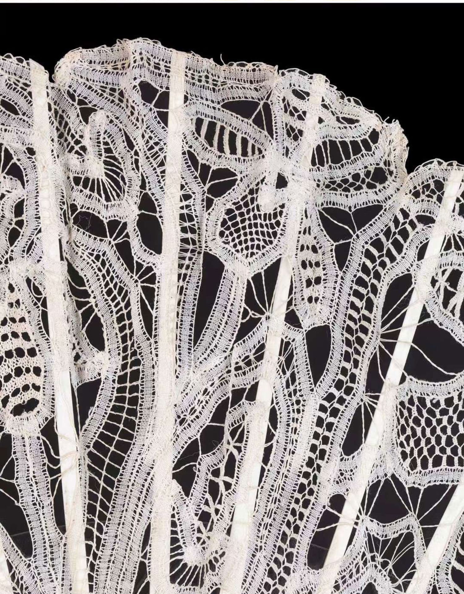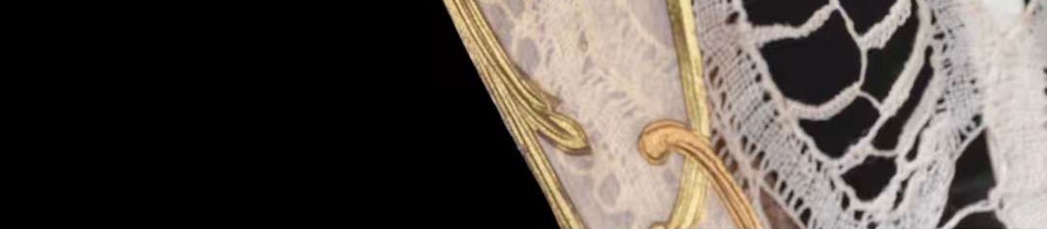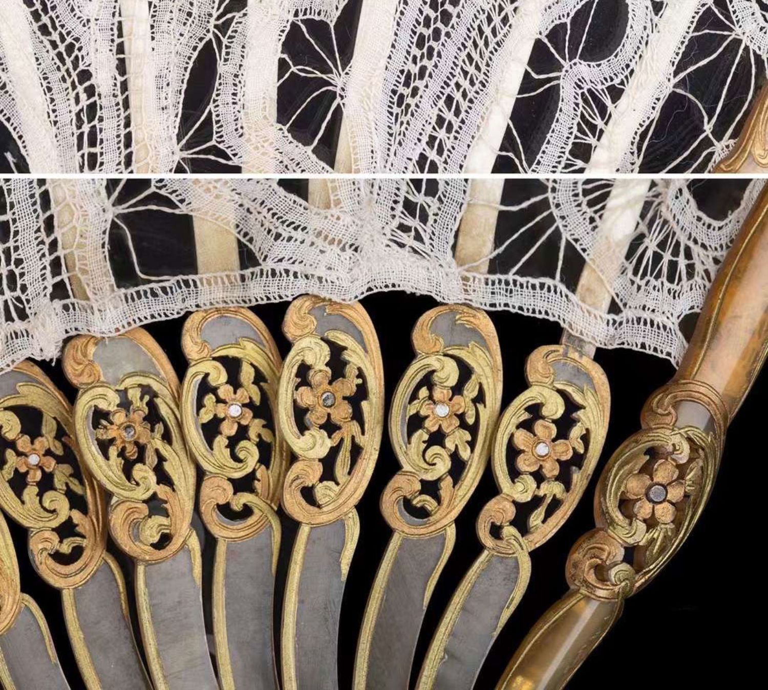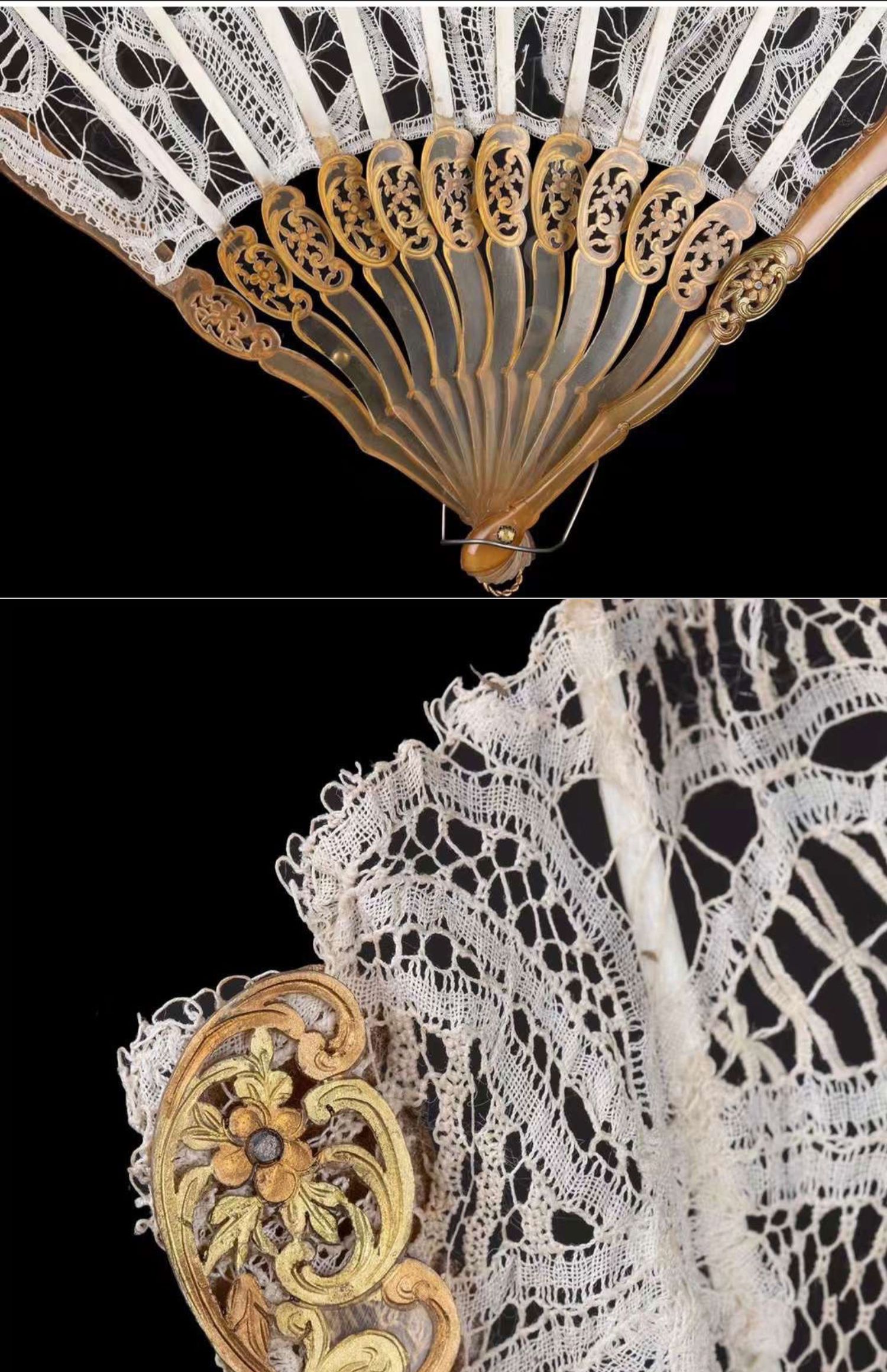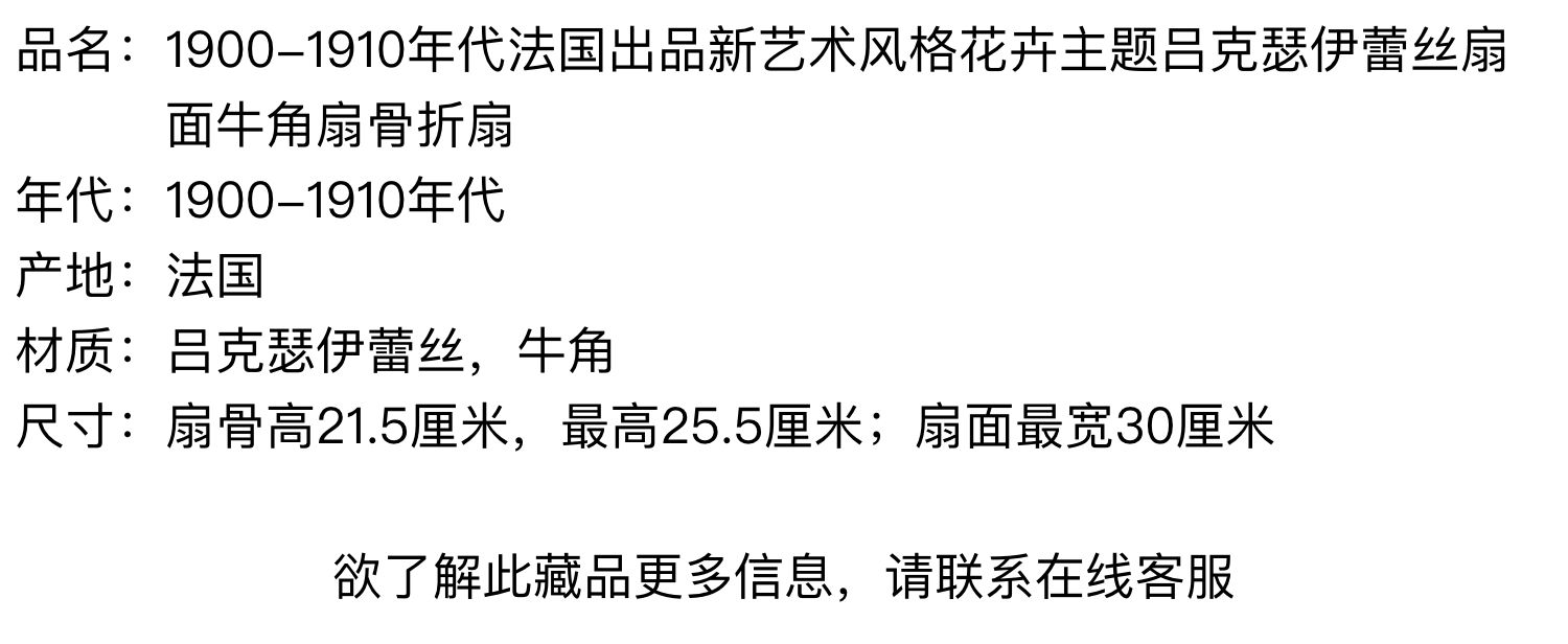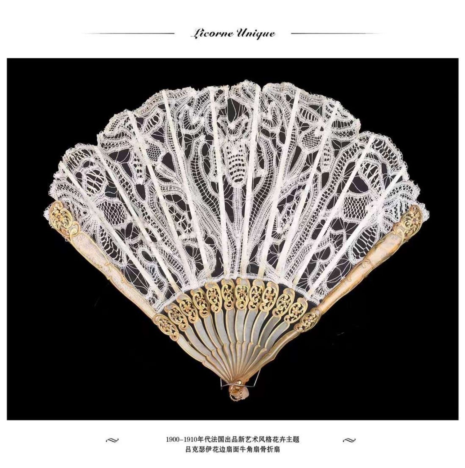 独角鹿西洋古董法国新艺术花卉主题吕克瑟伊蕾丝扇面牛角扇骨折扇