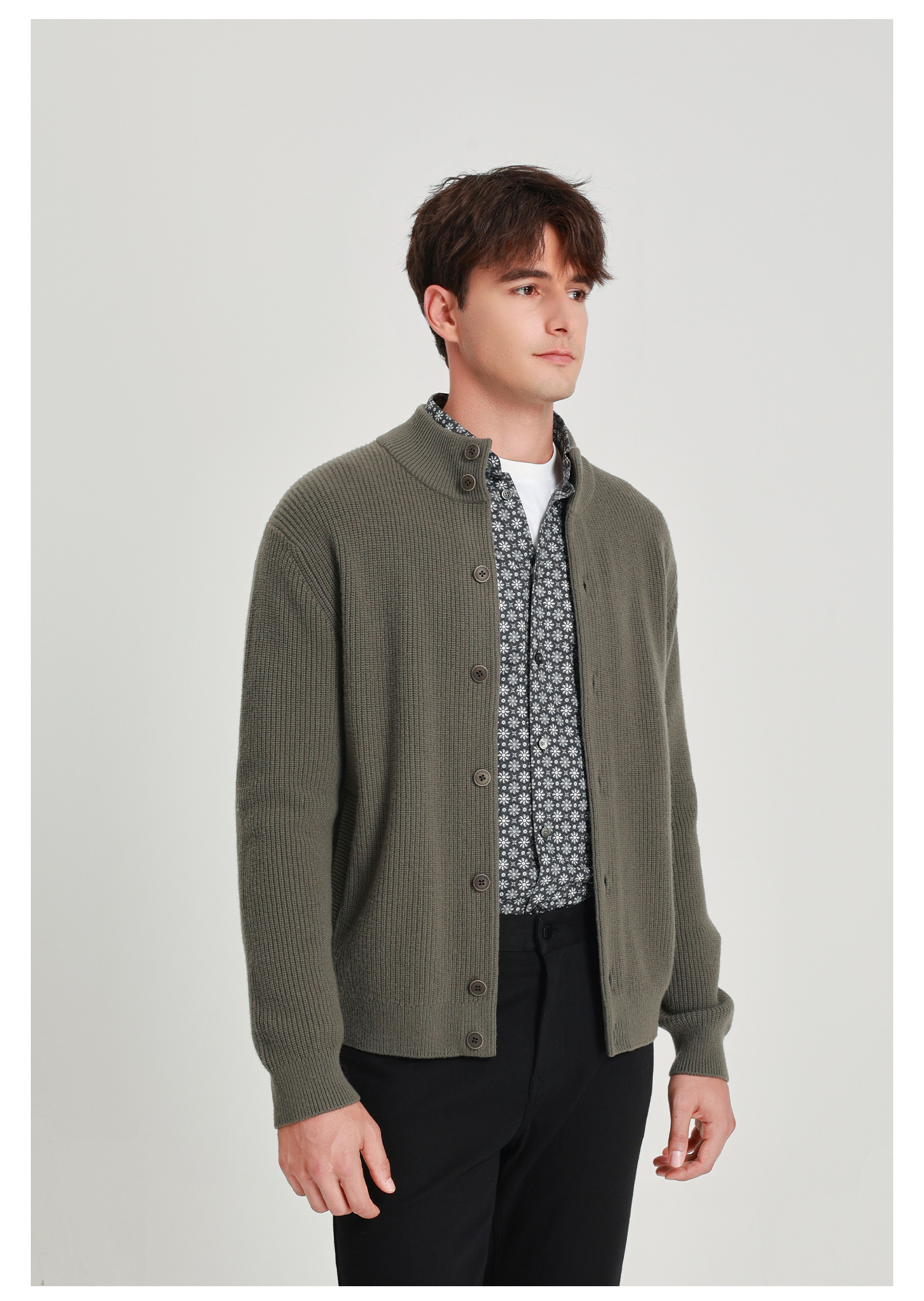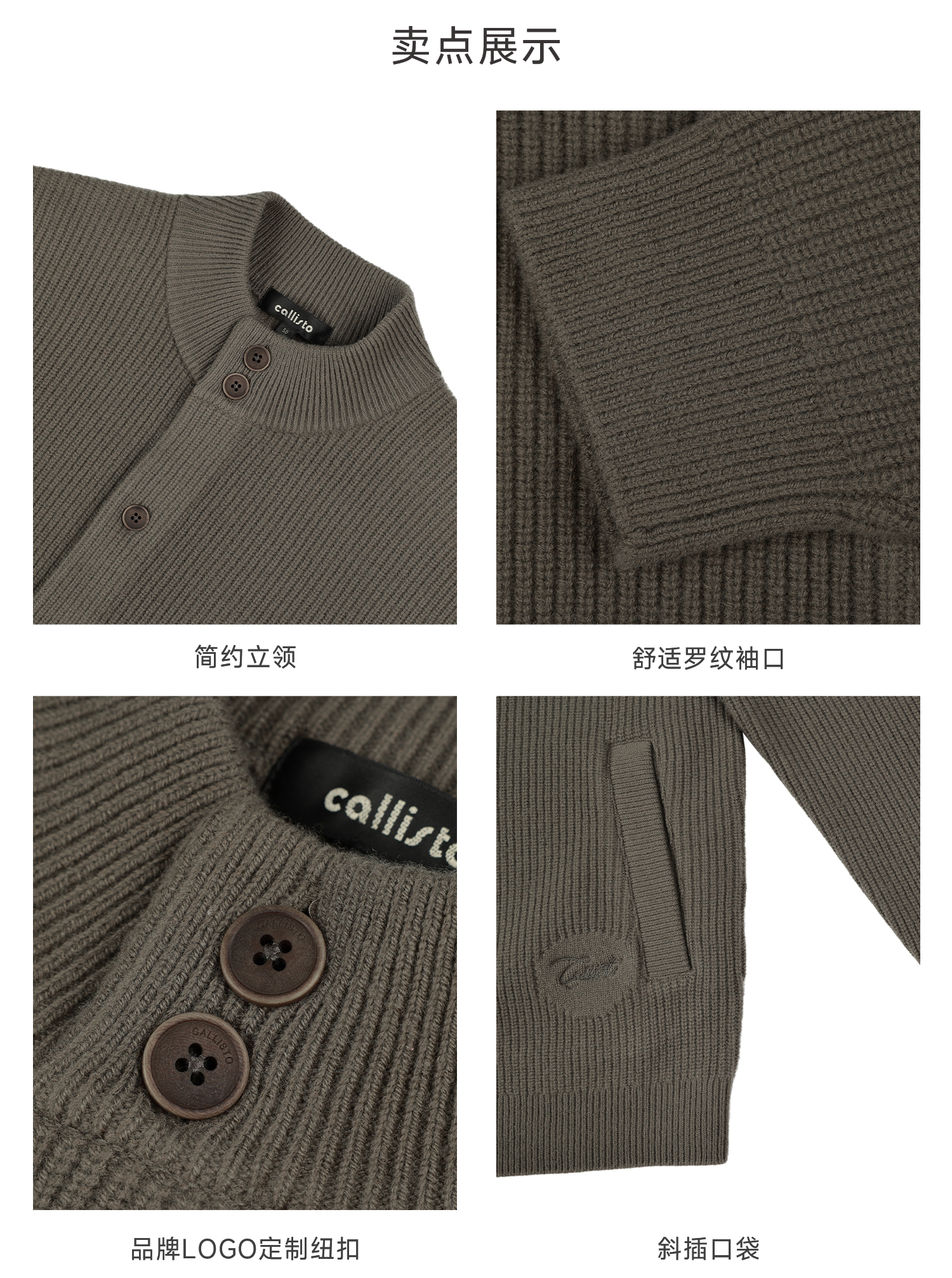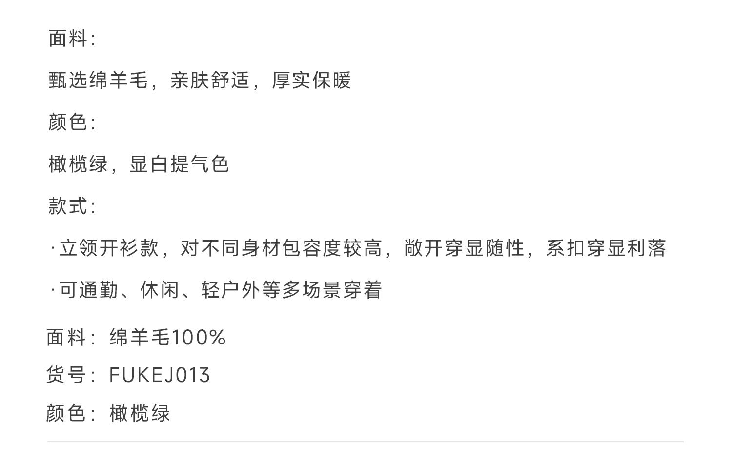 callisto橄榄绿绵羊毛立领开衫外套