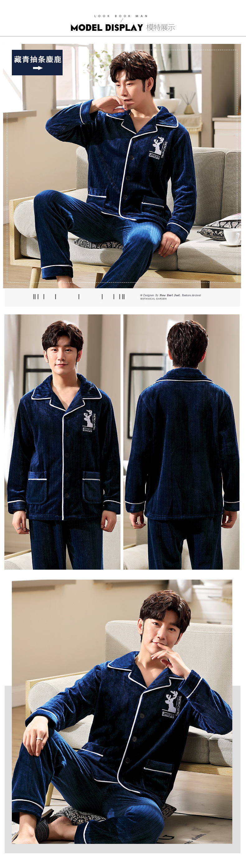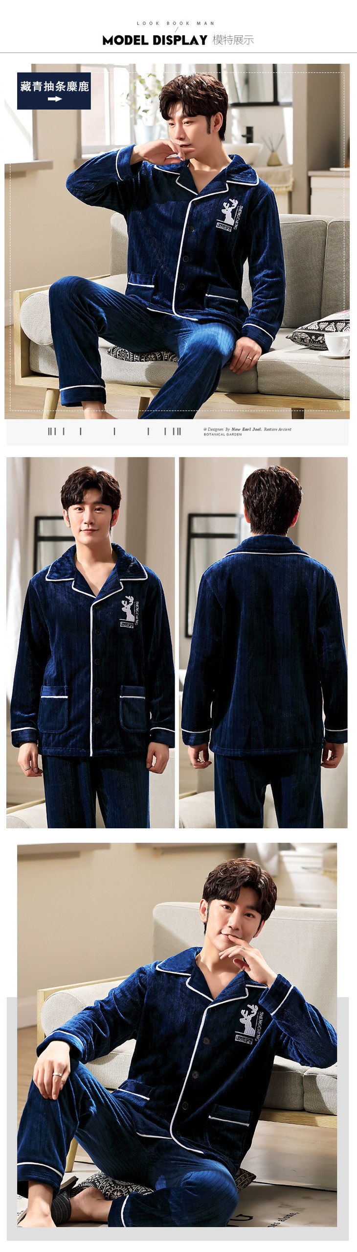 冬季新款男士睡衣珊瑚绒睡衣男士加厚法兰绒家居服可外穿