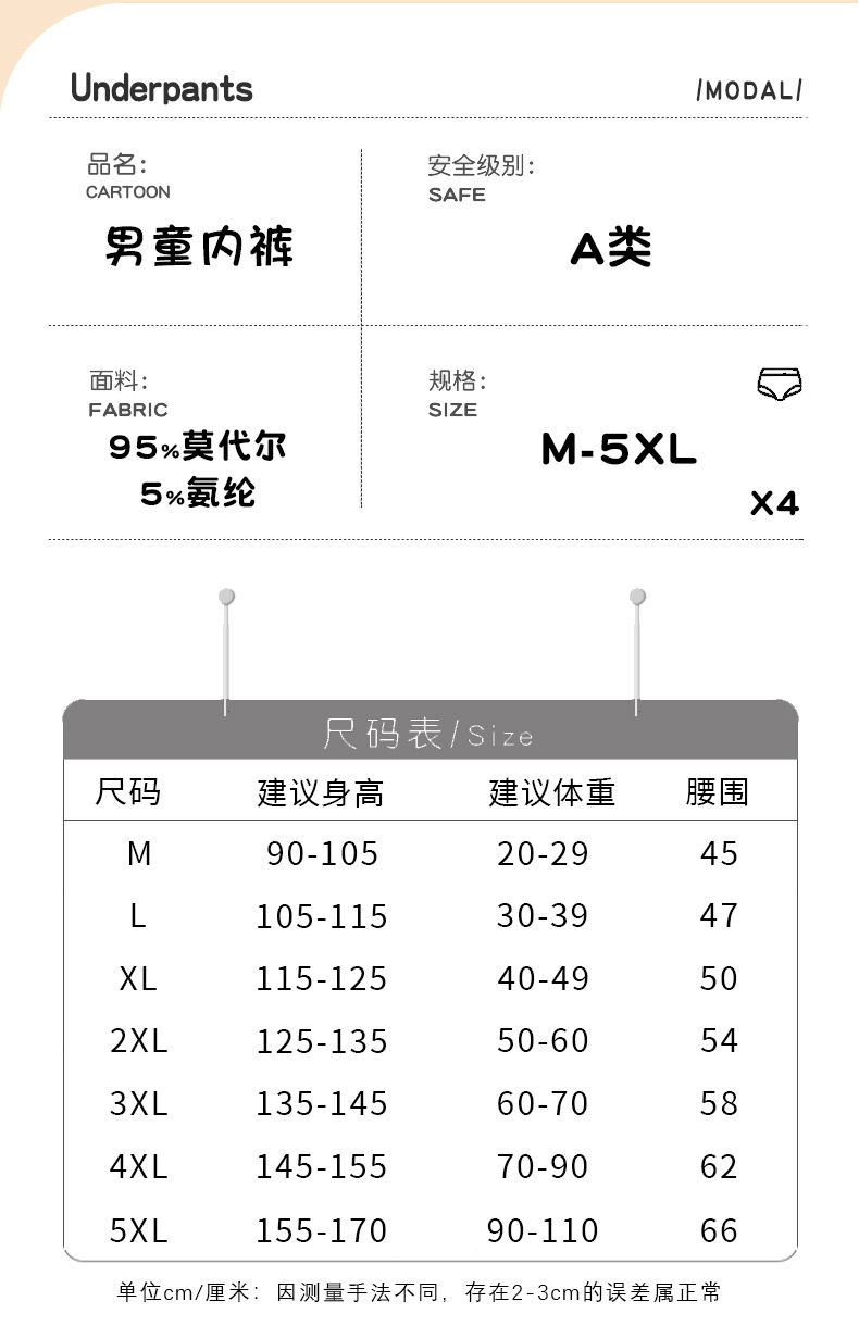 【GZ】无忧购4条装男童莫代尔内裤冰丝轻薄四角裤(截单后3-5天发货)