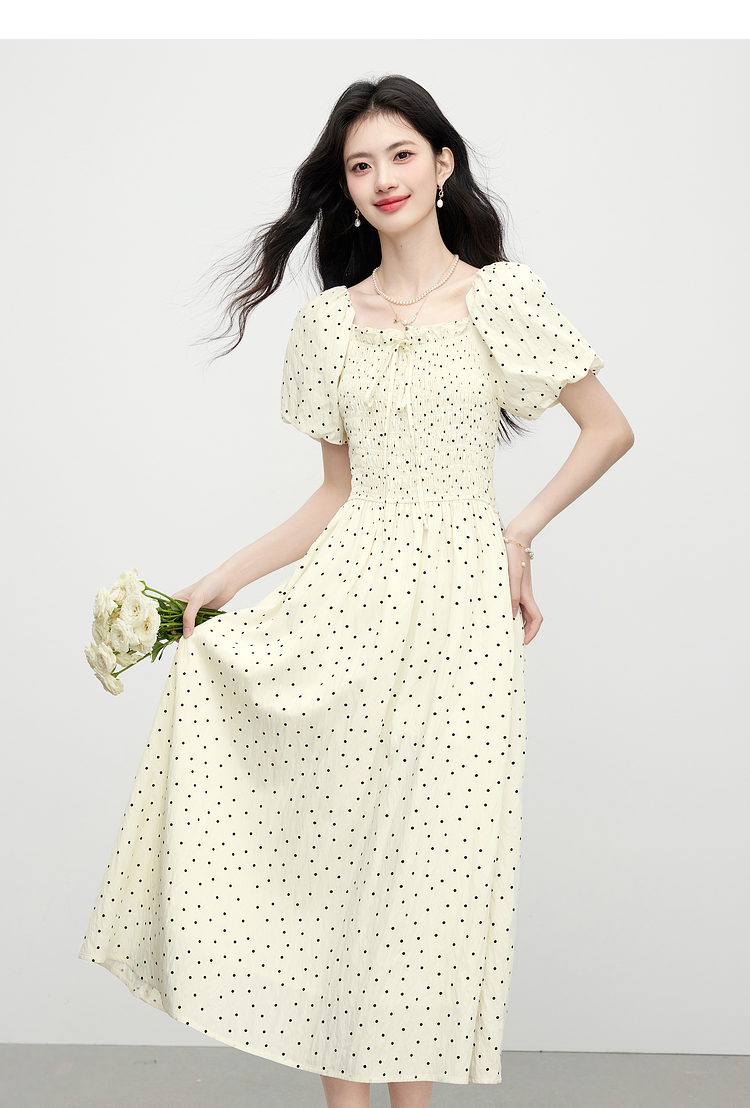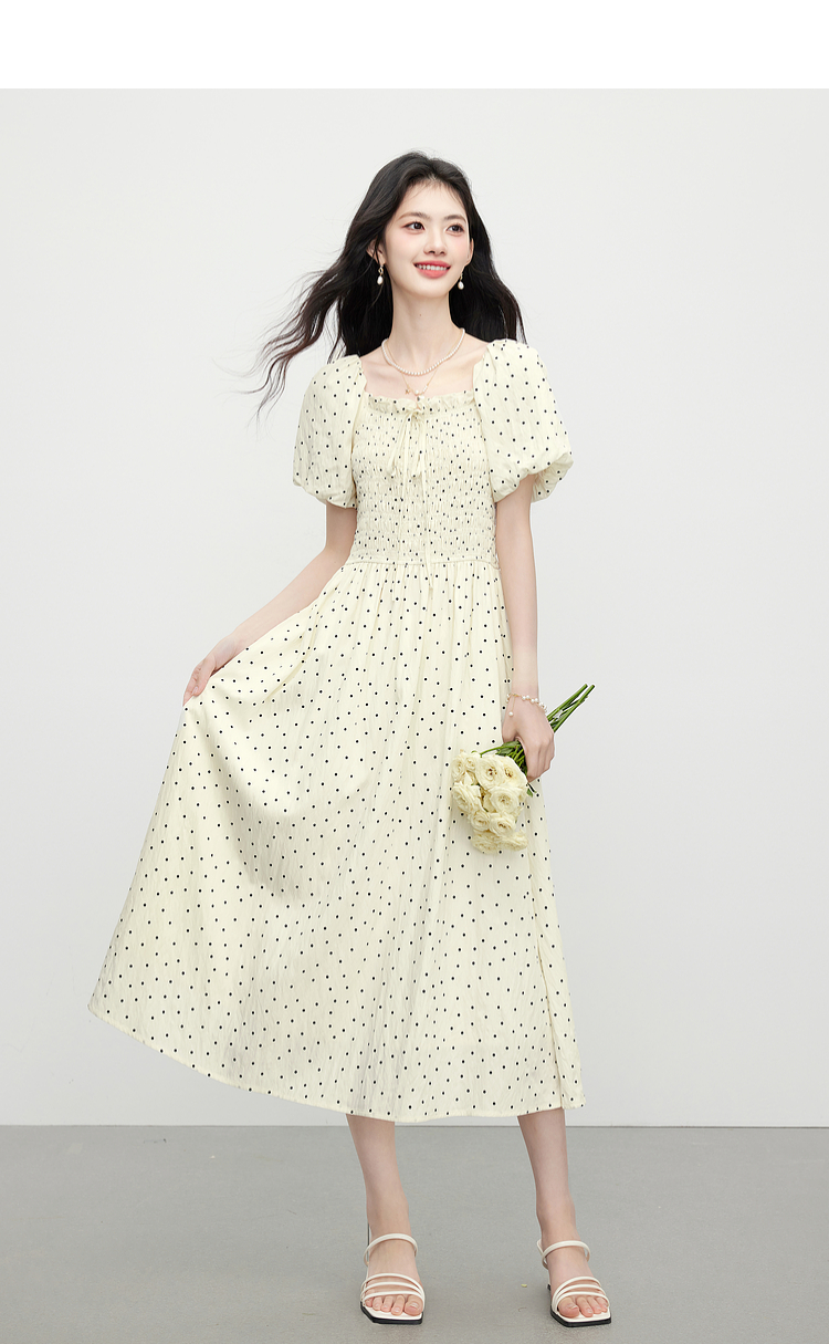 【07/09新品】熙世界法式浪漫度假风收腰花苞短袖方领波点连衣裙女2025夏季新款