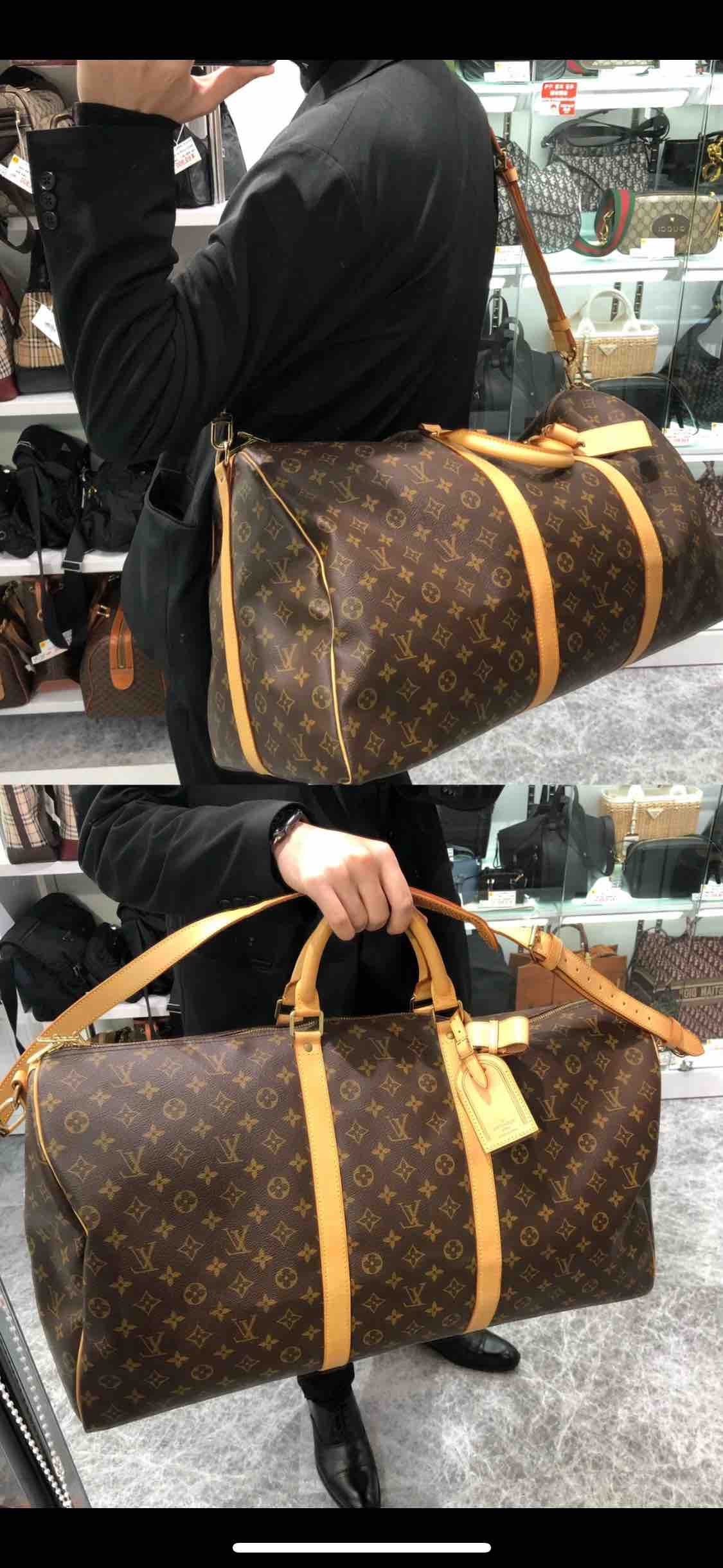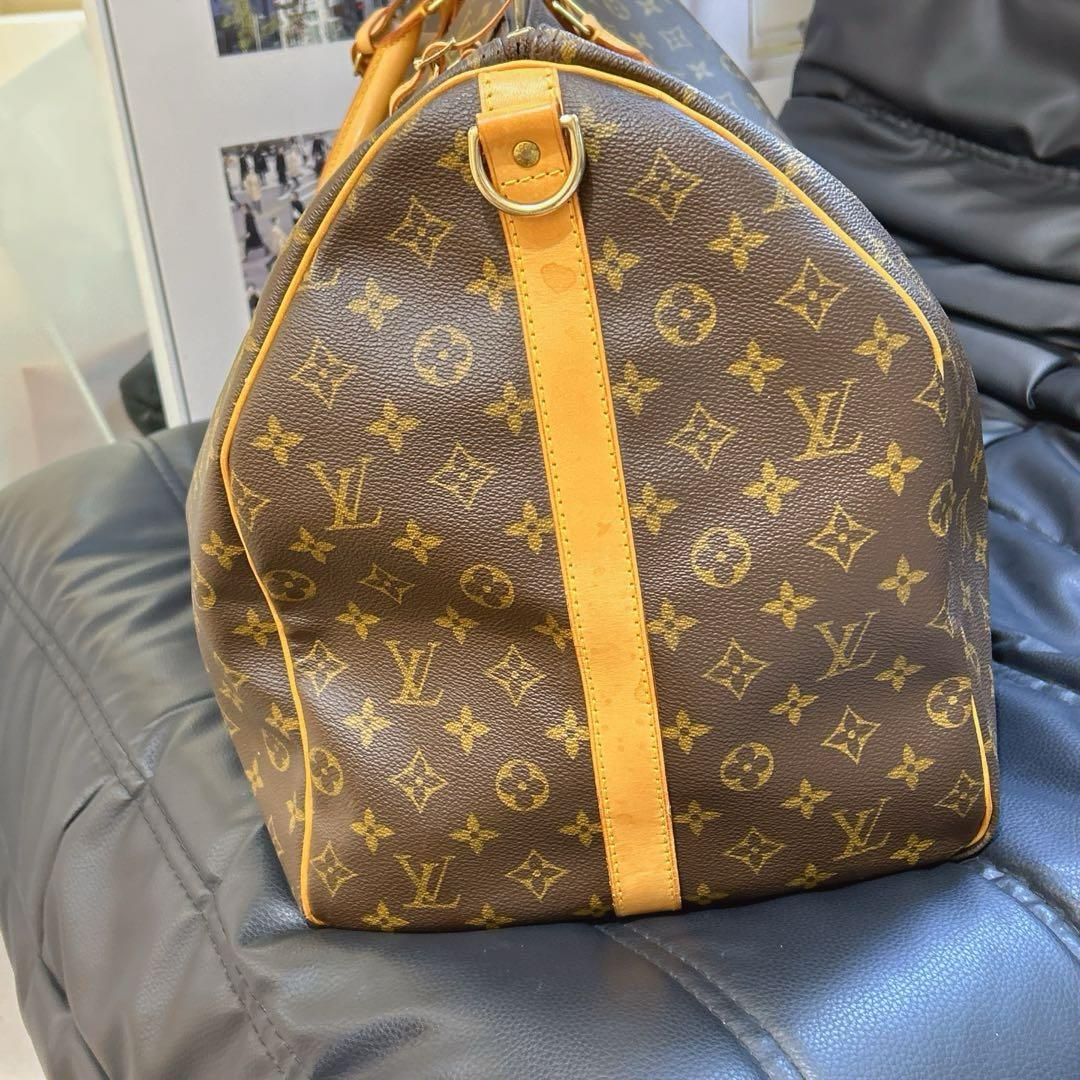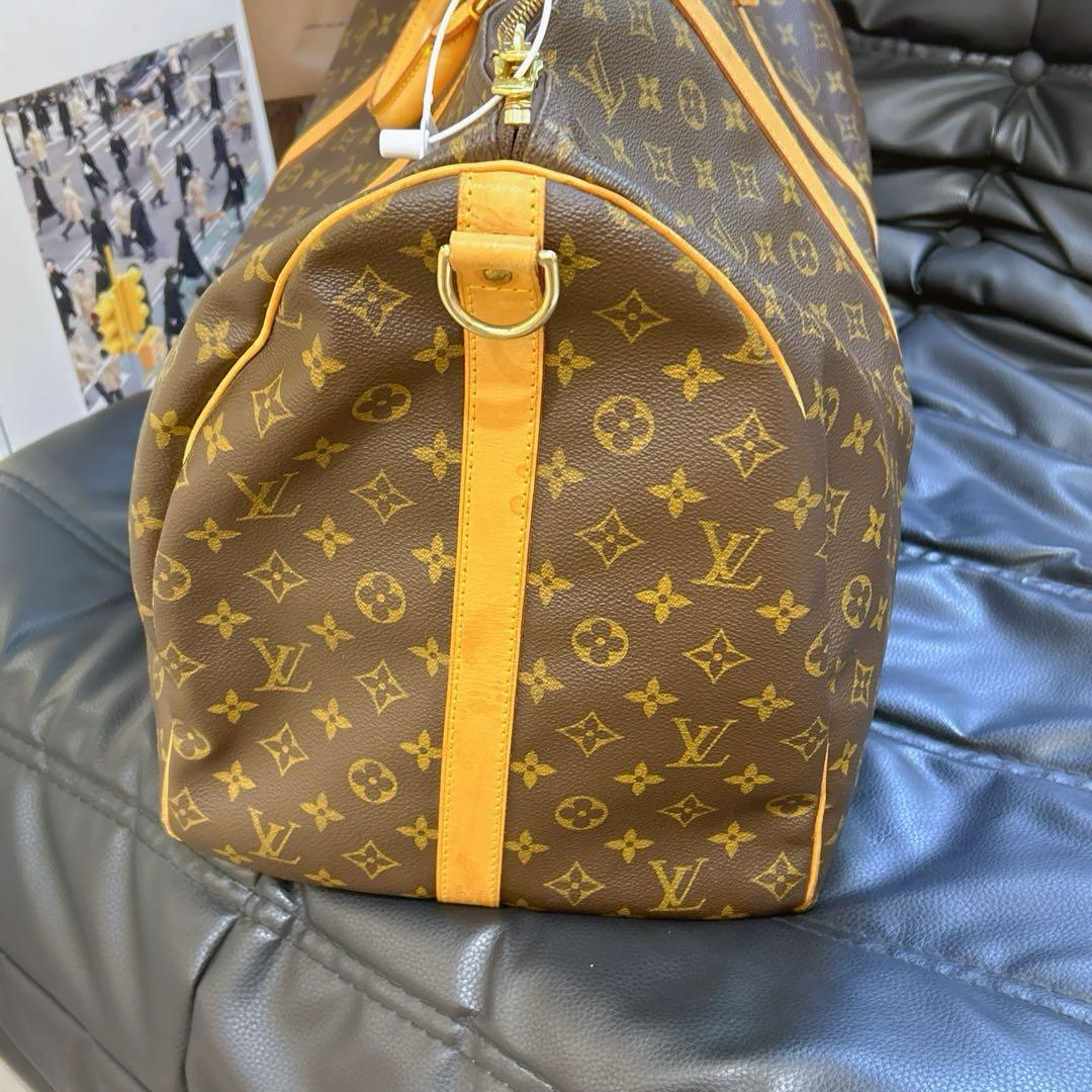 【商品詳情】正品二手 Lv 中古 keepall 60 老花 肩带款 旅行包🥛 93新 60*31 配件:旅行牌 锁头 肩带。植鞣革浅蜜色 包低边有正常使用磨擦感 植鞣革有正常使用水渍脏。实用经典
