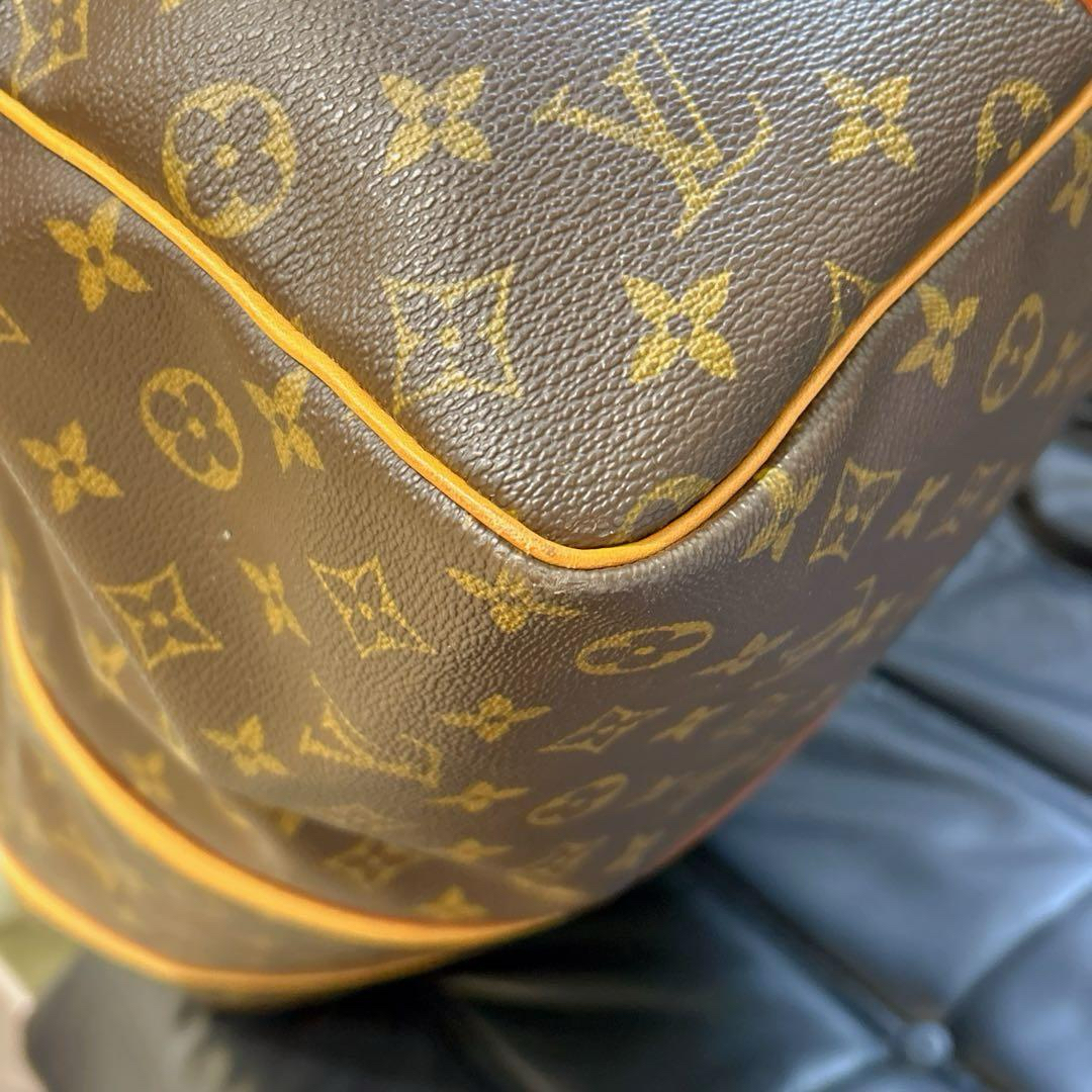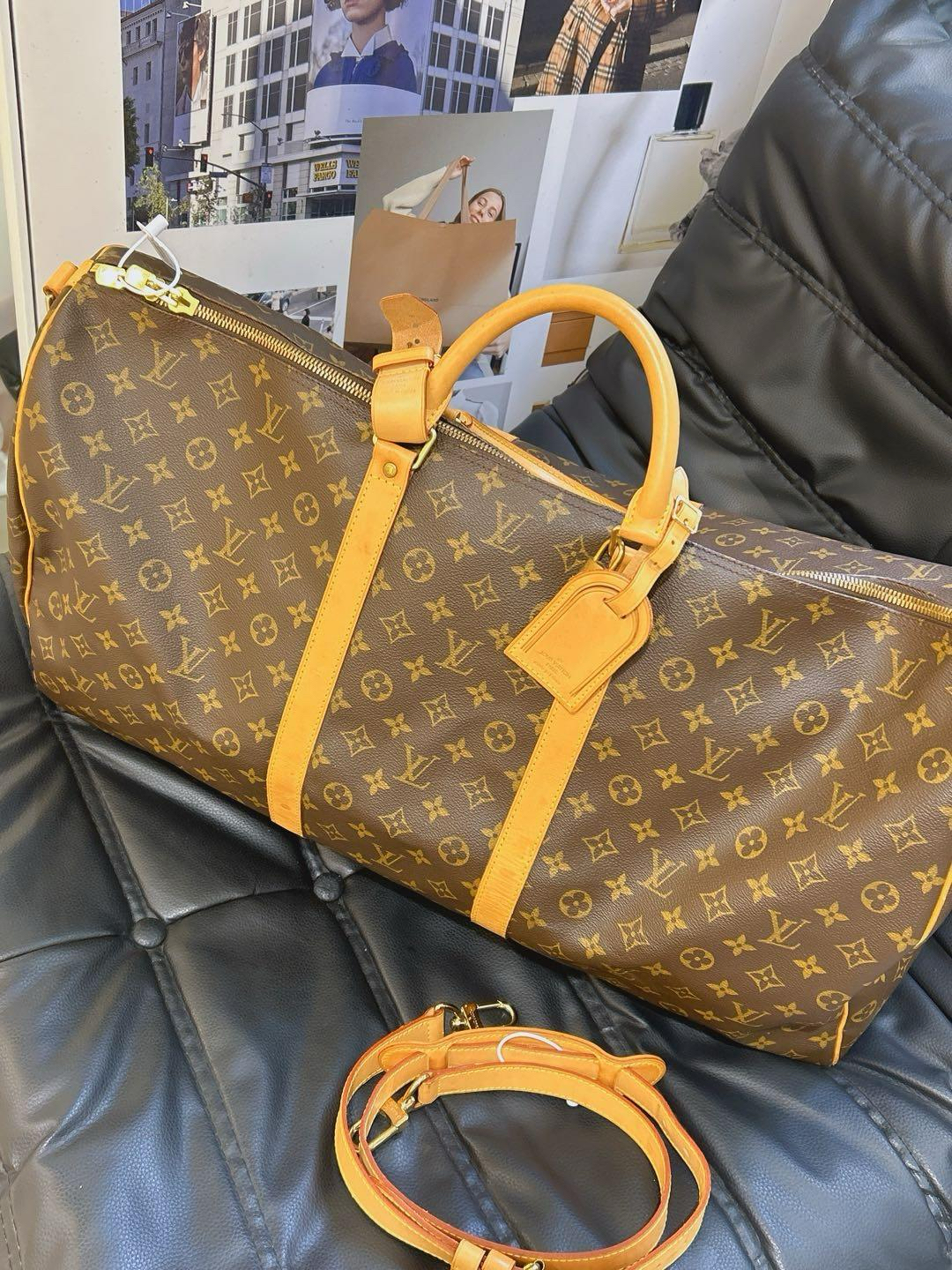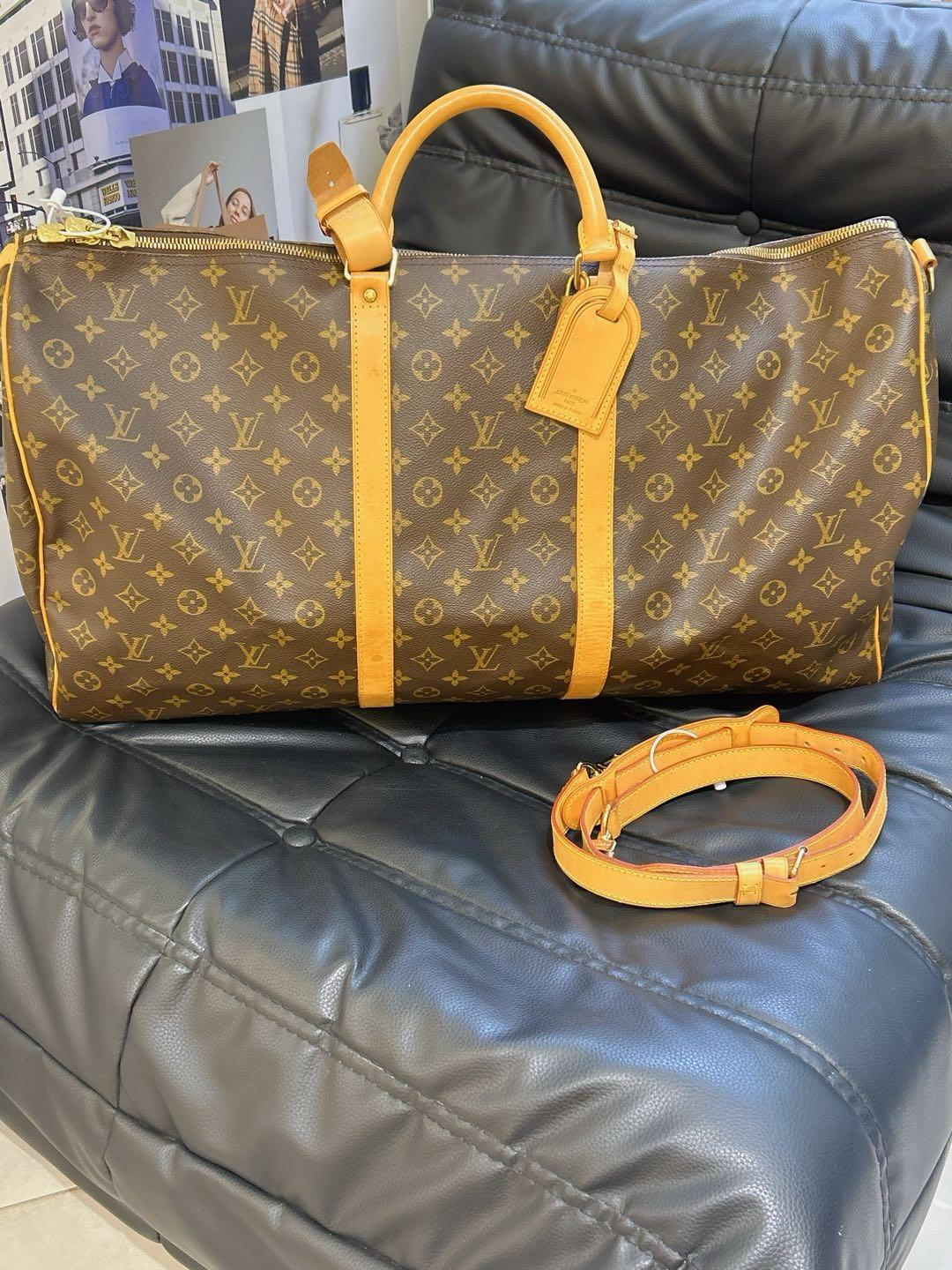 【商品詳情】正品二手 Lv 中古 keepall 60 老花 肩带款 旅行包🥛 93新 60*31 配件:旅行牌 锁头 肩带。植鞣革浅蜜色 包低边有正常使用磨擦感 植鞣革有正常使用水渍脏。实用经典
