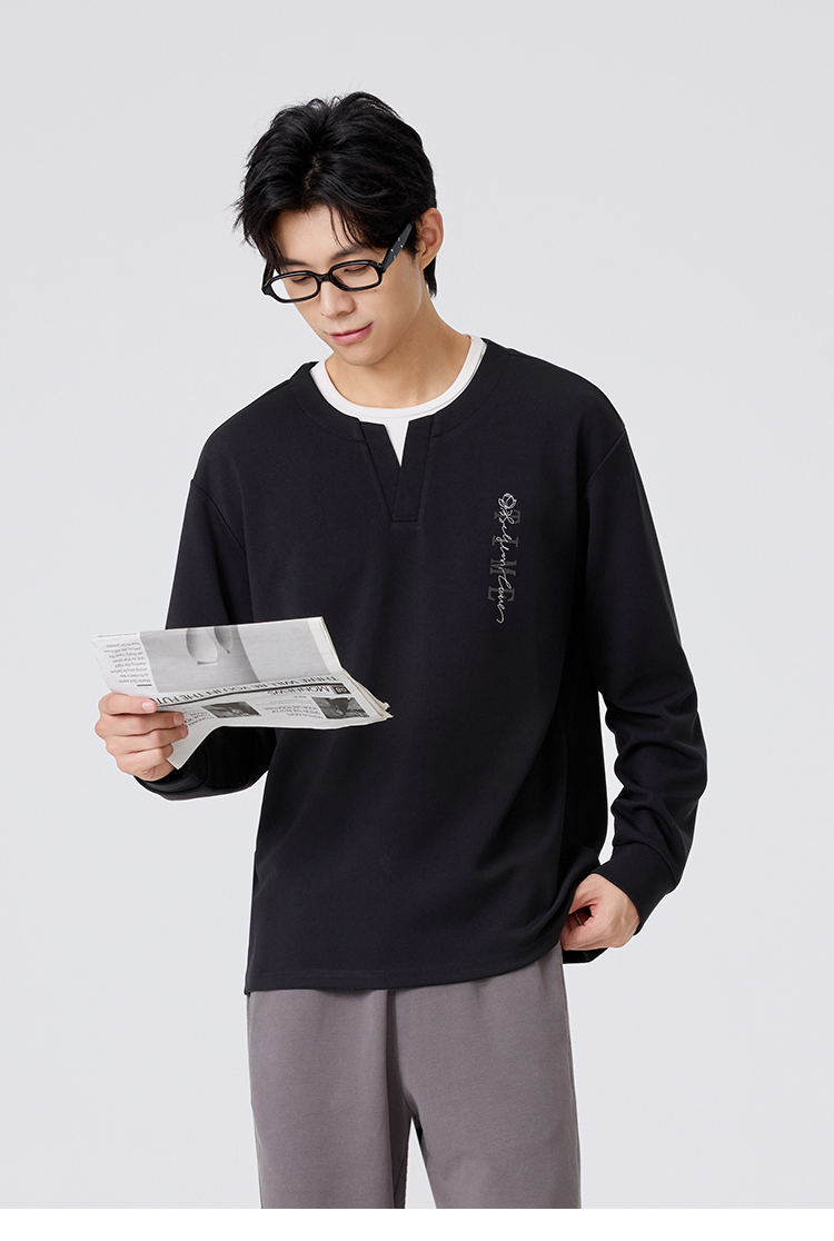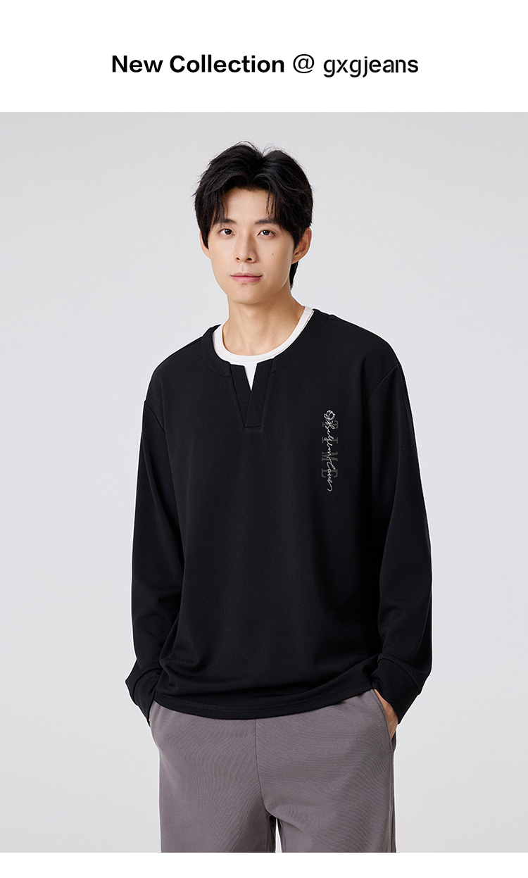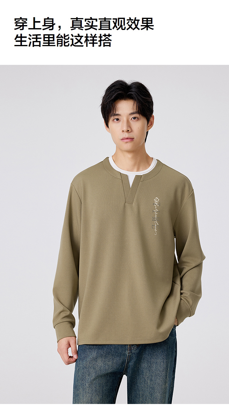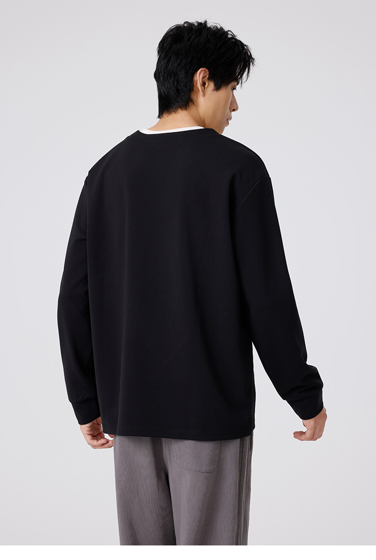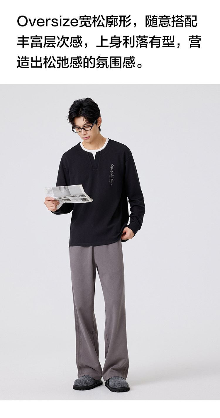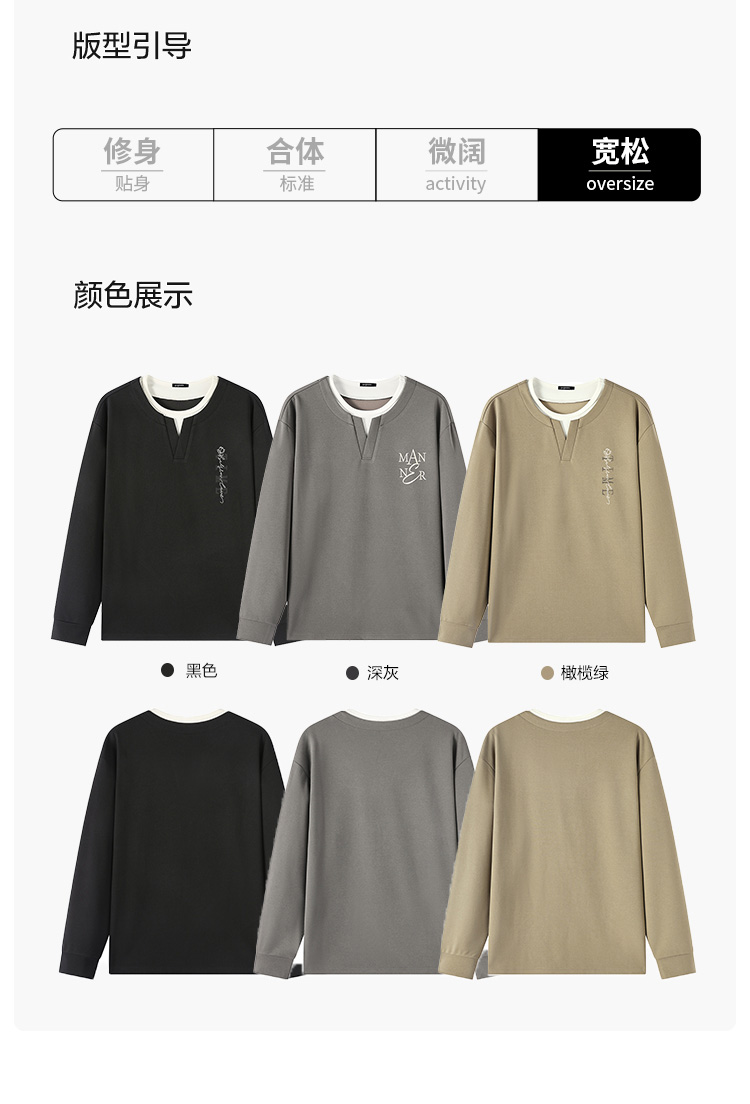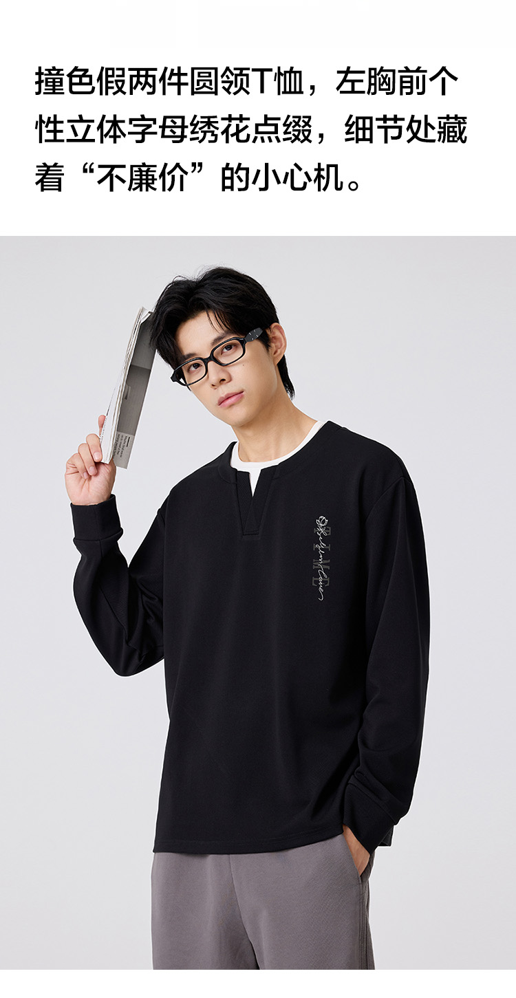 【假两件设计】男士长袖T恤简约舒适宽松内搭青少年打底衫上衣男