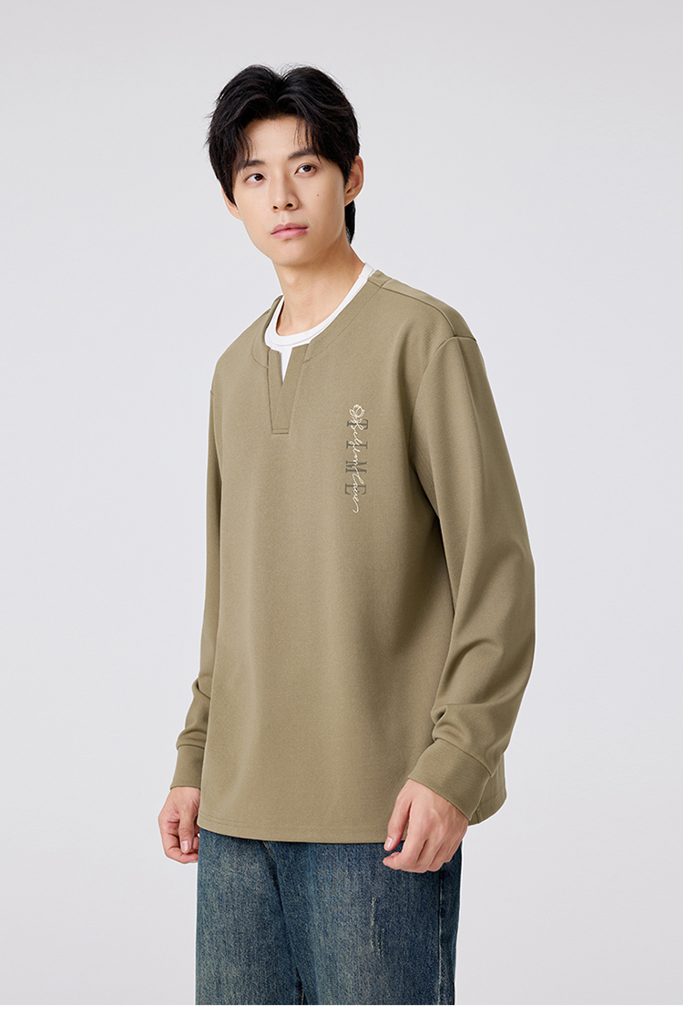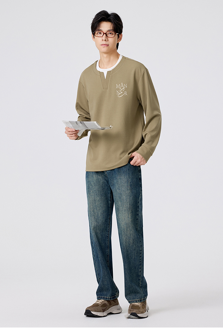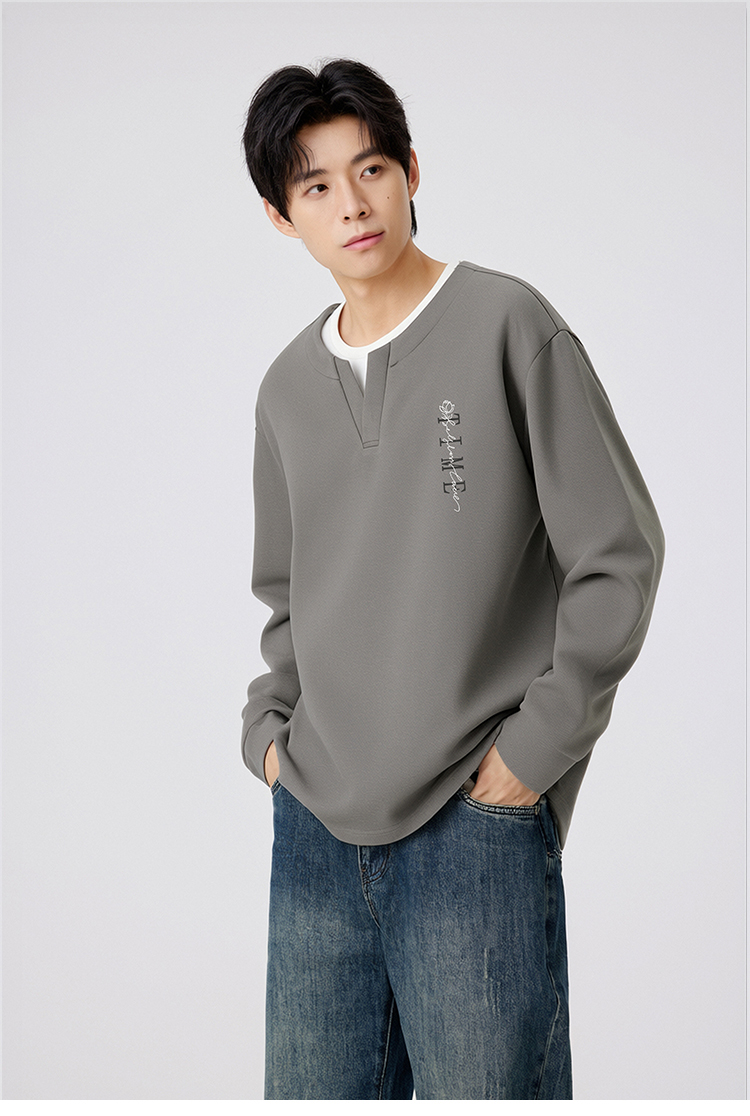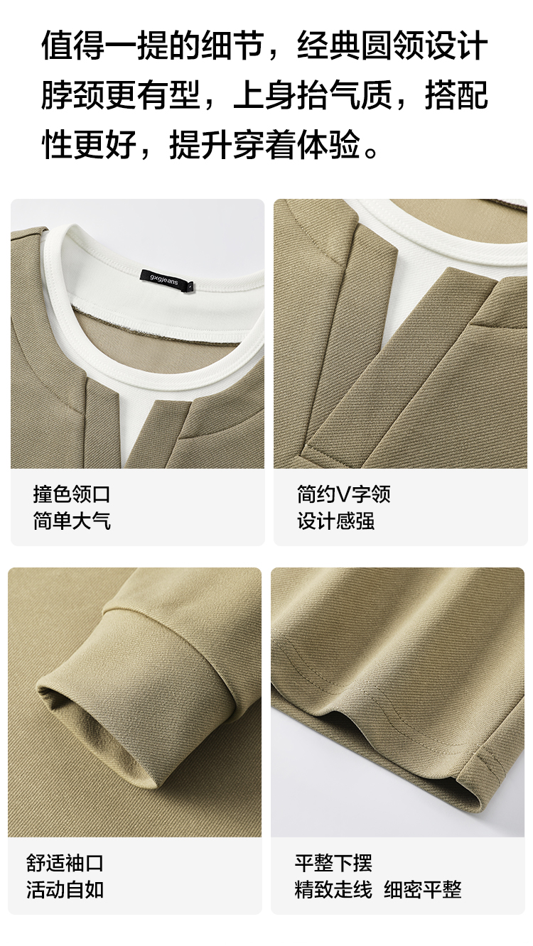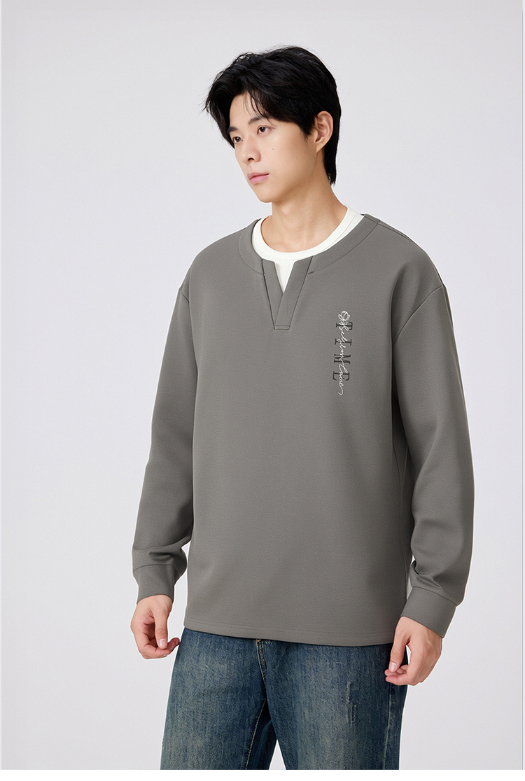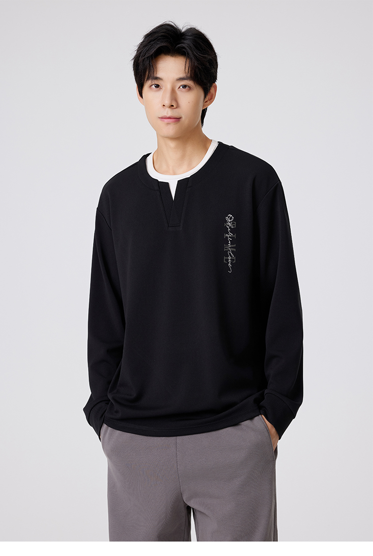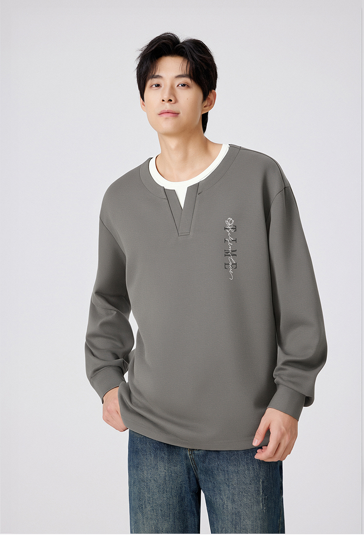 【假两件设计】男士长袖T恤简约舒适宽松内搭青少年打底衫上衣男