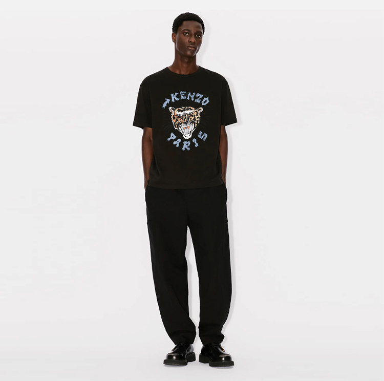 KENZO 高田贤三 男士徽标贴花棉质工装休闲运动裤 黑色 FE55 PA501 9GN 99