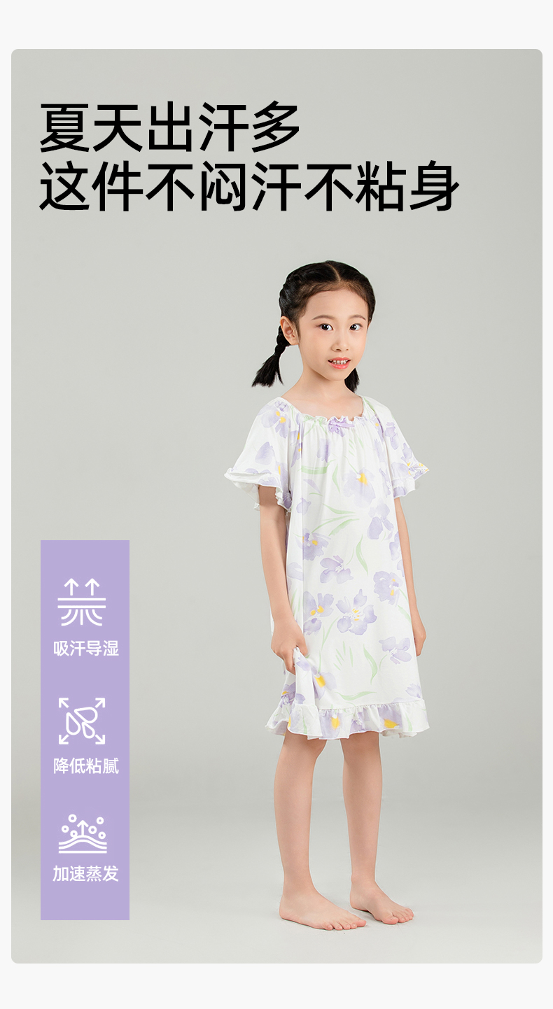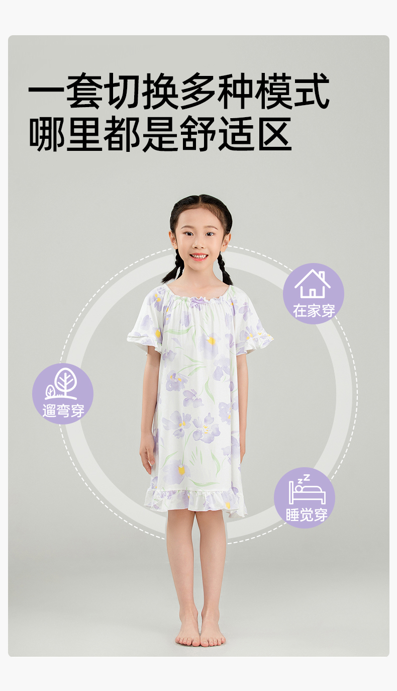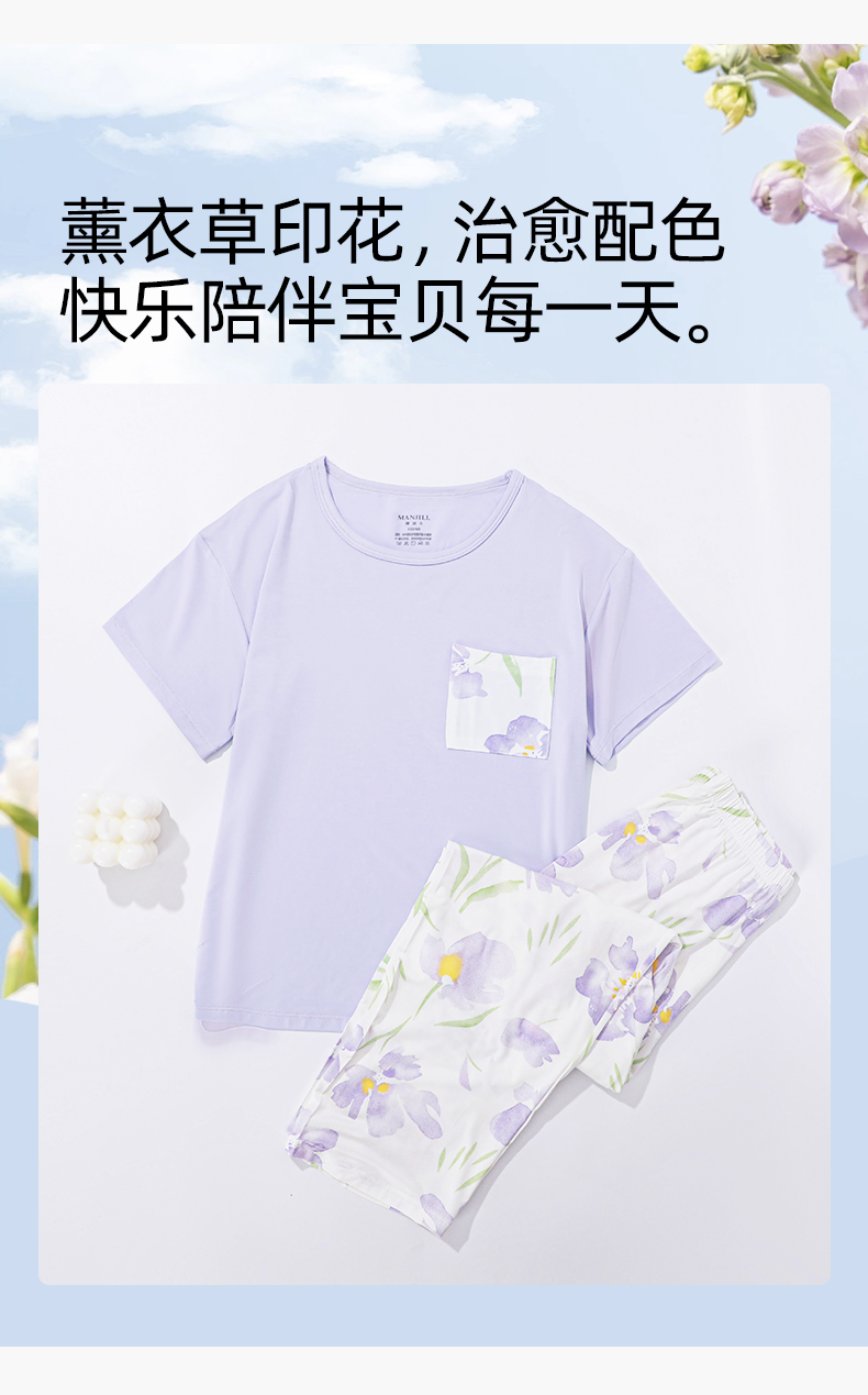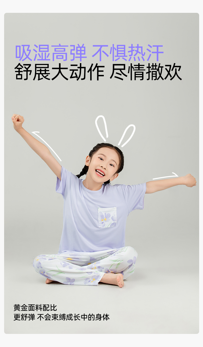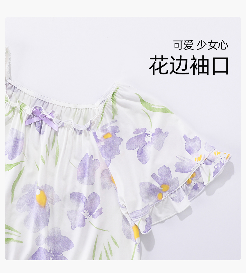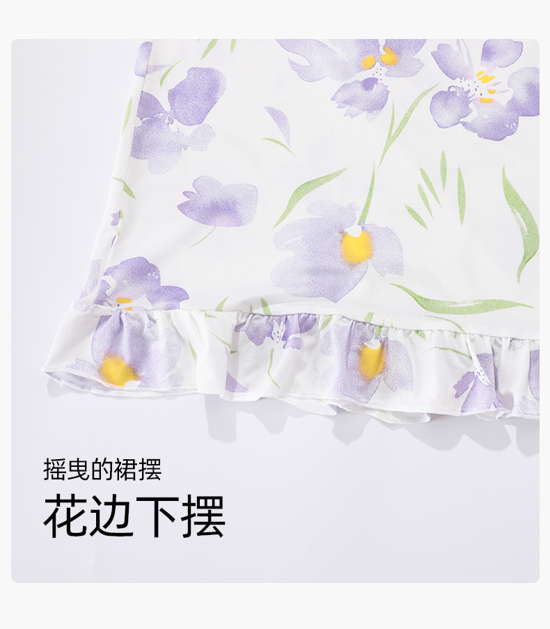 【连衣裙/套装】熳洁儿 女童水墨花卉荷叶边莫代尔夏季家居服25203607/25203608