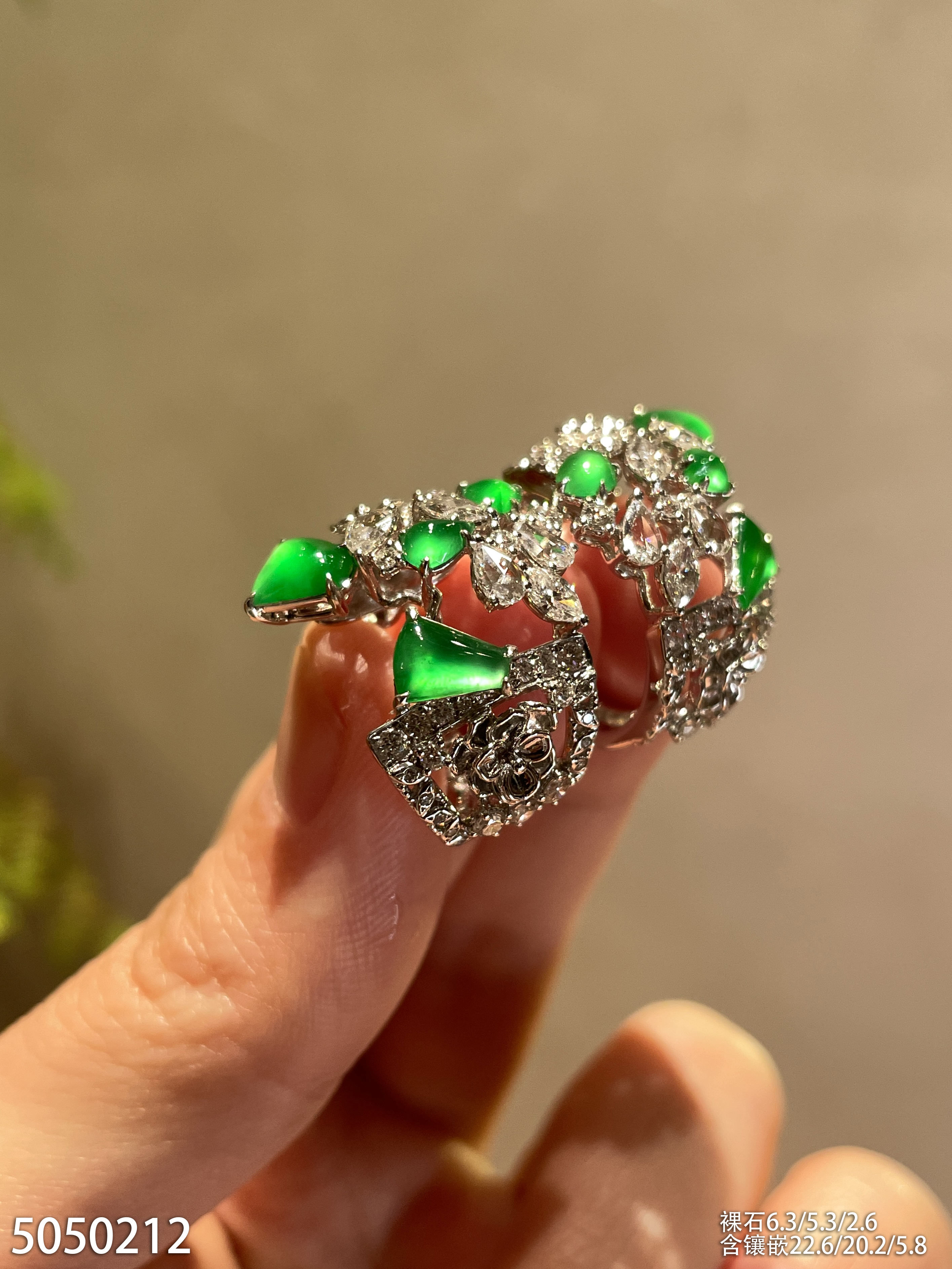 132-2123701,老坑高冰艳绿蛋面戒指,6599