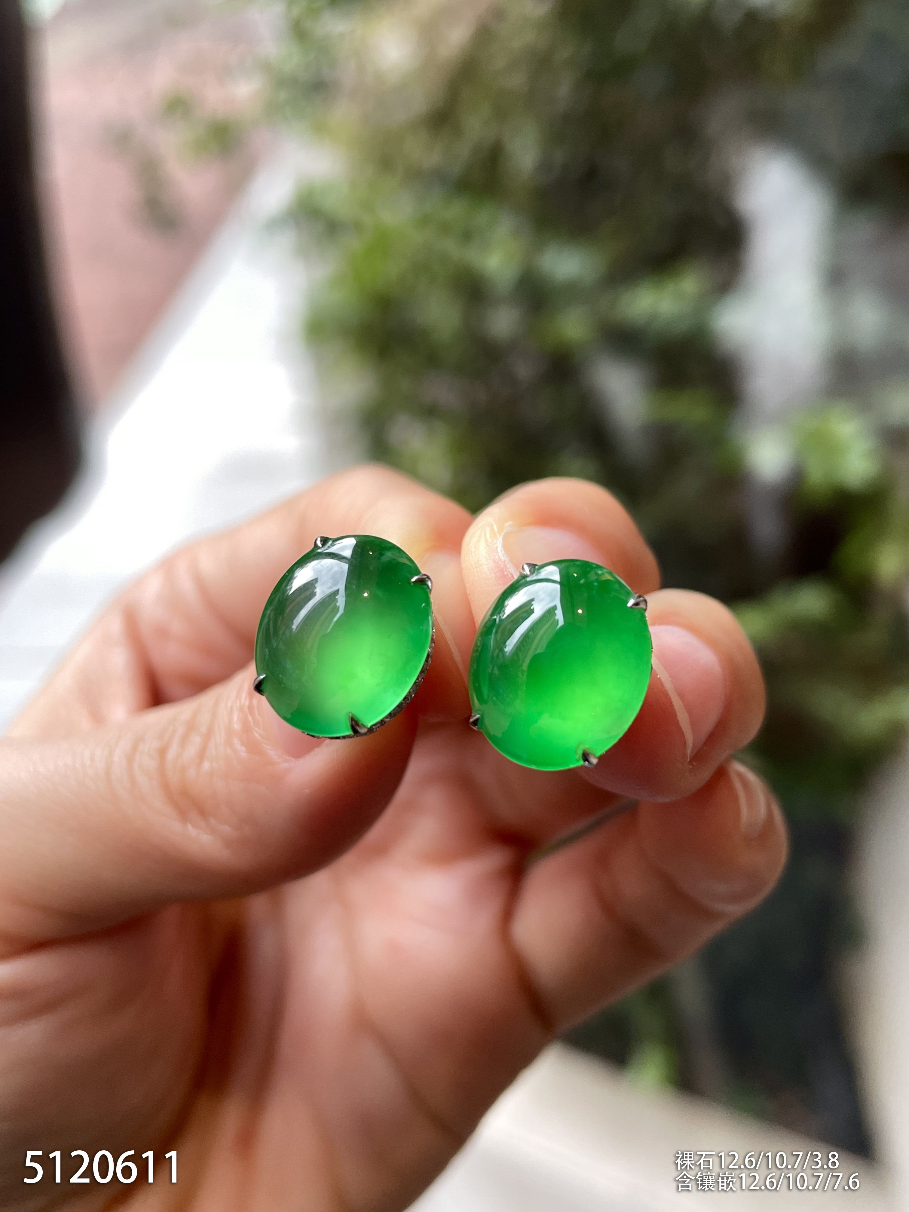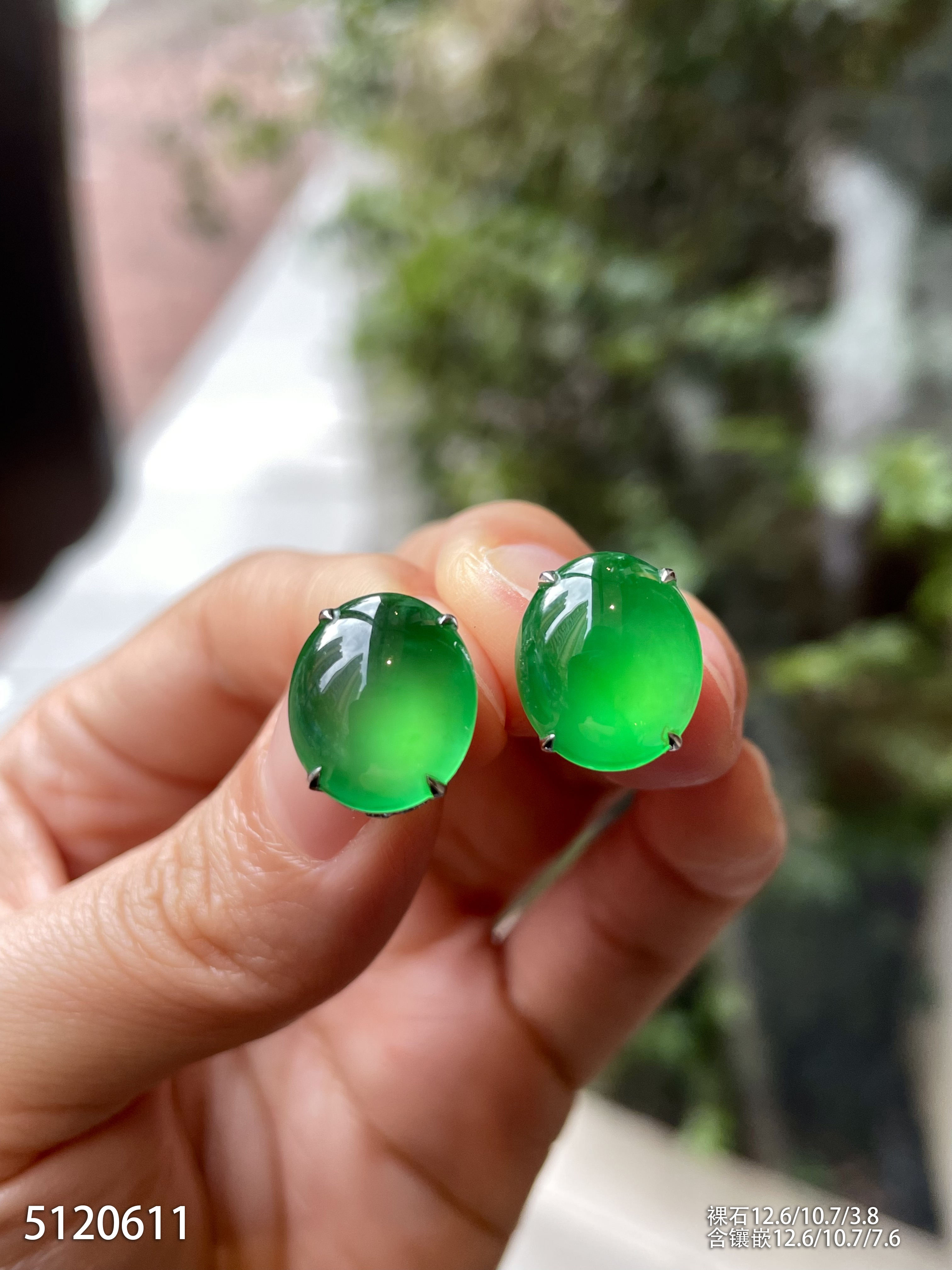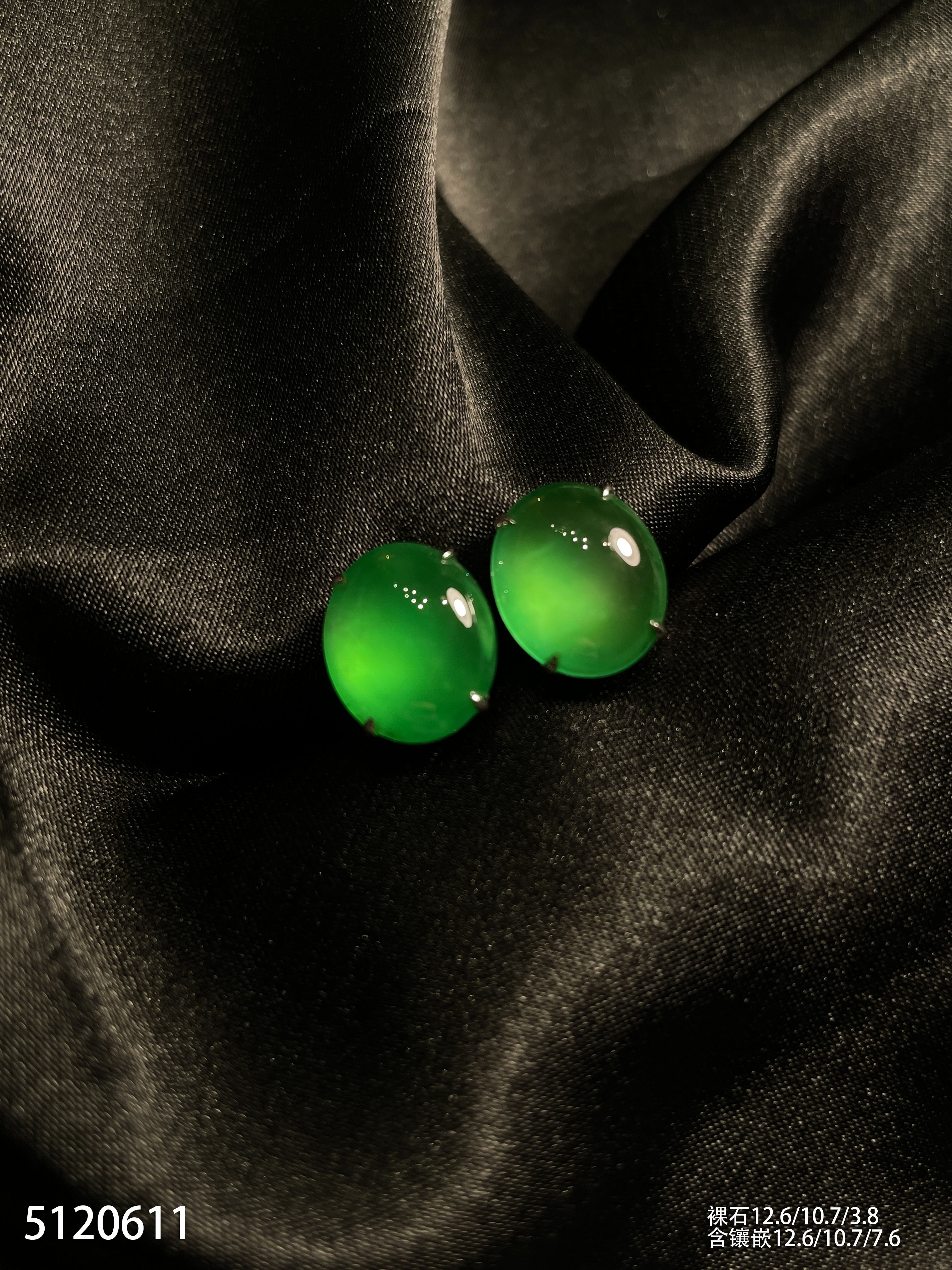 玻璃种黄阳色系绿蛋耳钉【5120611】具体价格微信咨询