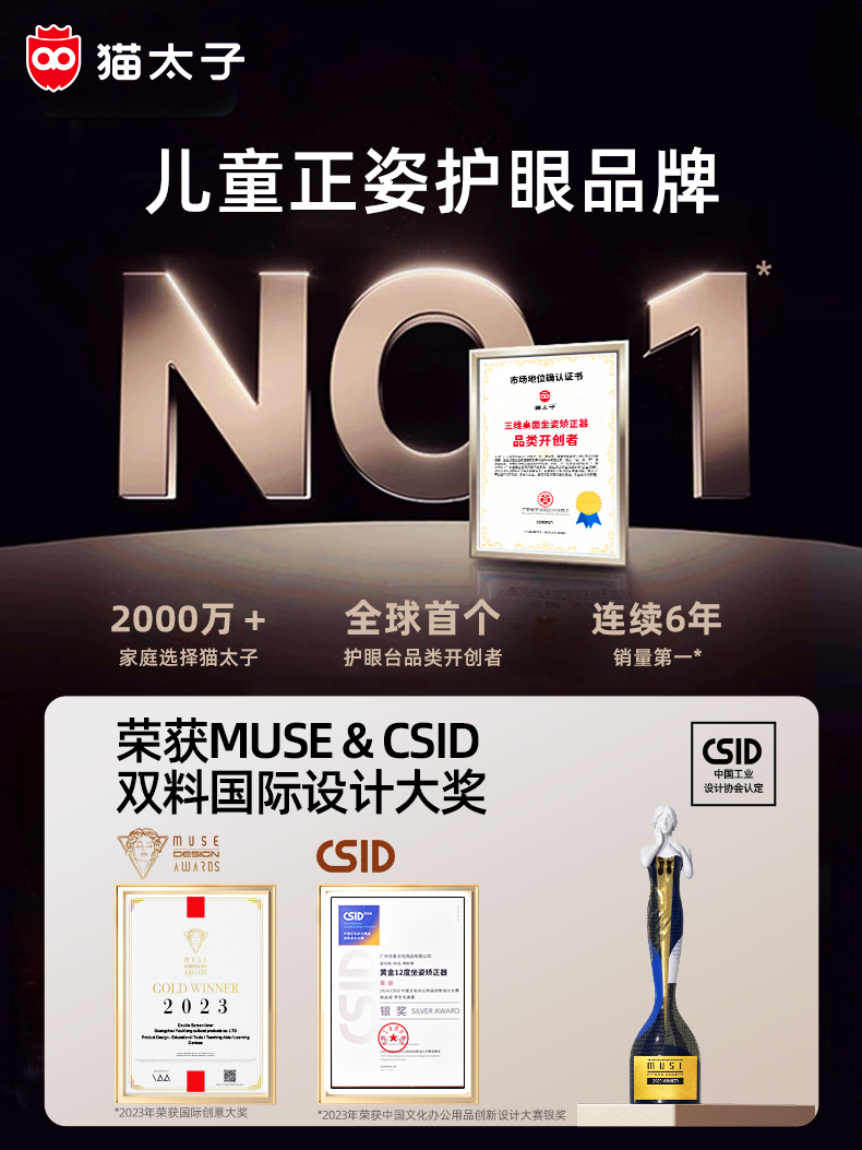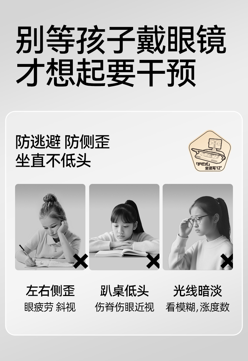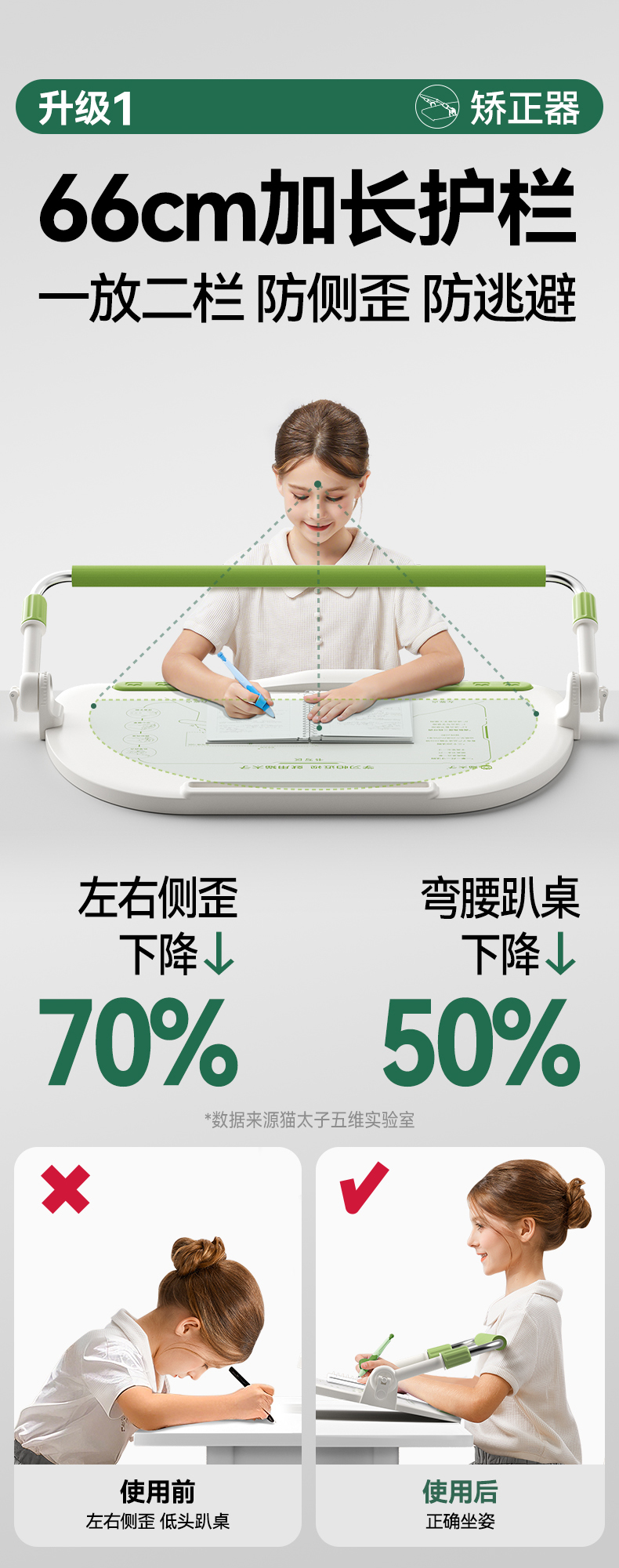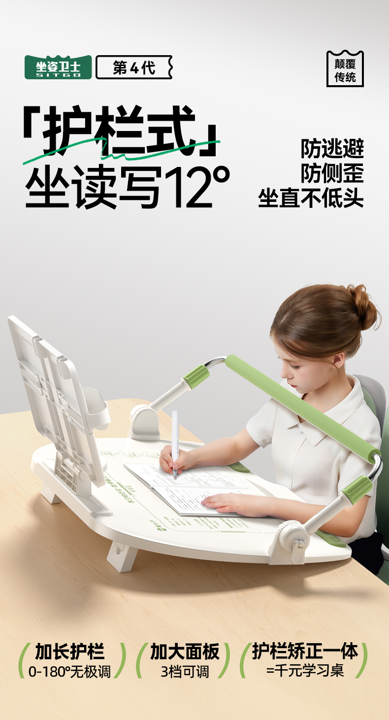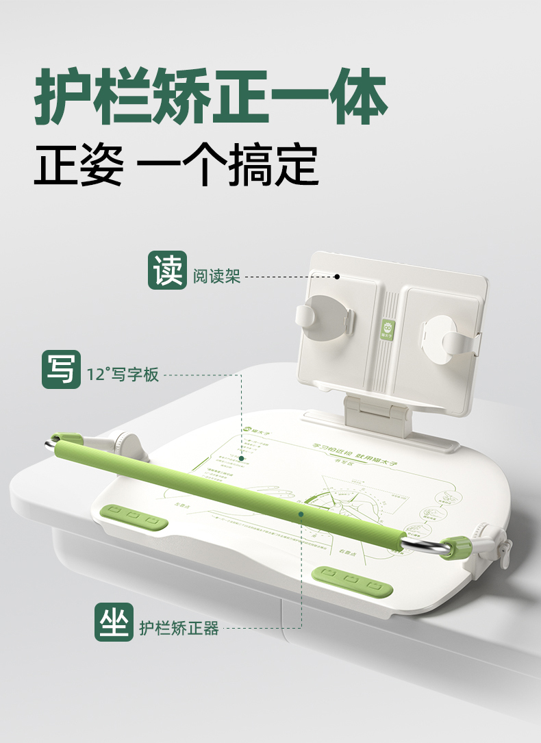 猫太子护栏坐读写12°坐姿矫正器写字姿势儿童小学生防近视支架写作业学习纠正书写防低头防驼背神器书桌面款【开学季装备特价合集】