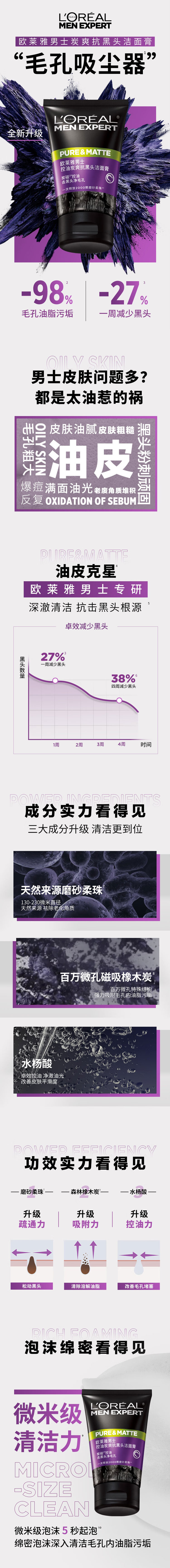 欧莱雅男士控油炭爽抗黑头洁面乳100ml