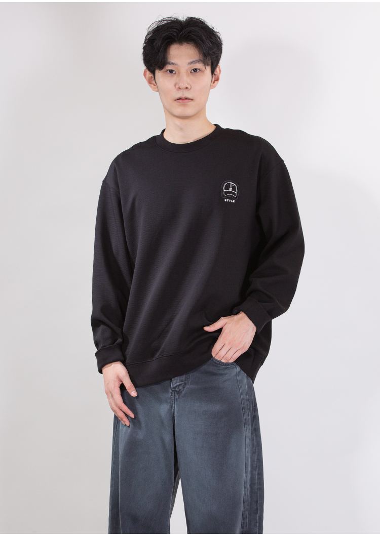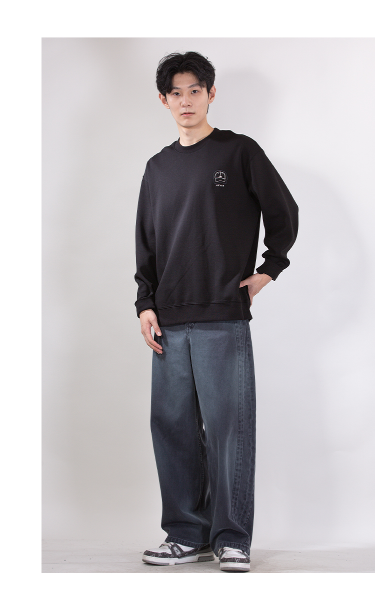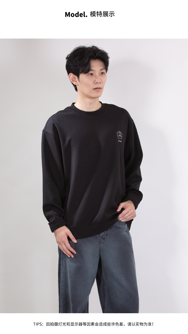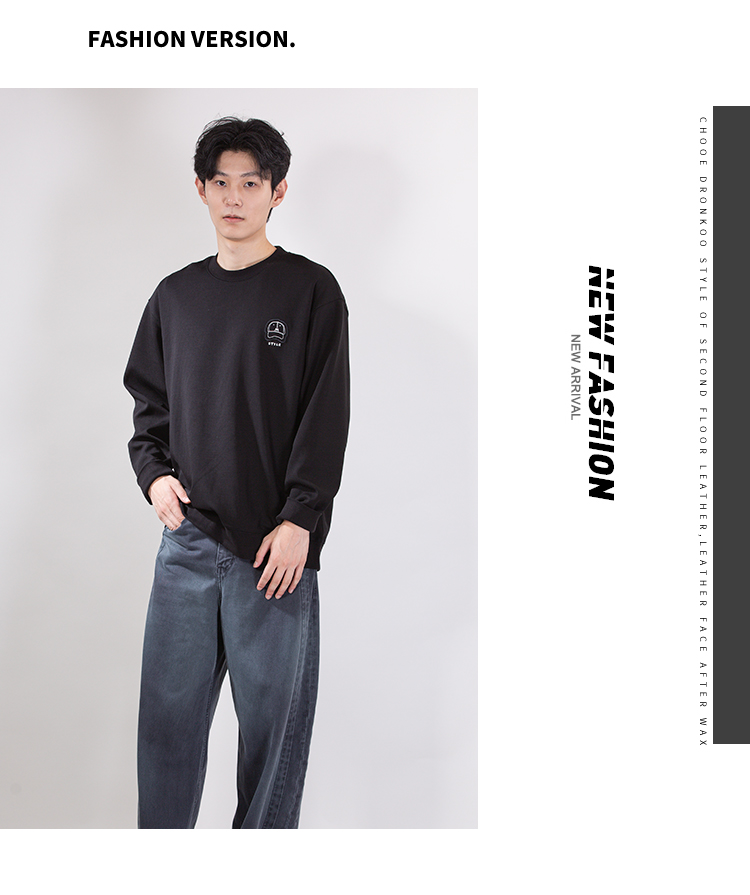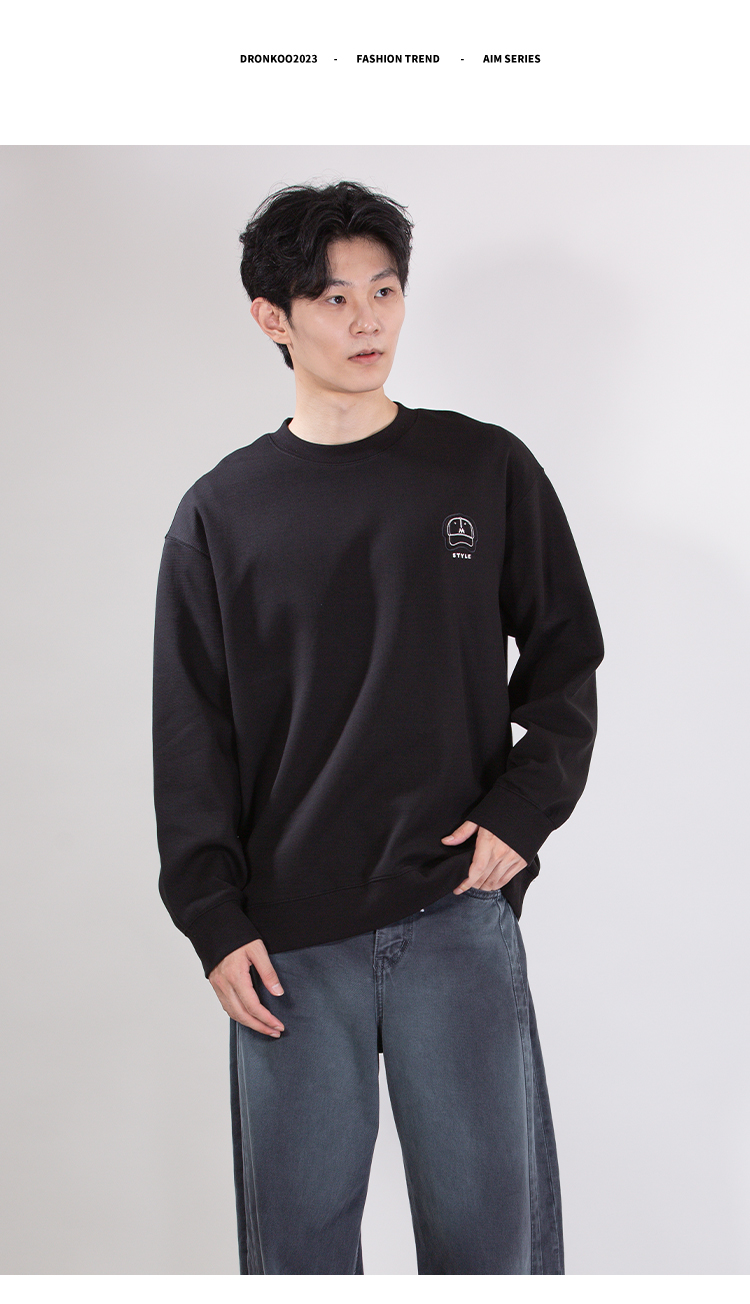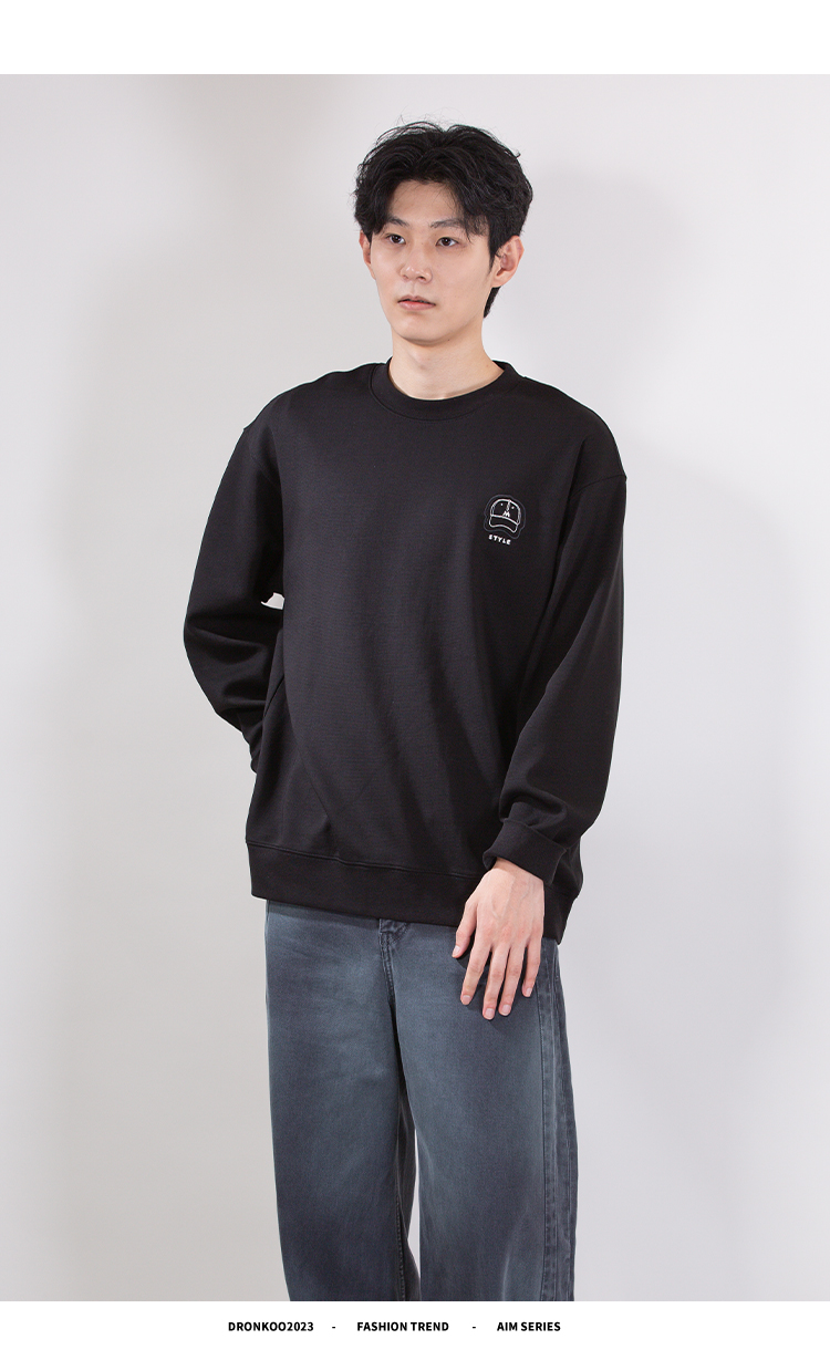 DRONKOO 2025 圆领左胸贴布小帽子中厚卫衣