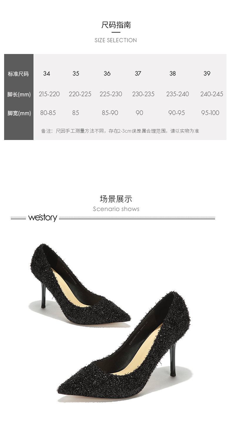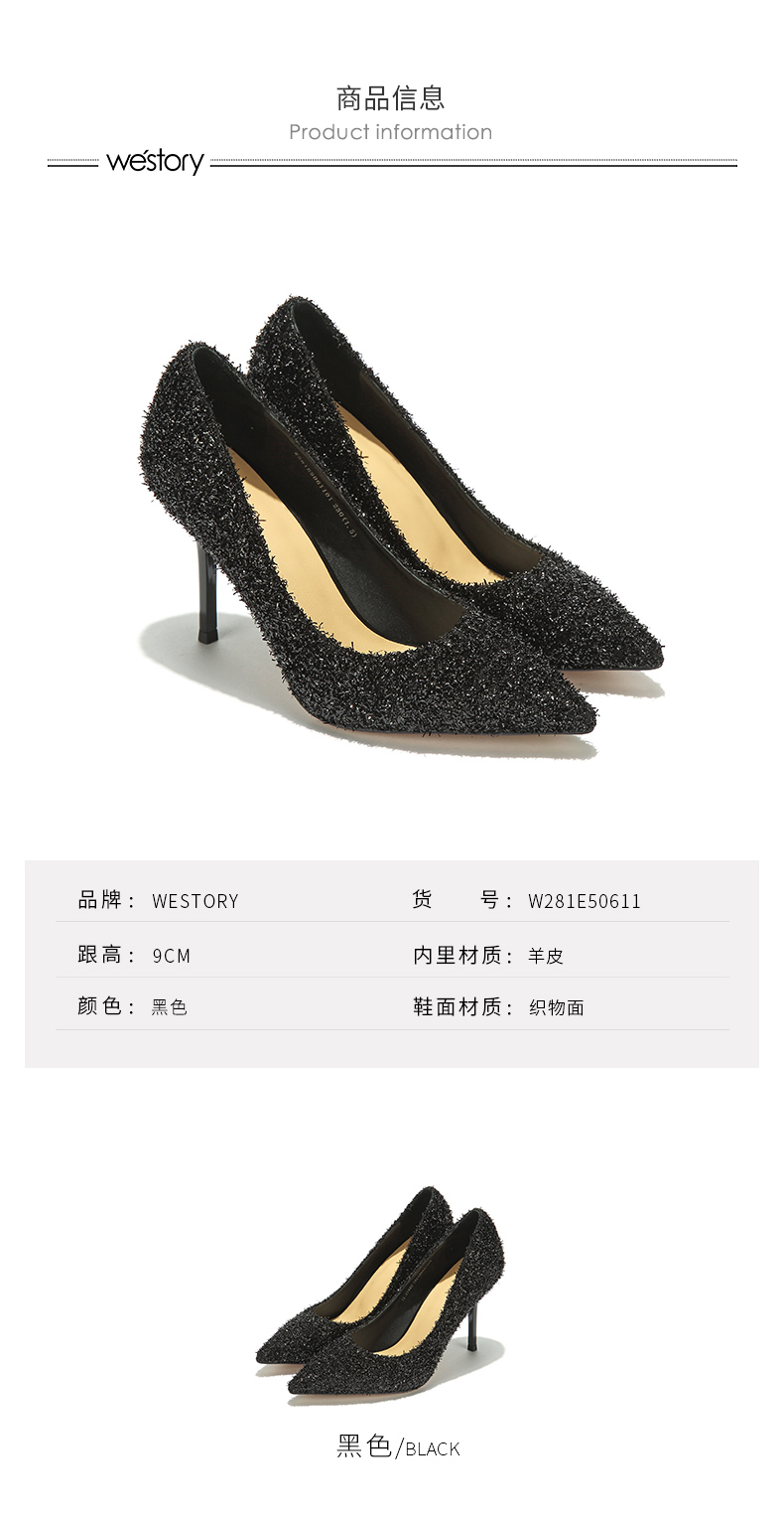 westory高跟鞋女2021年新款春季新款尖头高跟鞋W21AE52601