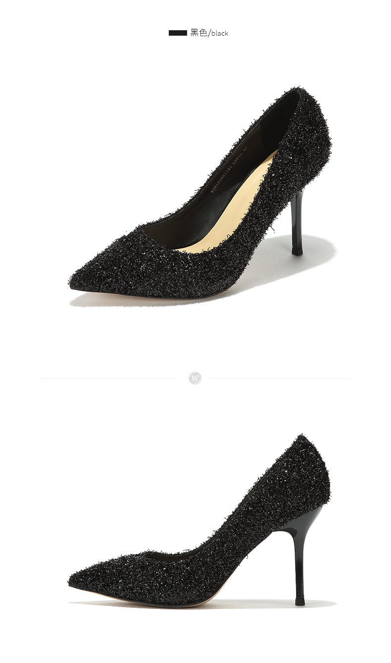 westory细高跟鞋尖头浅口单鞋绒面职业女鞋W281E50611