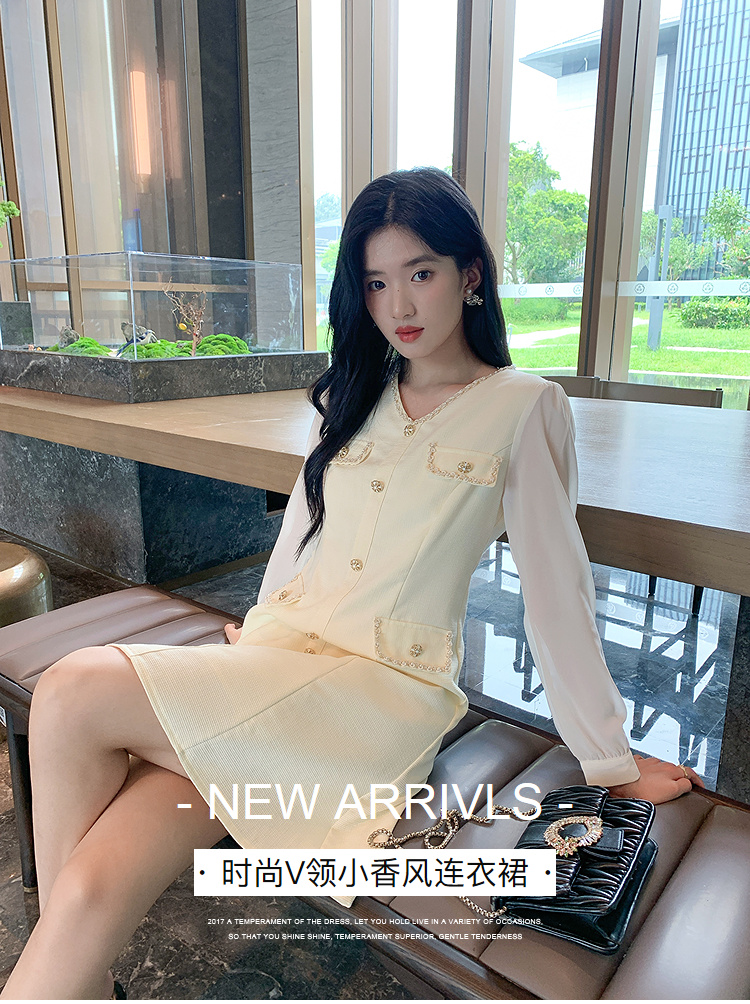 奢姿大码女装2025秋季减龄假口袋V领连衣裙胖妹妹小香风时尚裙子9953857141