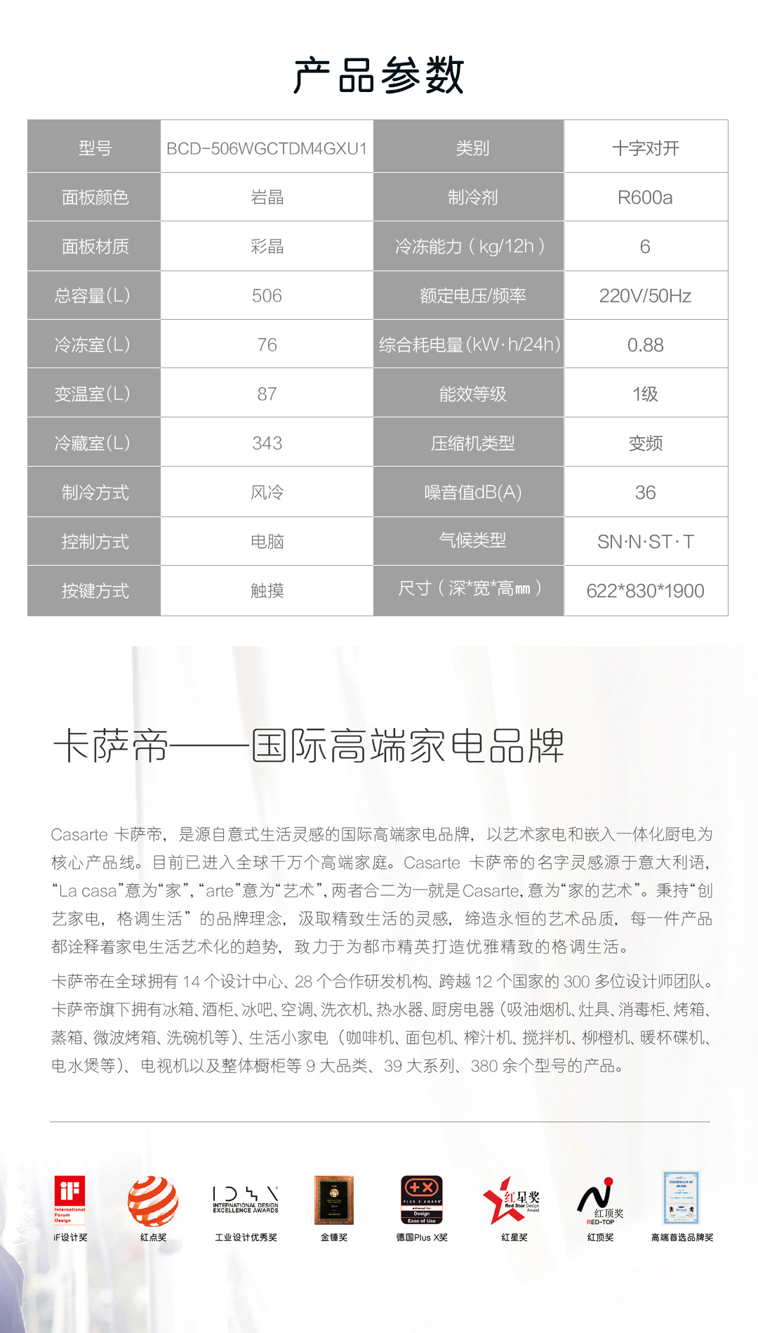 【美居】卡萨帝 T型 冰箱 BCD-506WGCTDM4GXU1