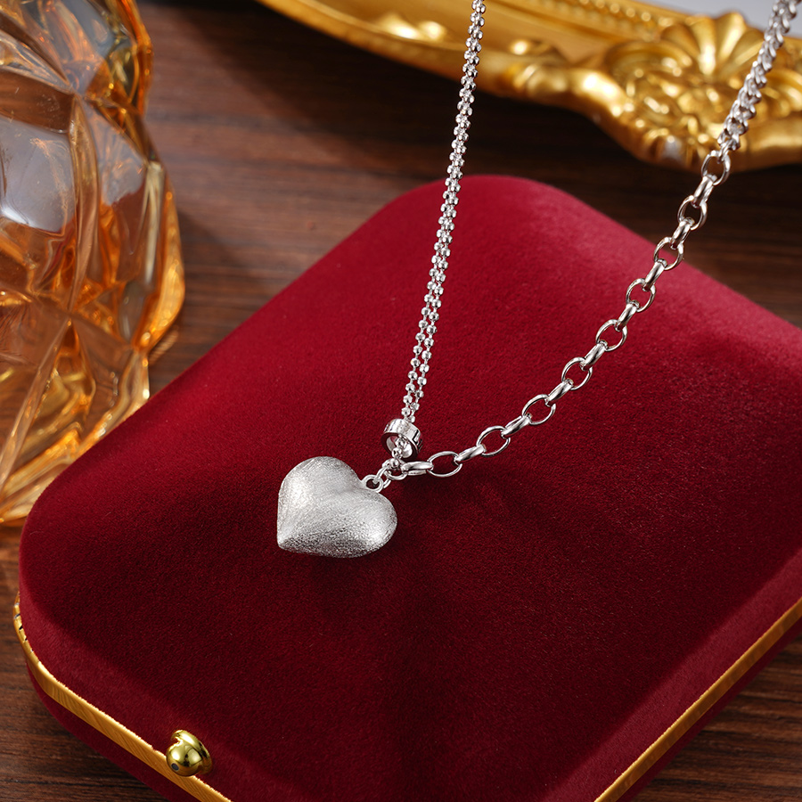 【寓意】:吊坠采用经典的爱心造型,采用拉丝工艺打造,灵动而饱满。象征爱意丛生、幸福常在。