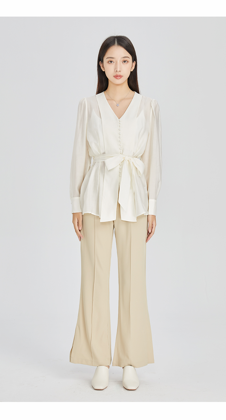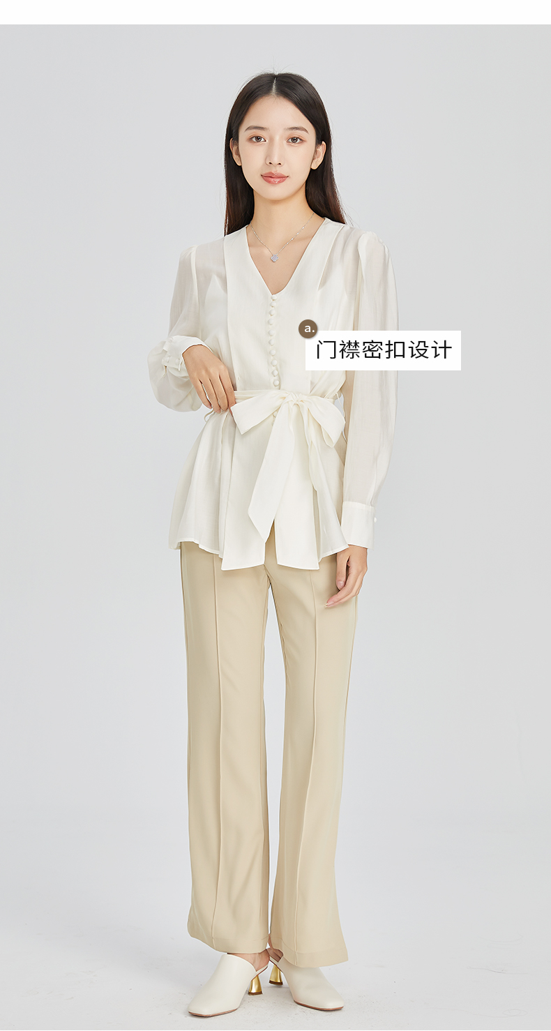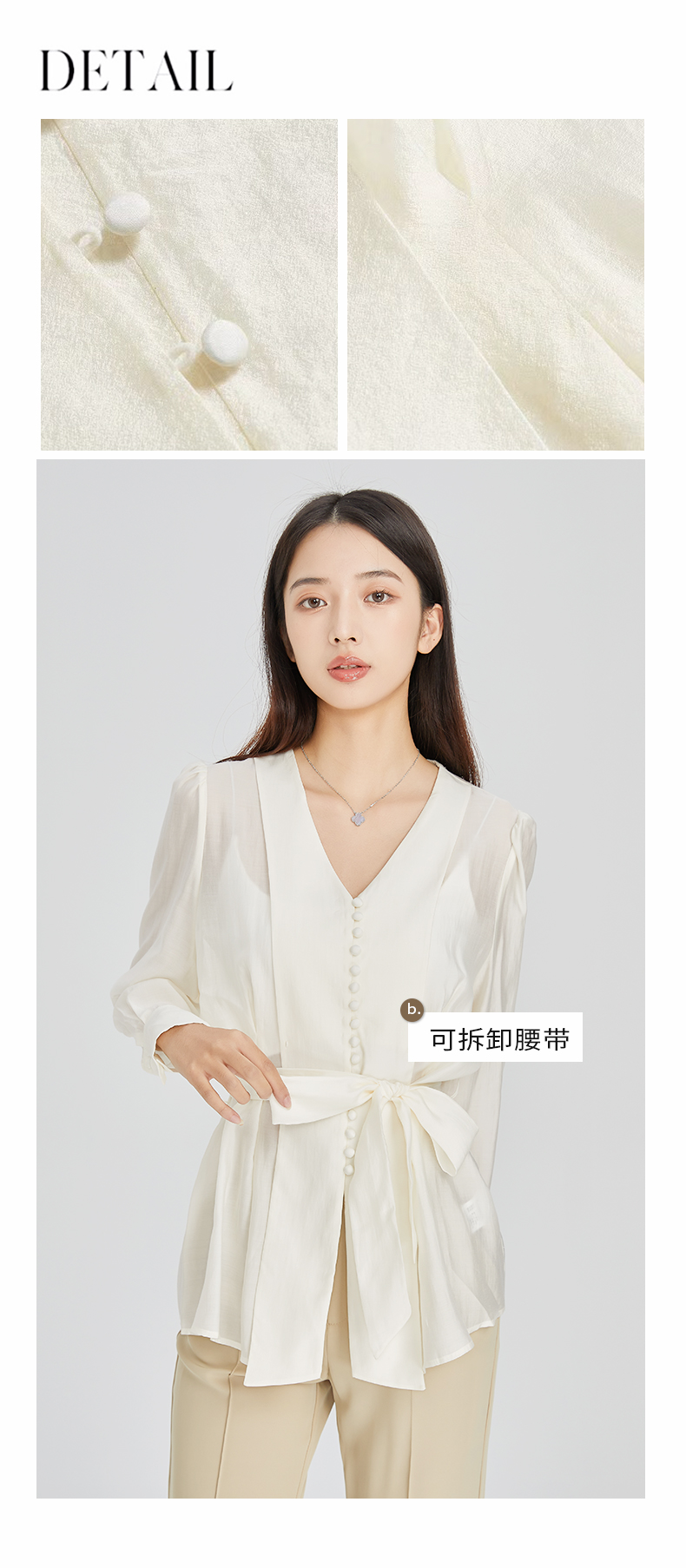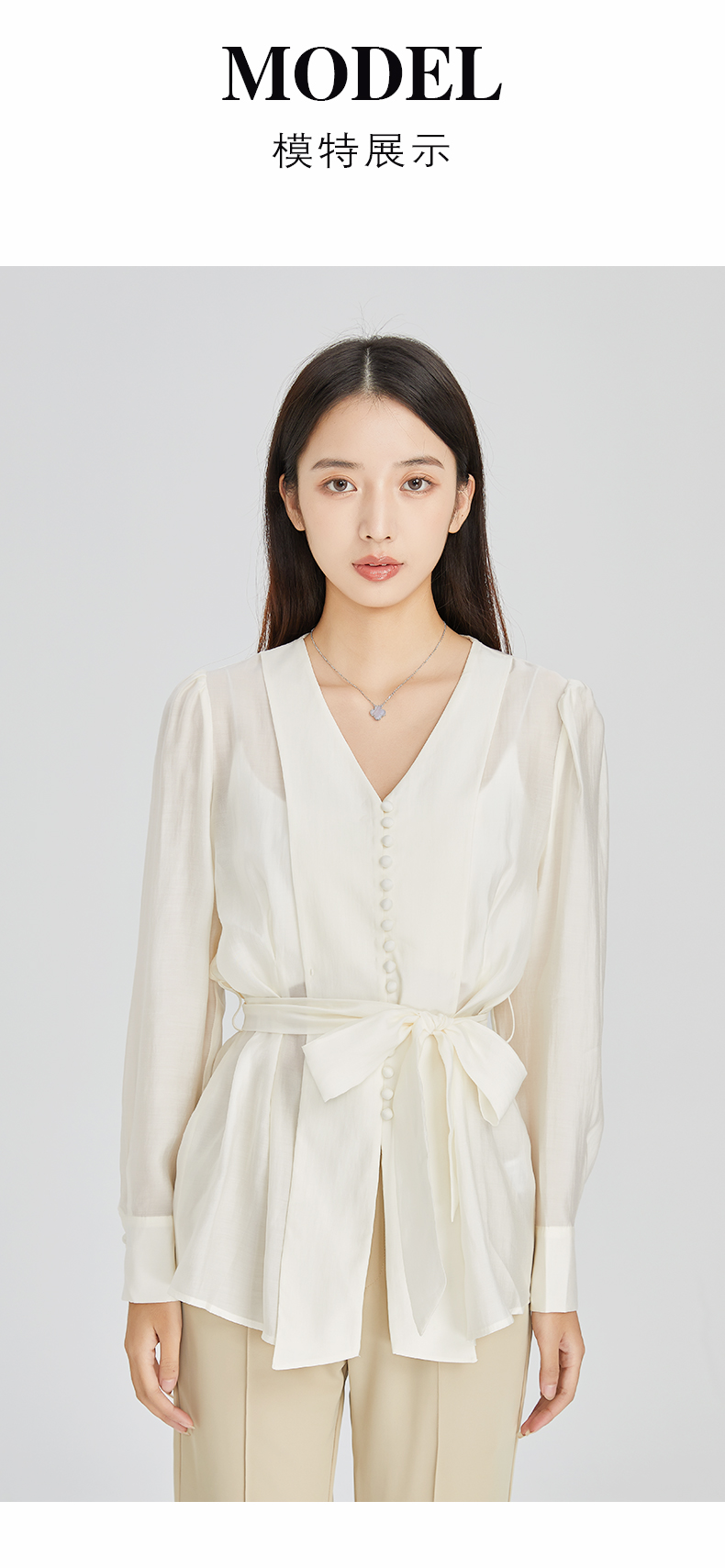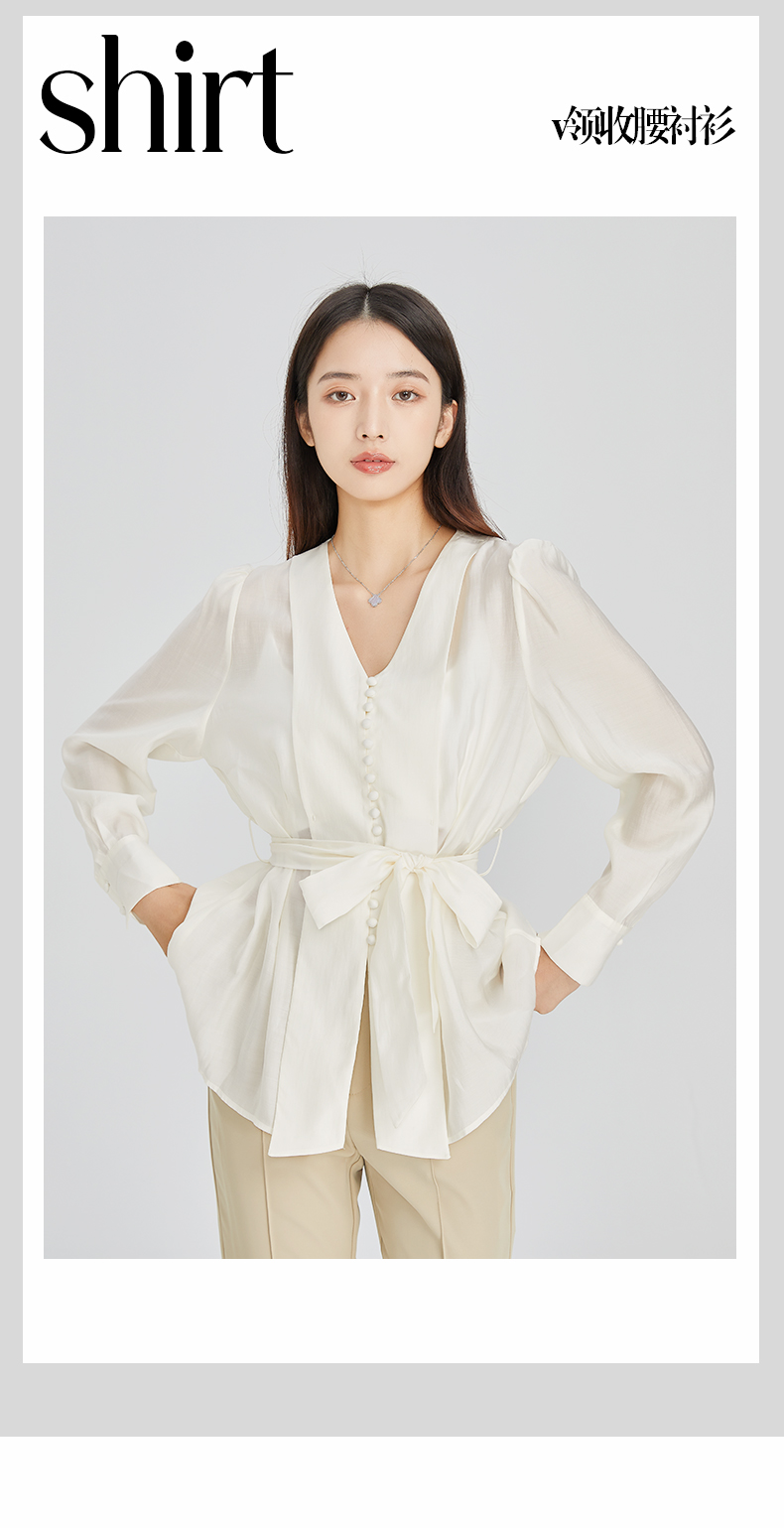 NUTS商场同款春秋季白色高级感气质通勤V领收腰衬衫女414013413