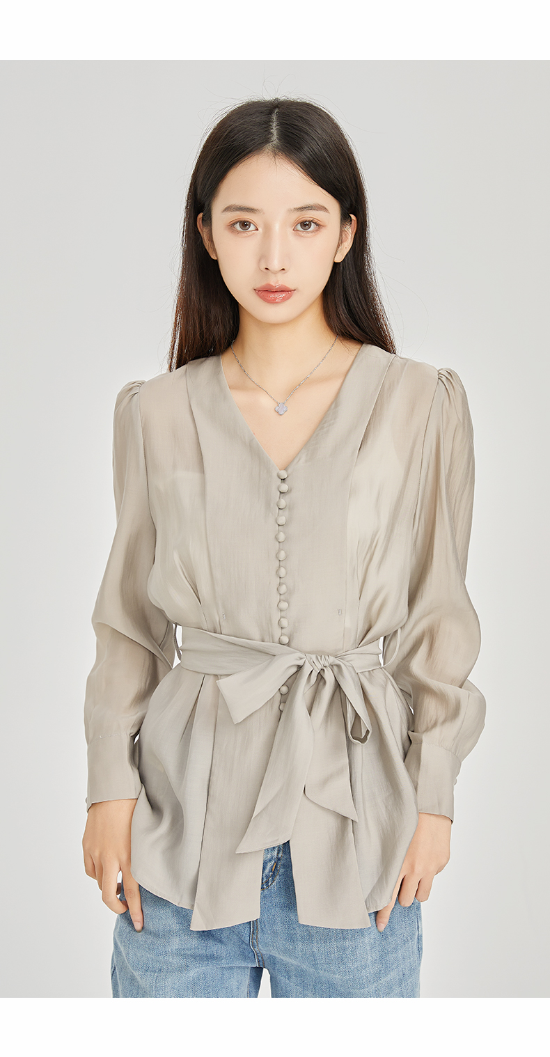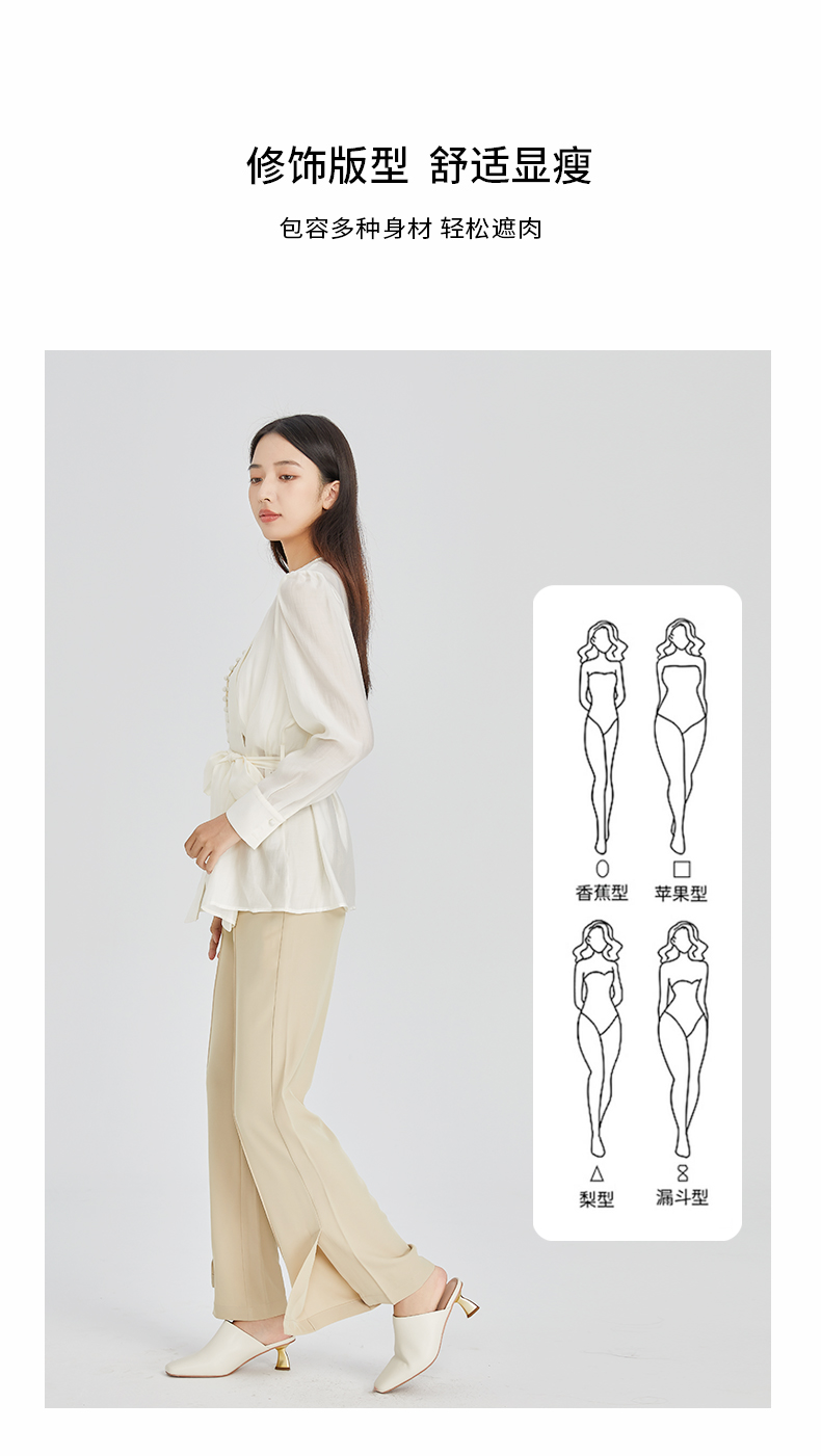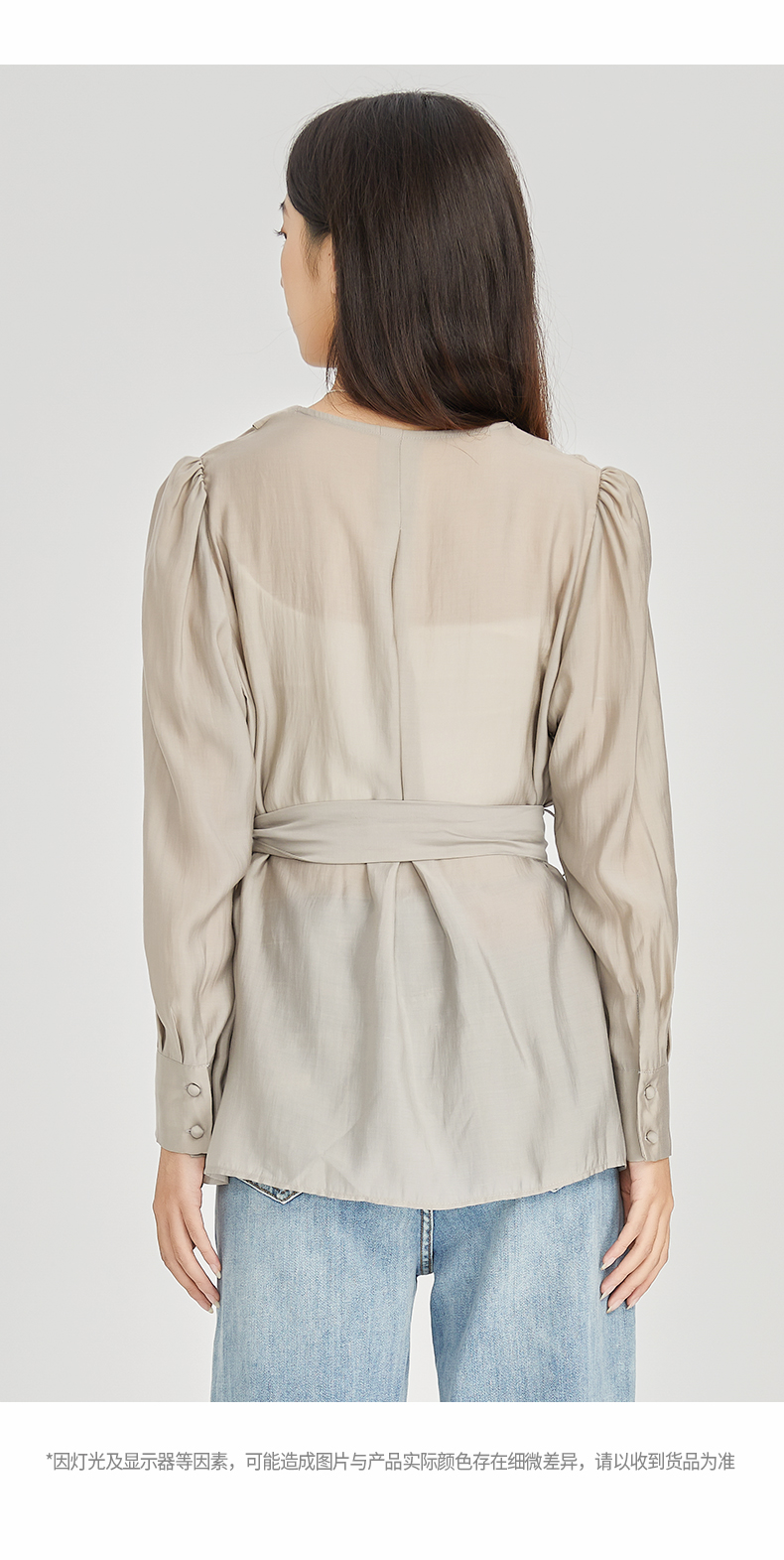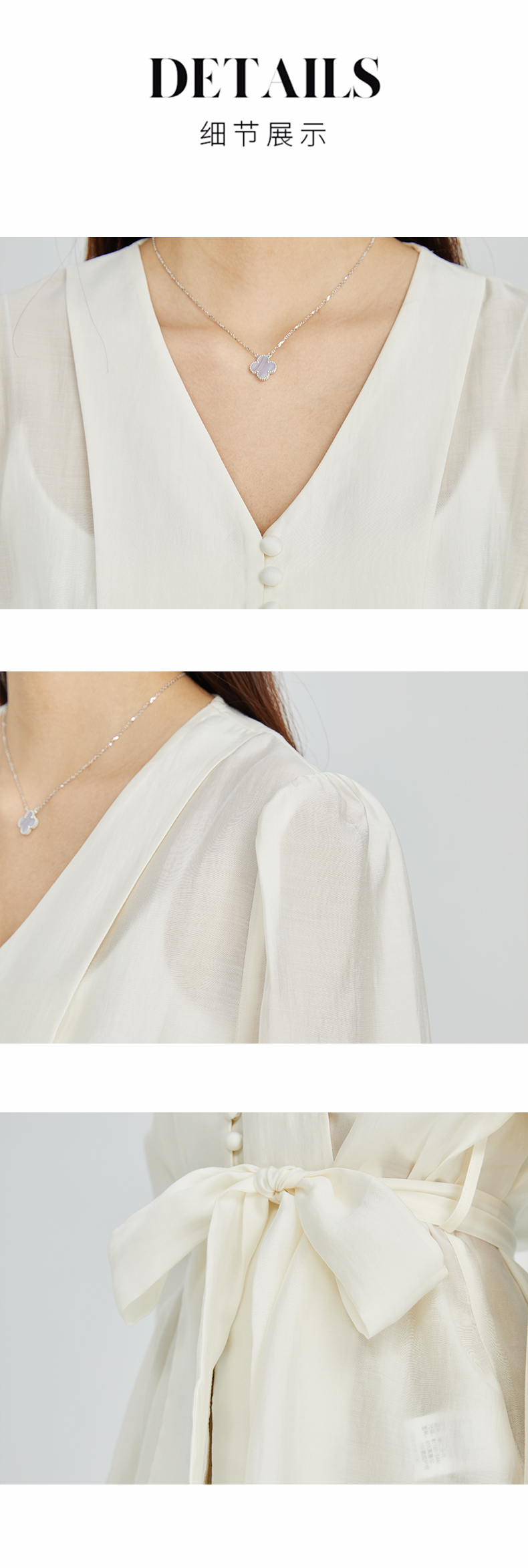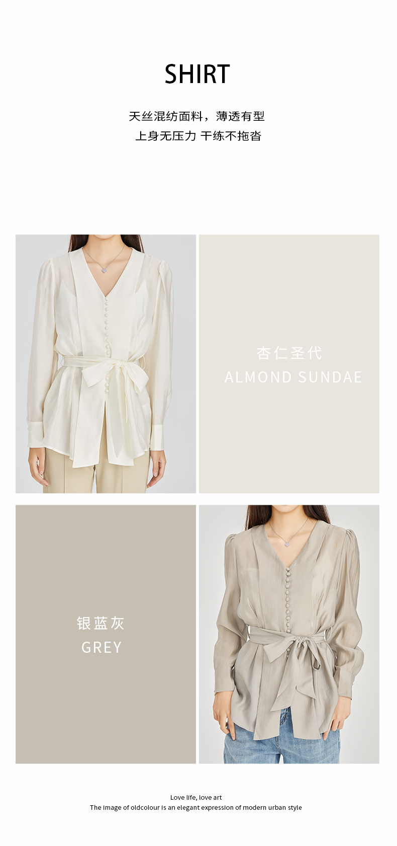 NUTS商场同款春秋季白色高级感气质通勤V领收腰衬衫女414013413