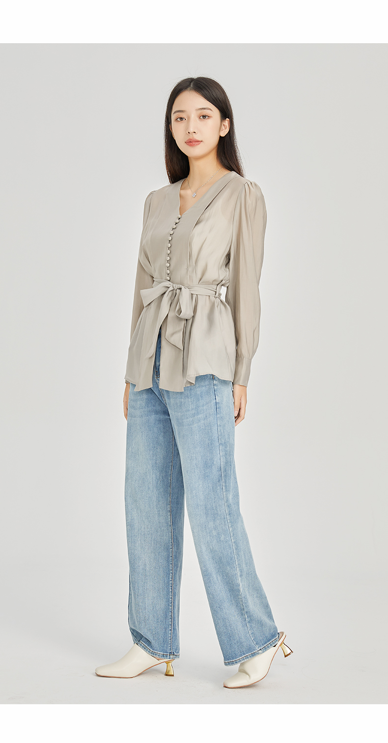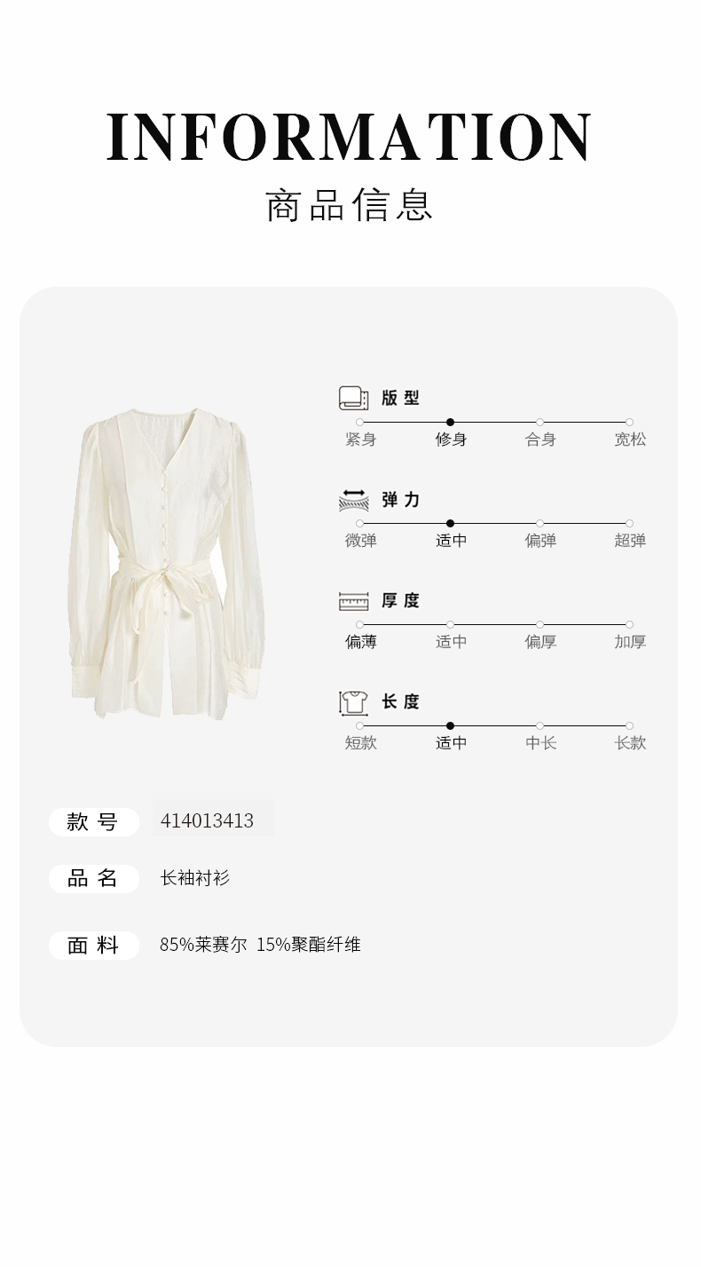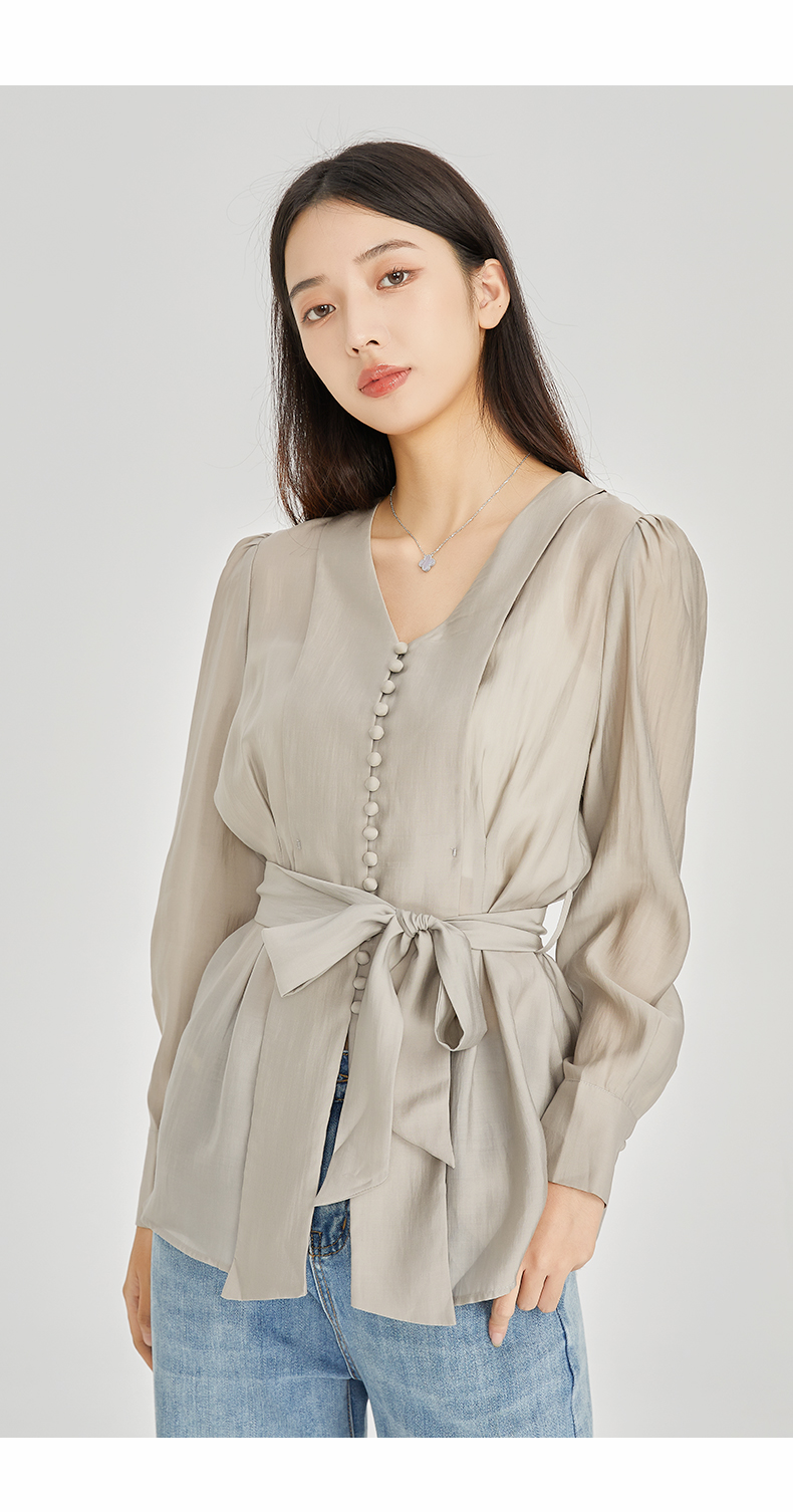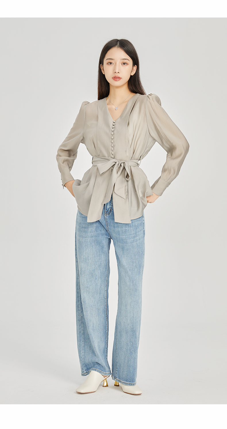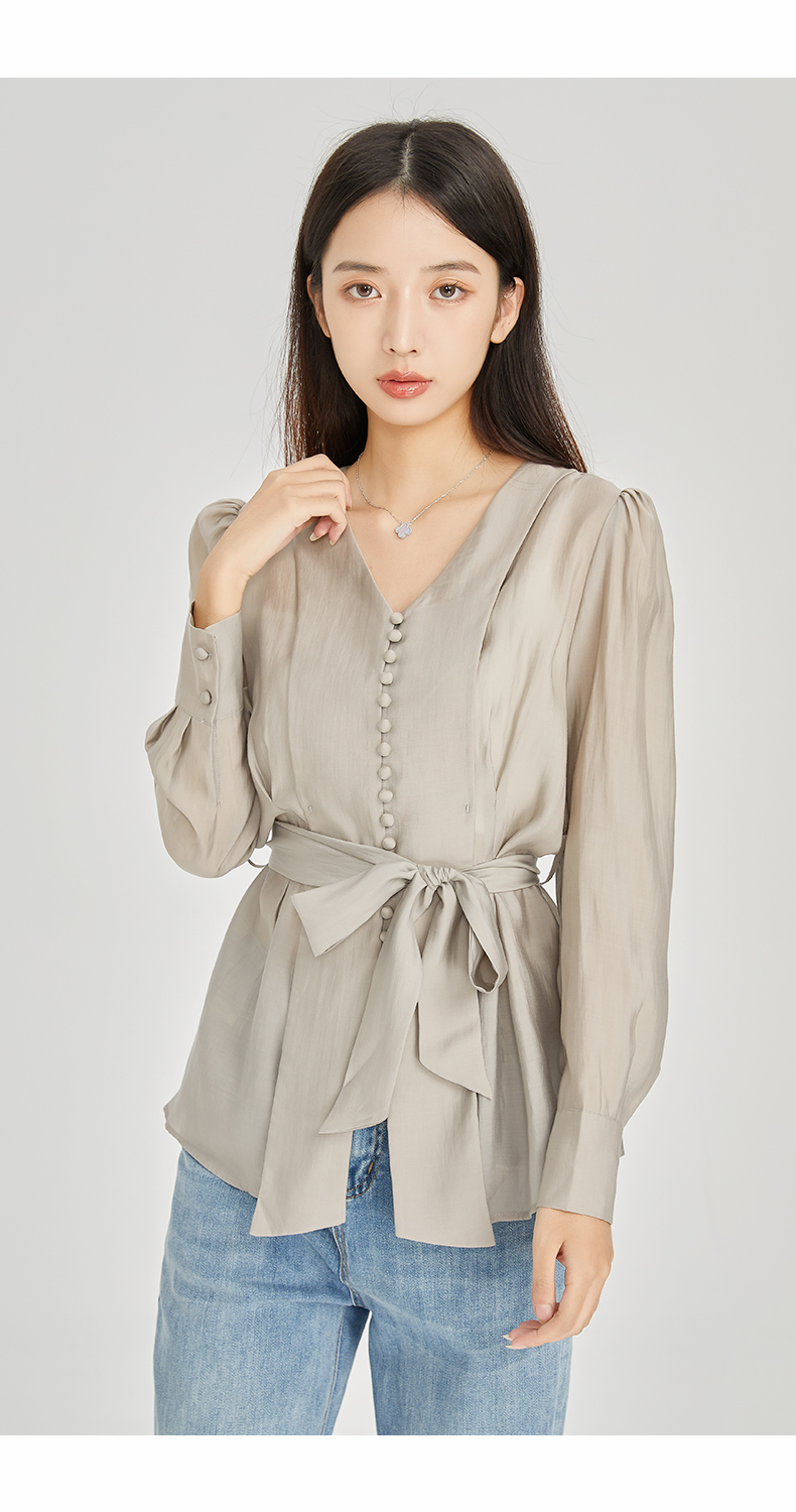 NUTS商场同款春秋季白色高级感气质通勤V领收腰衬衫女414013413