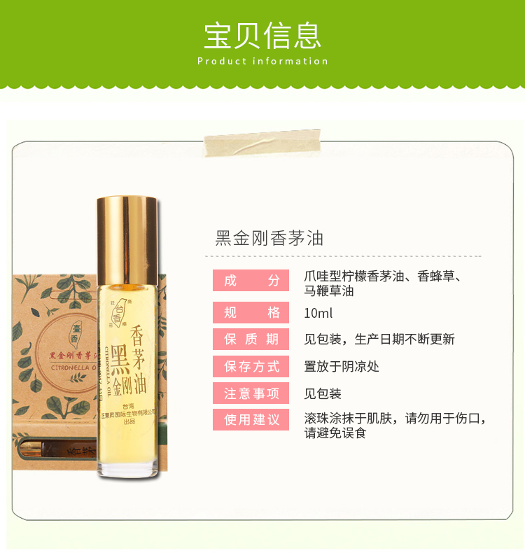 黑金刚香茅油滚珠型 2瓶/4瓶 植物精油液 户内户外皆可 绮缘70年品质保证 台湾原装