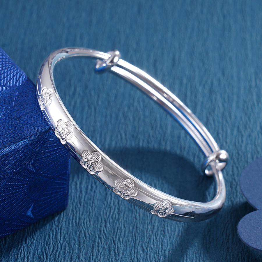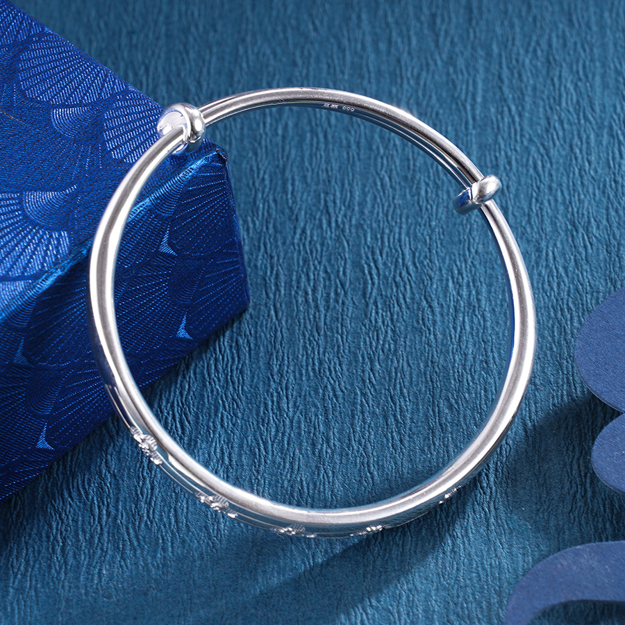 【寓意】:将花与“福”字元素相结合,以车花工艺呈现于手镯表面。寓意福从花中生,花随福自来。