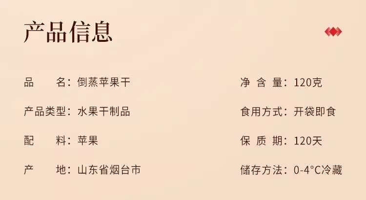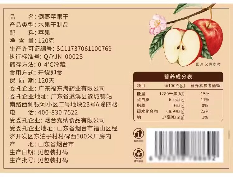 【分仓直发包邮】福东海倒蒸苹果干120g/袋*2袋