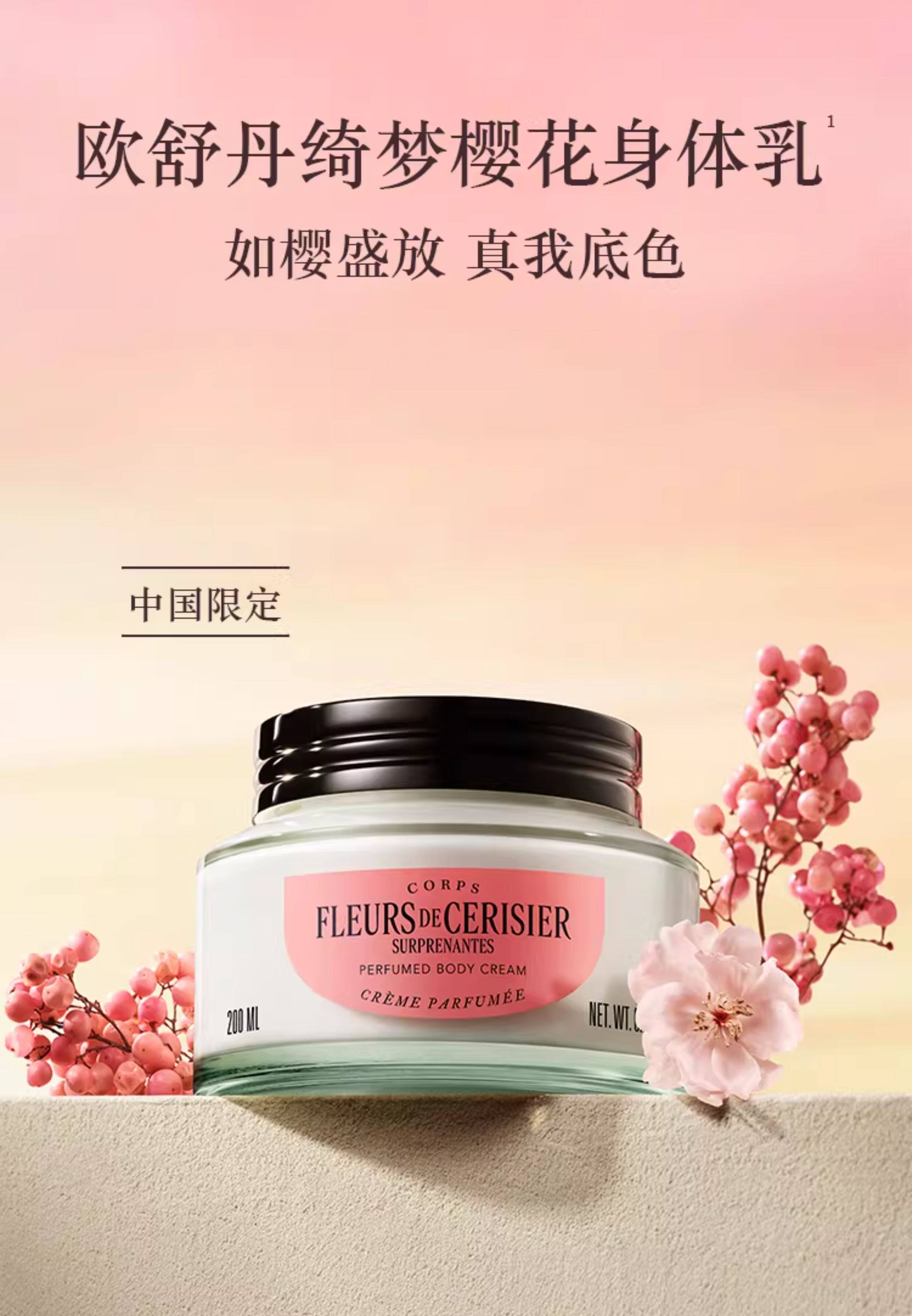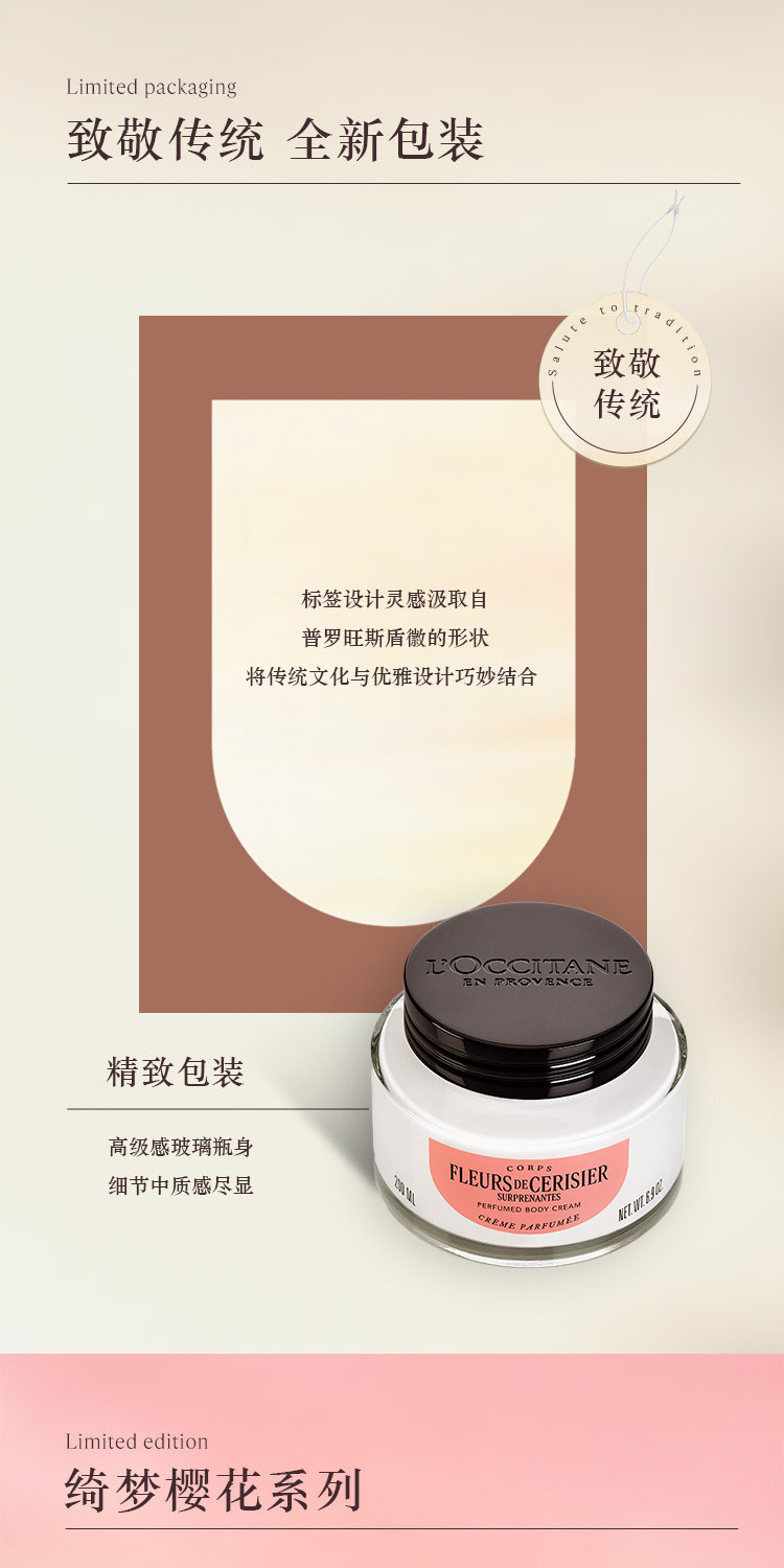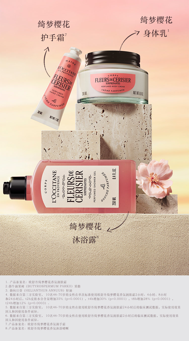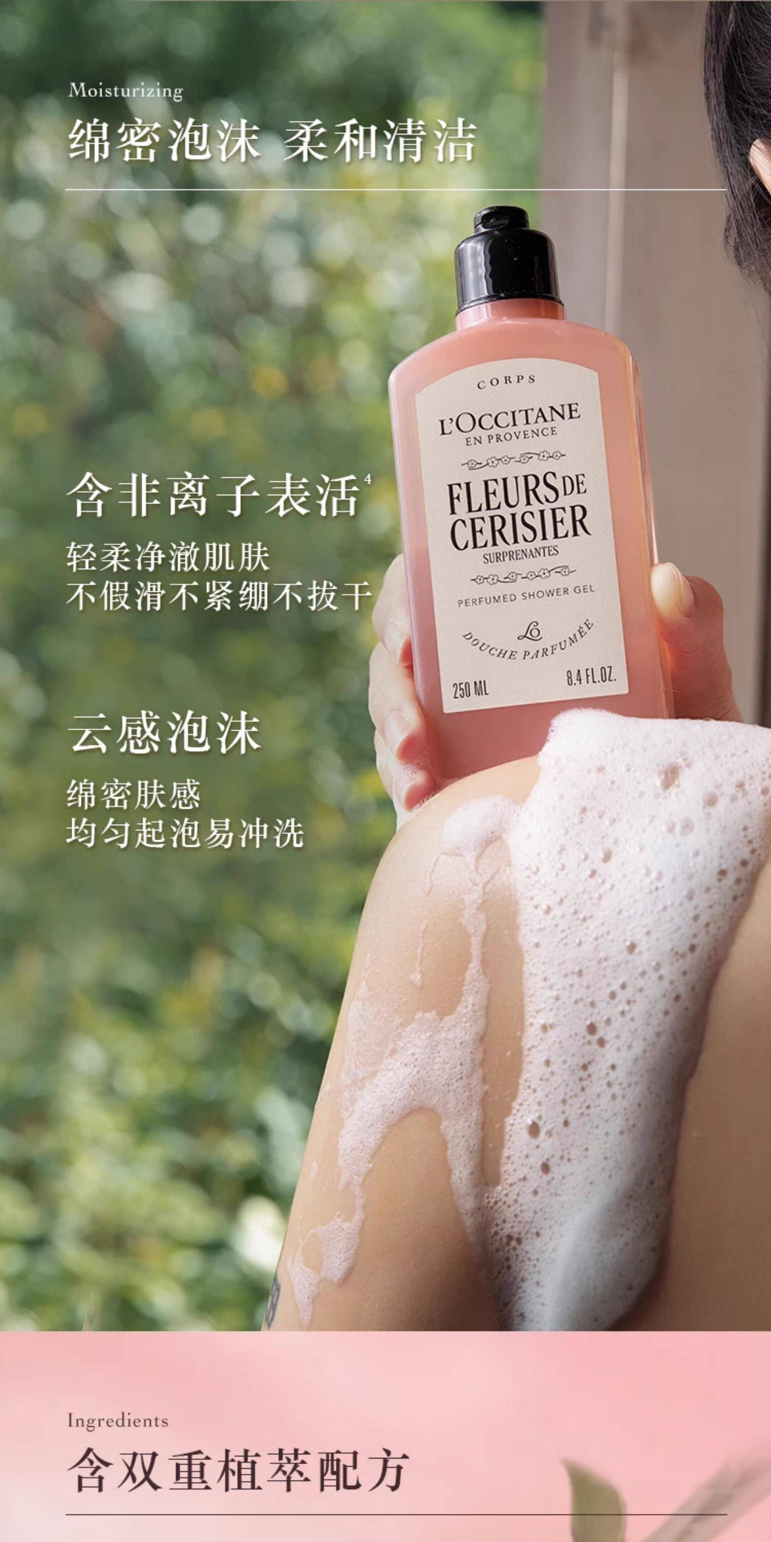 【L'OCCITANE欧舒丹绮梦樱花四件套】 身体乳200ml+香氛沐浴啫喱250ml +护手霜30ml +刮板1个