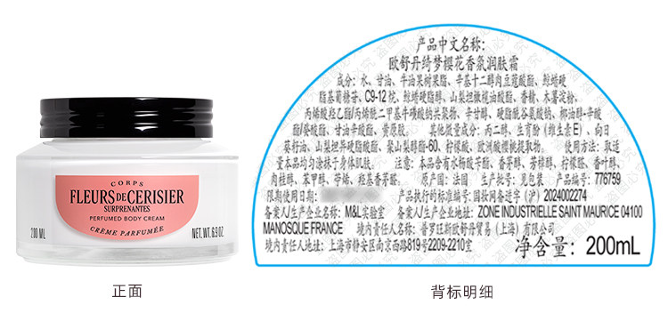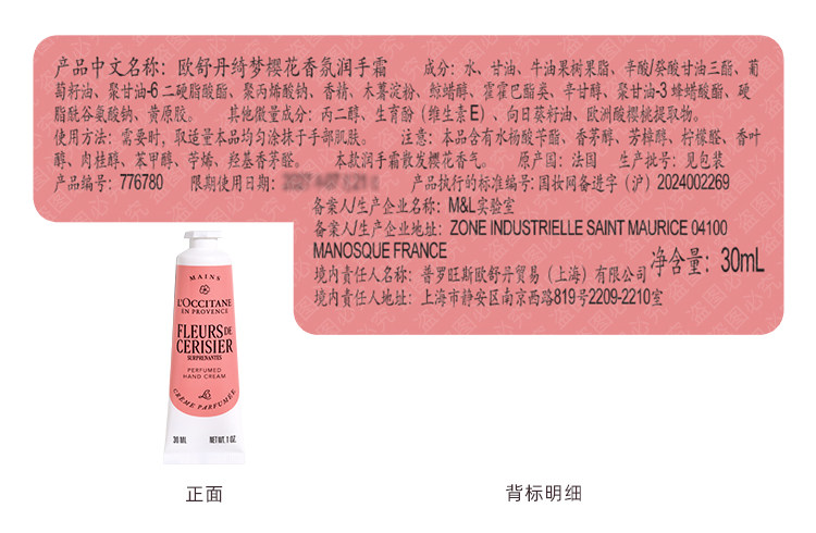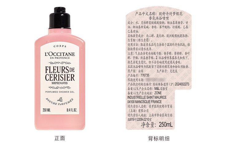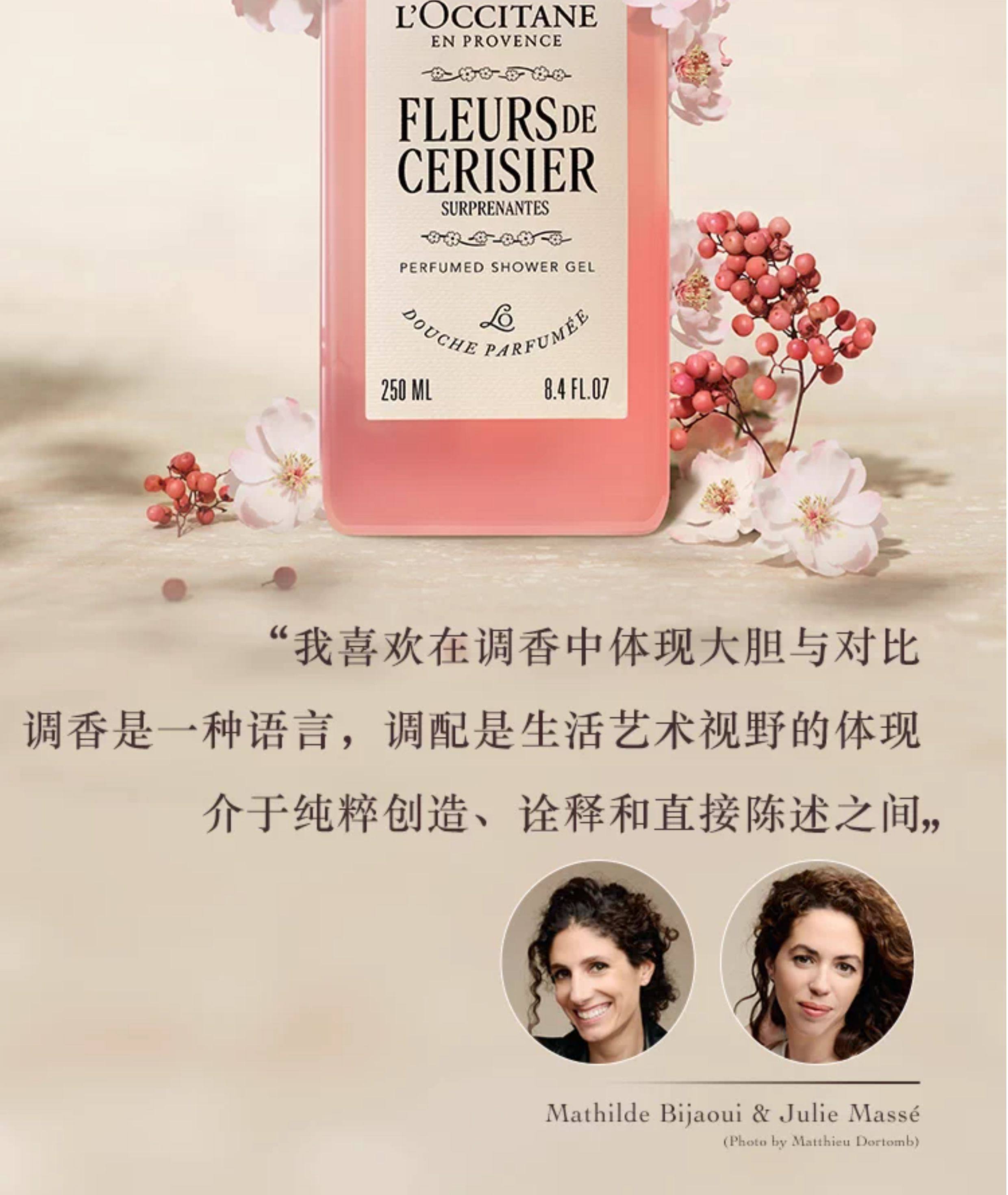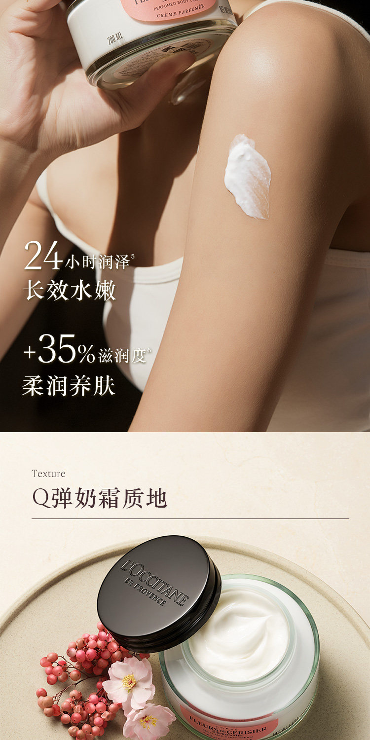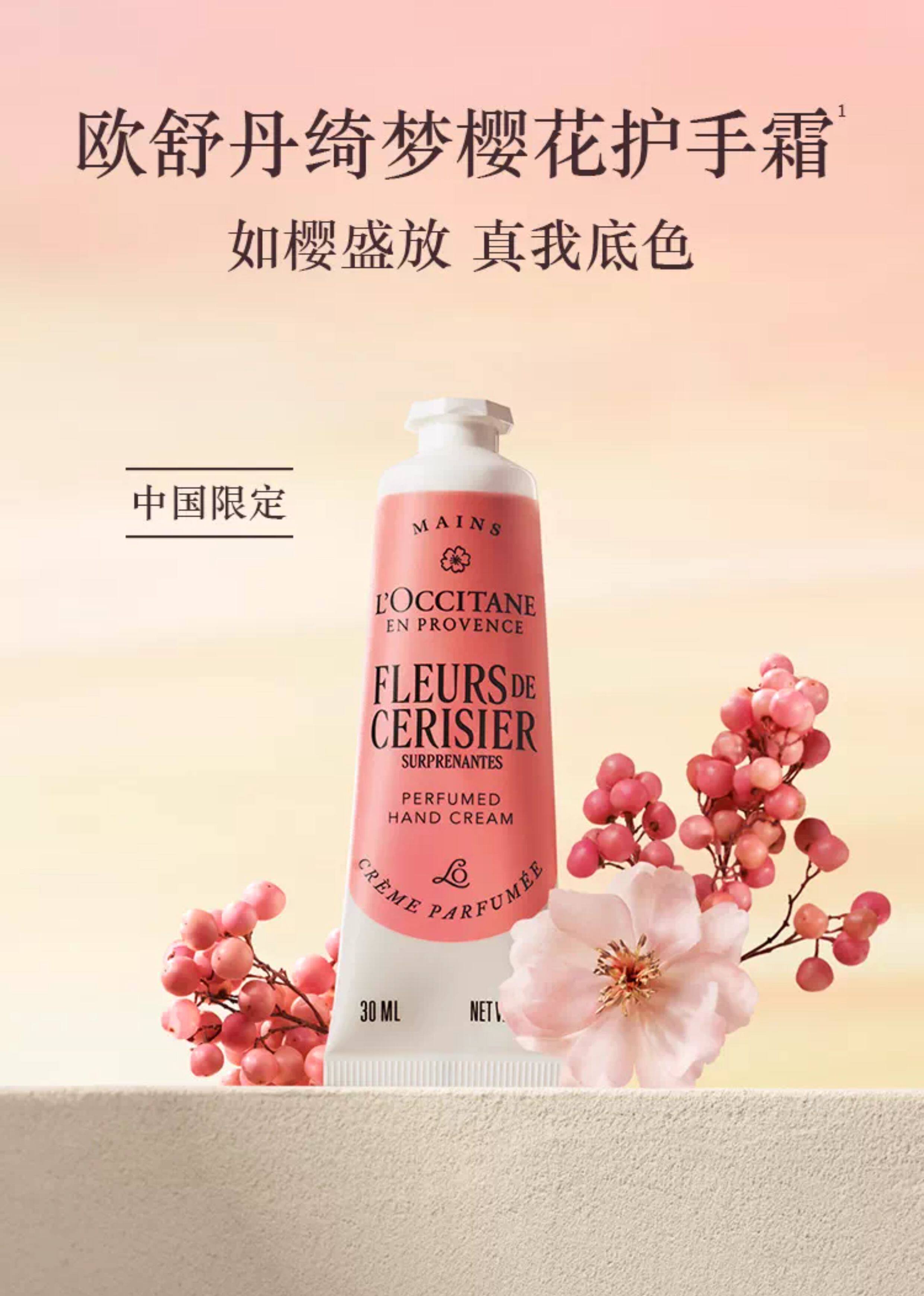 【L'OCCITANE欧舒丹绮梦樱花四件套】 身体乳200ml+香氛沐浴啫喱250ml +护手霜30ml +刮板1个