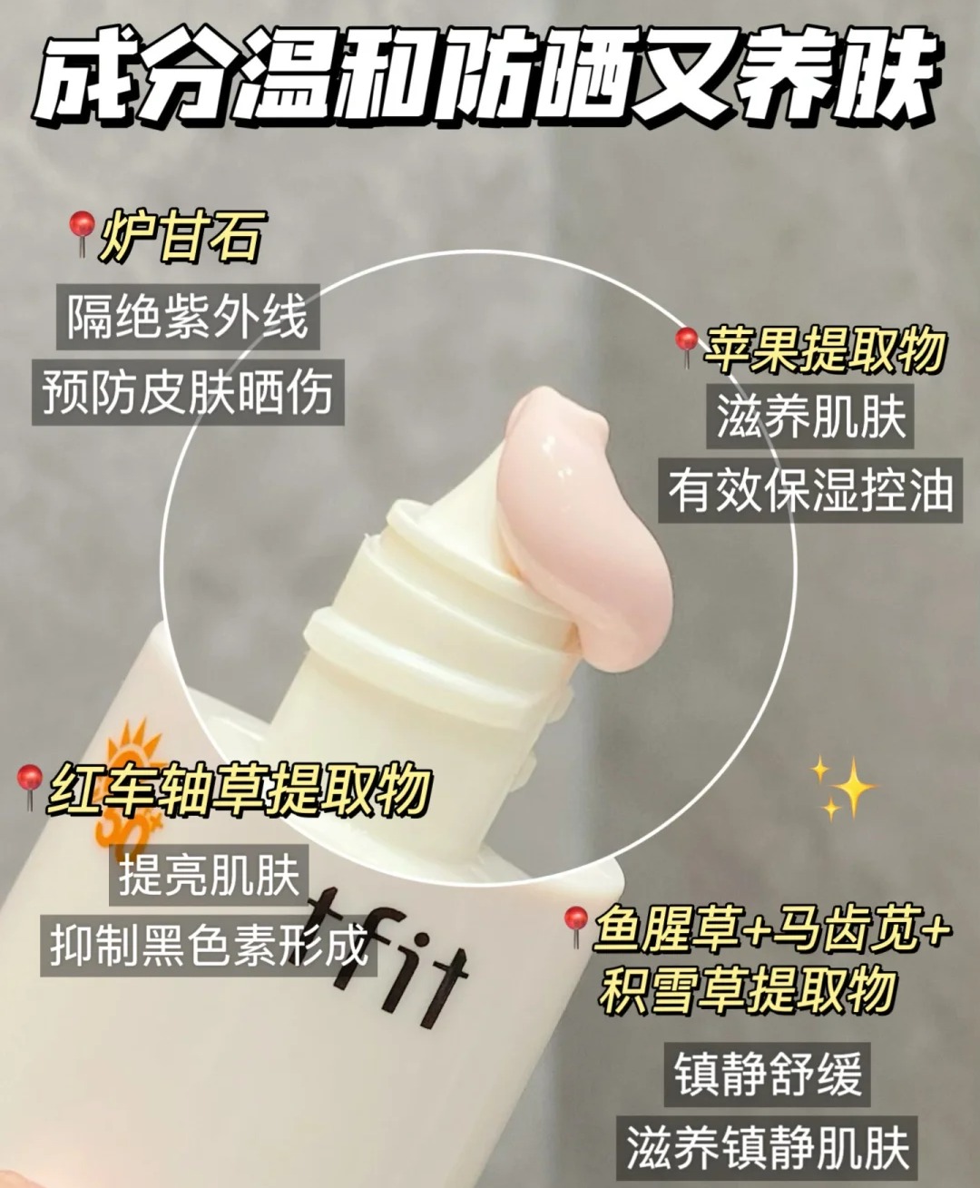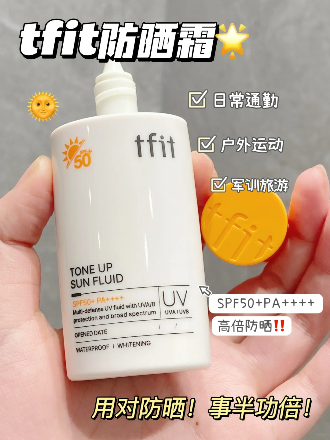 【TFIT韩国进口美白防晒液】17种氨基酸成分!质地水润,强效保湿!美白防晒双结合,粉嫩提亮无假白!高倍防晒,打造水分平衡,赋予肌肤光泽!SPF50+PA++++,50ML!
