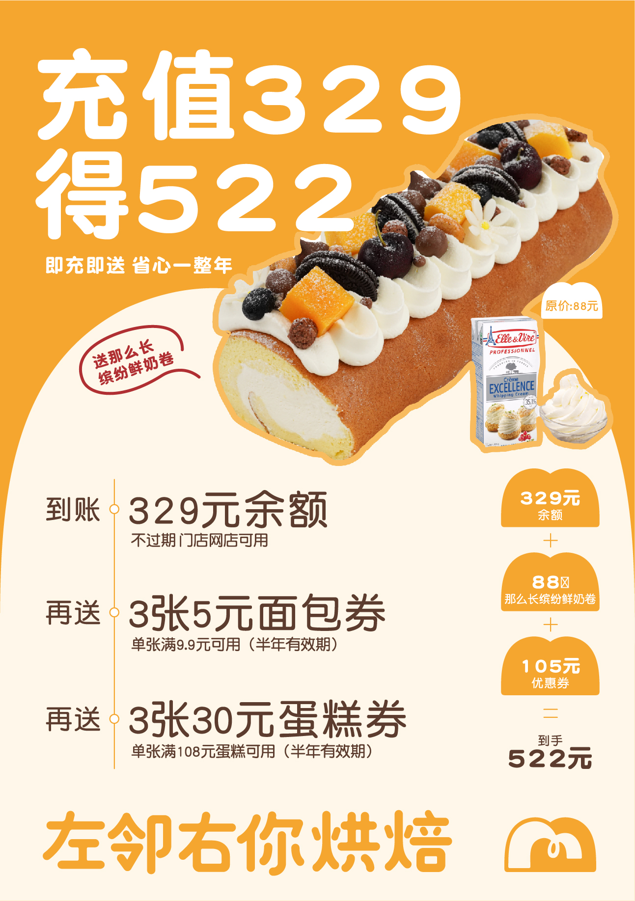 【充值免费送蛋糕】那么大缤纷鲜奶蛋糕卷 | 动物性淡奶油 软绵蛋糕卷 老少皆宜 提前一天下单