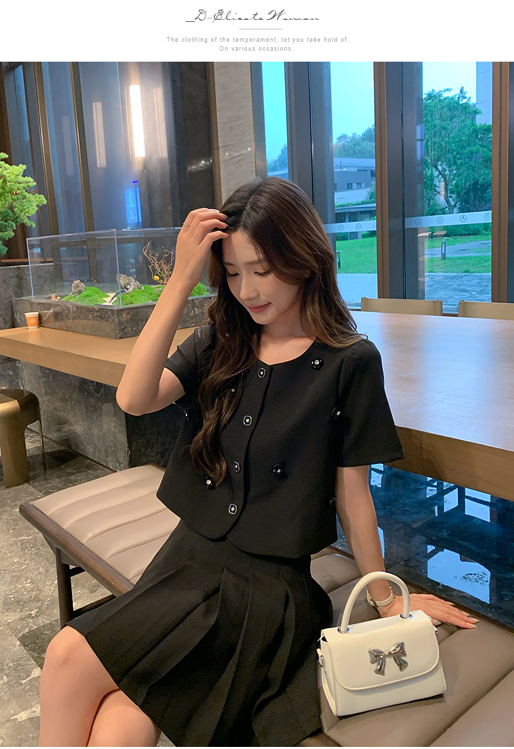奢姿大码女装2025夏季减龄立体花朵时尚两件套胖妹妹百褶通勤套装9952953300