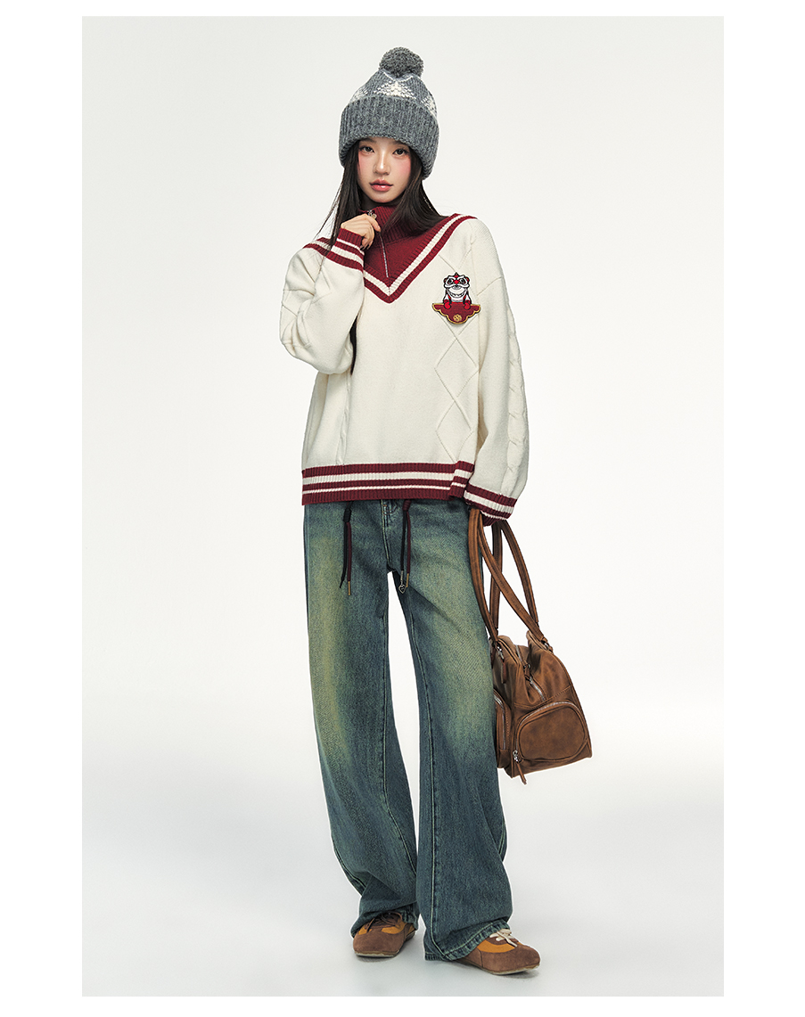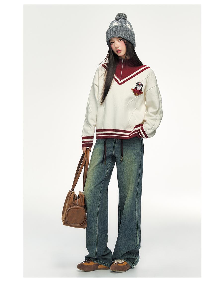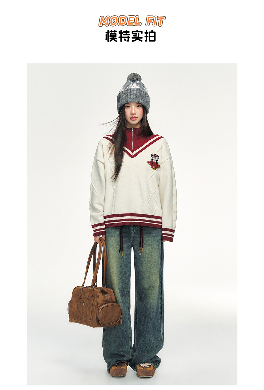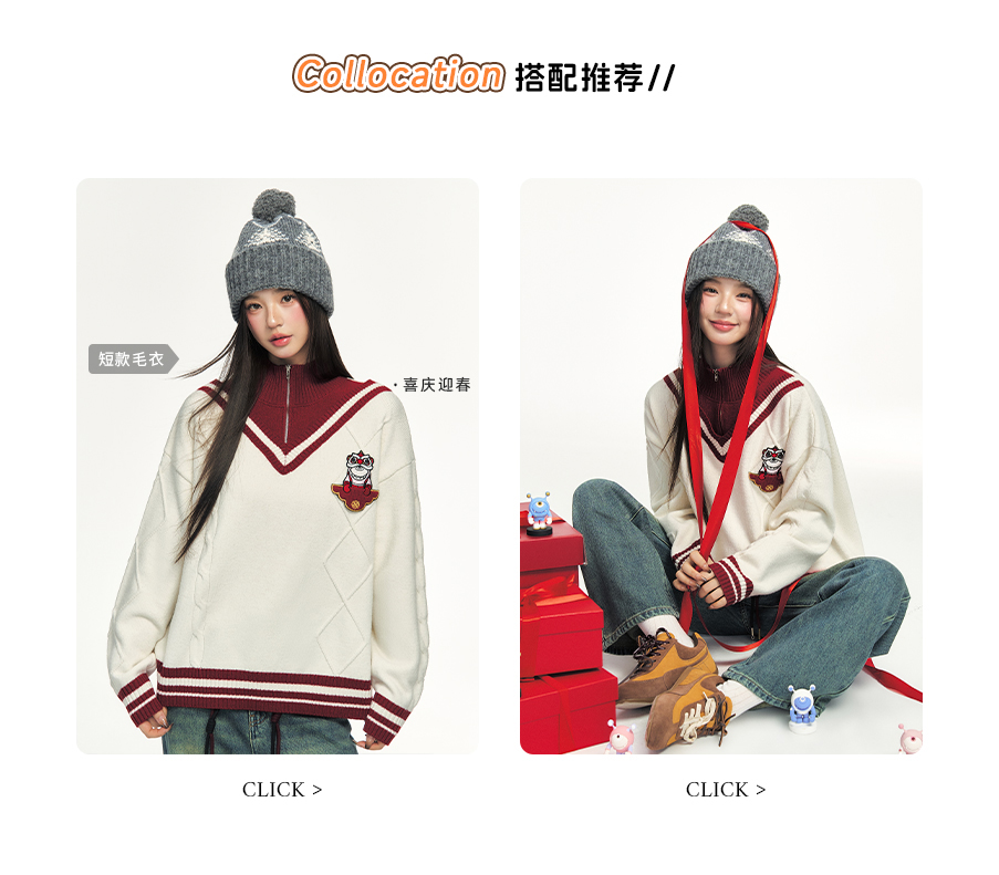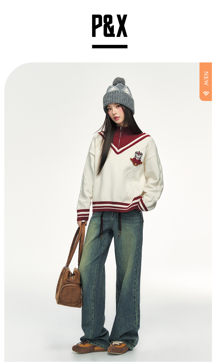 P&X设计师女装2024冬季休闲百搭学院风短款毛衣女 824418134 灰色