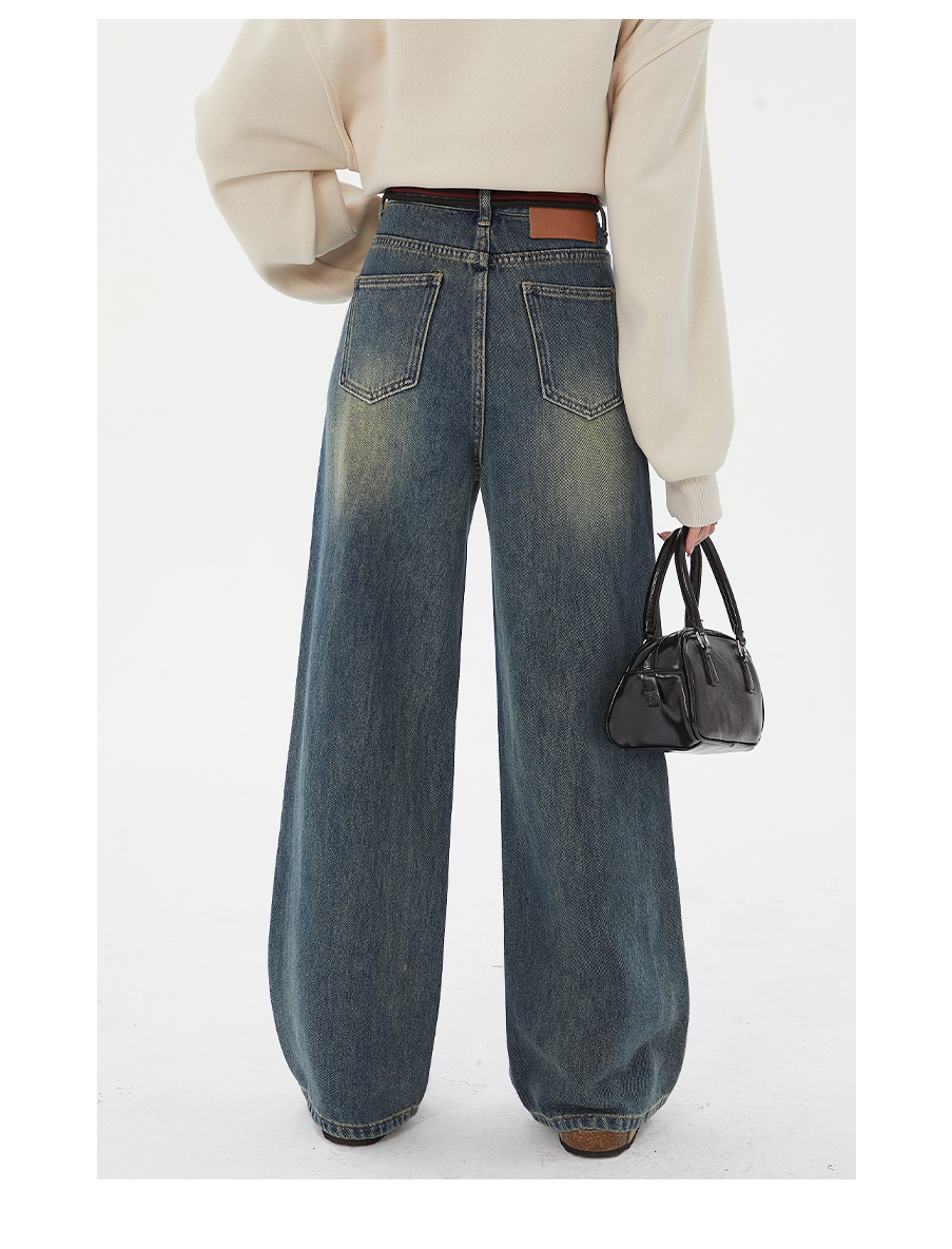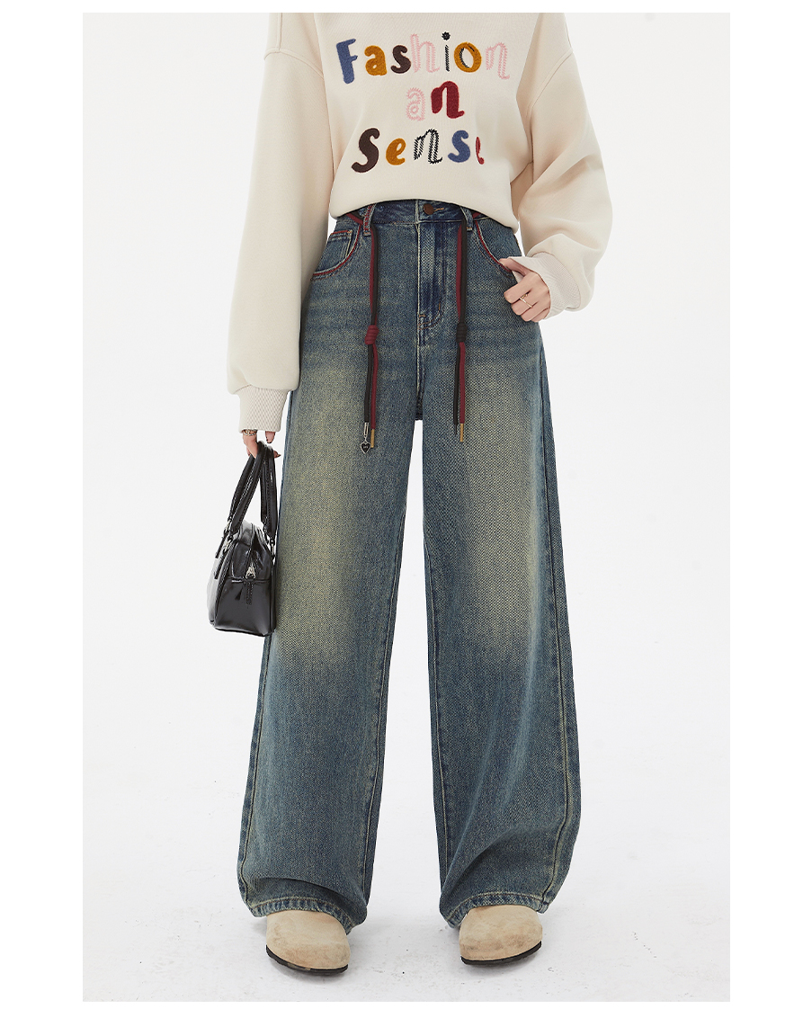 P&X设计师女装新款时尚水洗牛仔宽松长裤825110060 蓝色