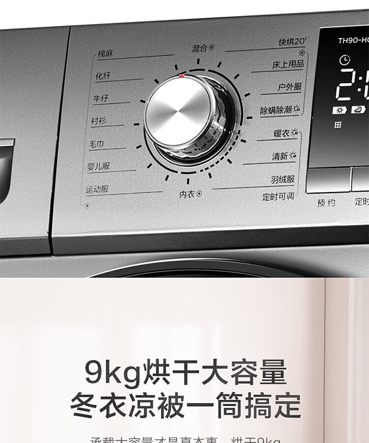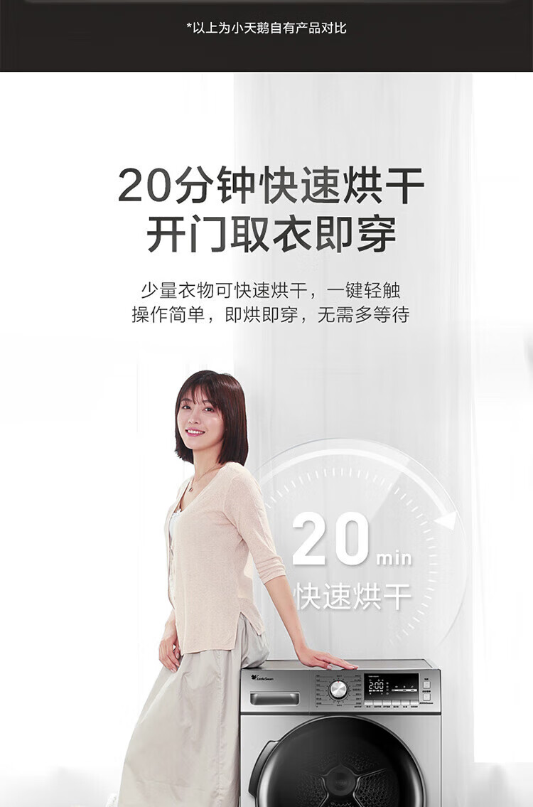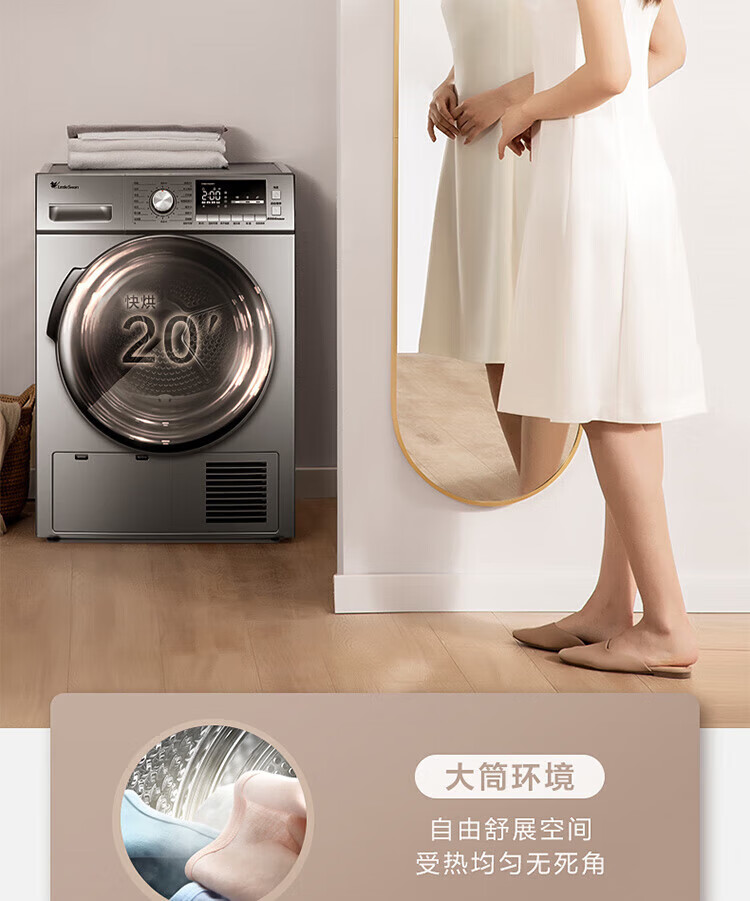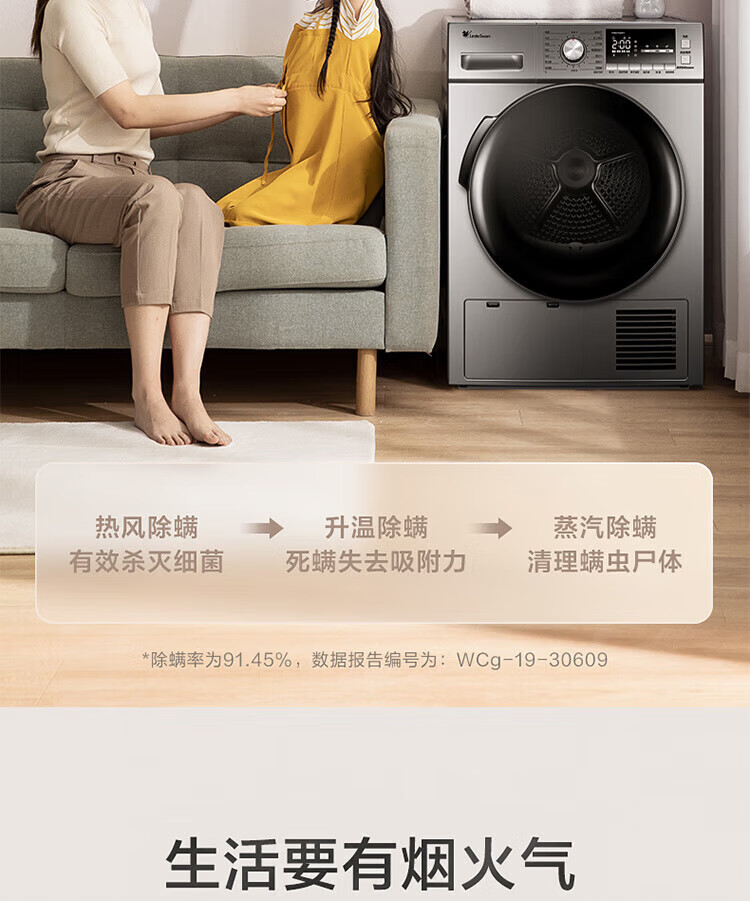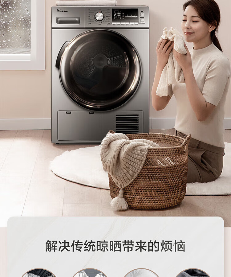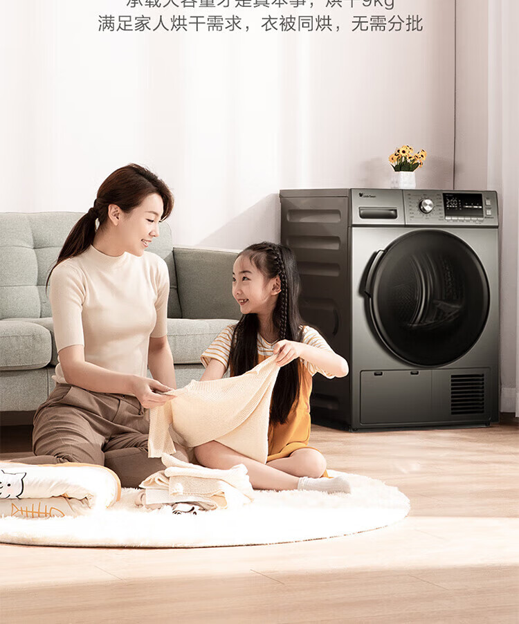 小天鹅(LittleSwan)TH90-H02WY 烘干机 家用干衣机 热泵式紫外线除菌 衣干即停 快烘20分钟 智能家电 以旧换新 9KG热泵性价比款