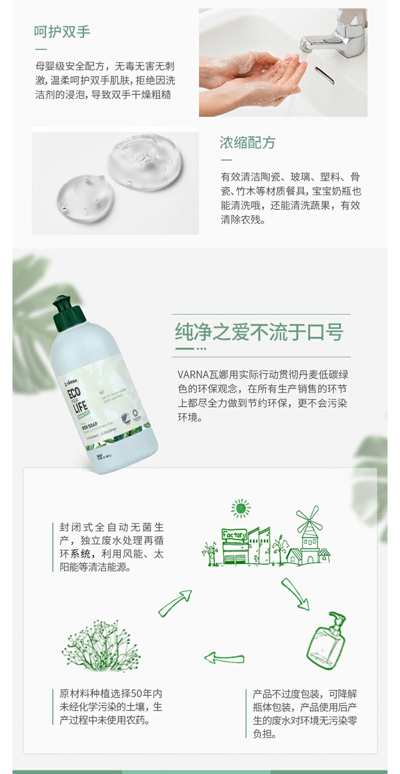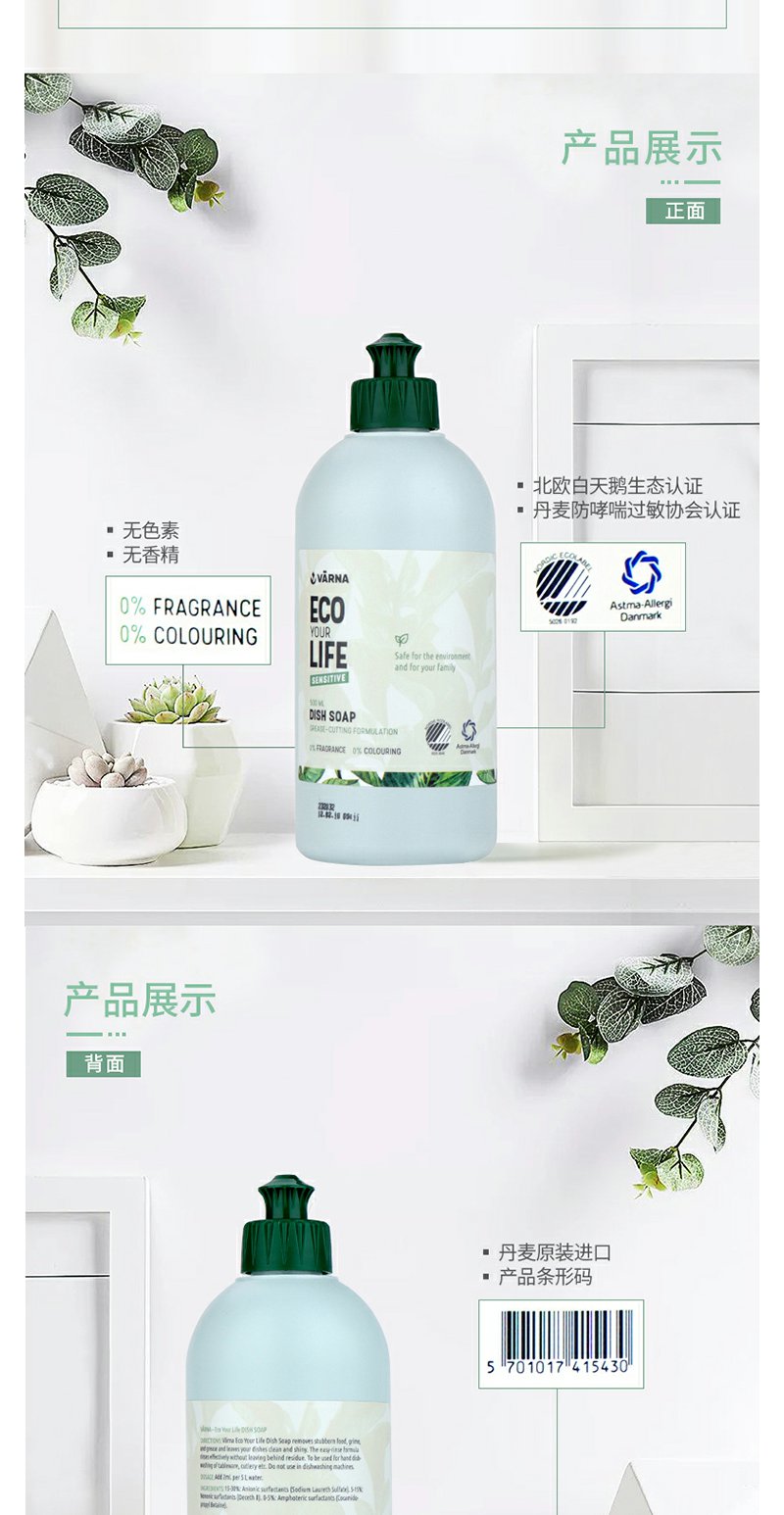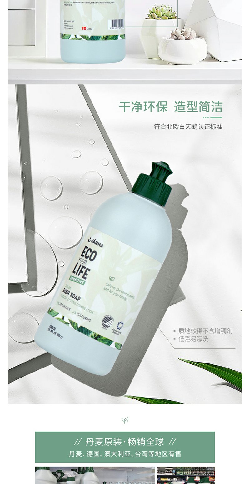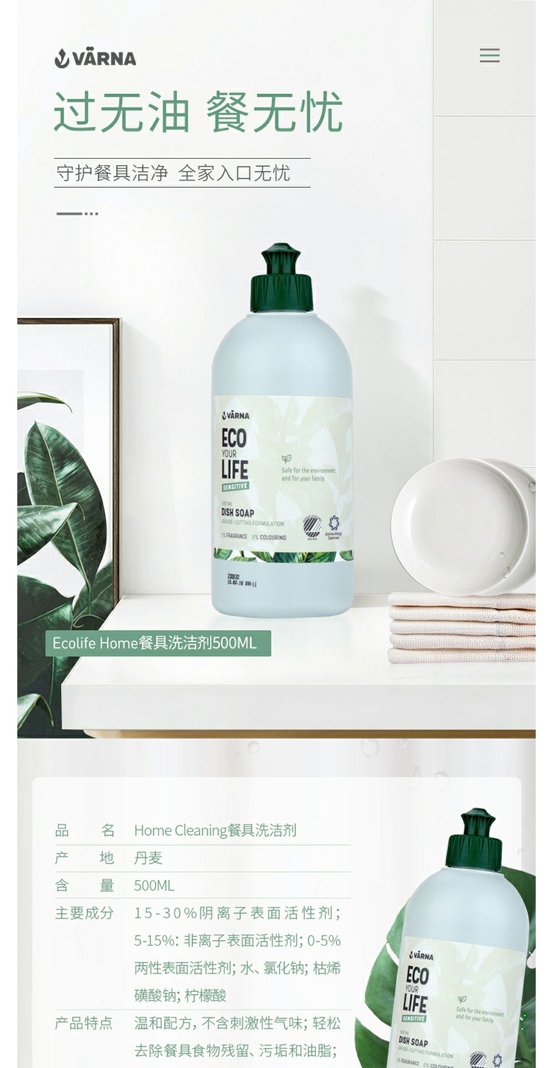 丹麦原装 VARNA/瓦娜 Ecolife home系列 餐具洗洁剂500ml