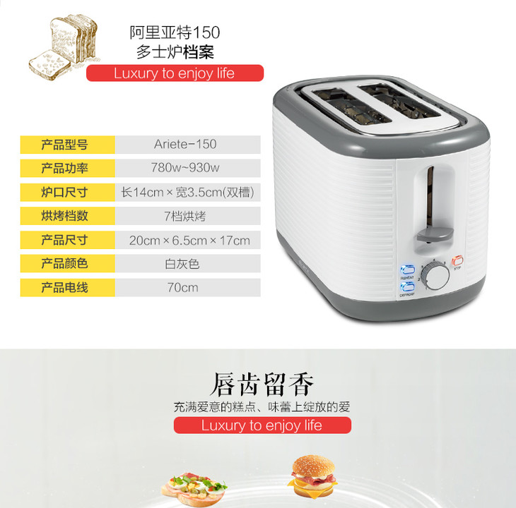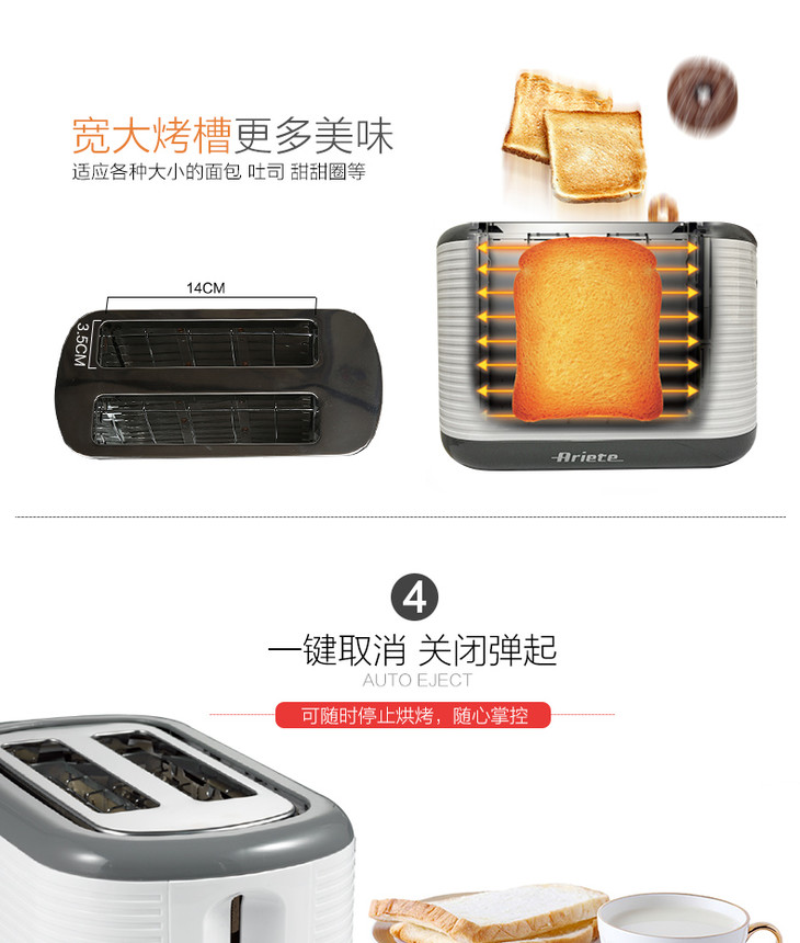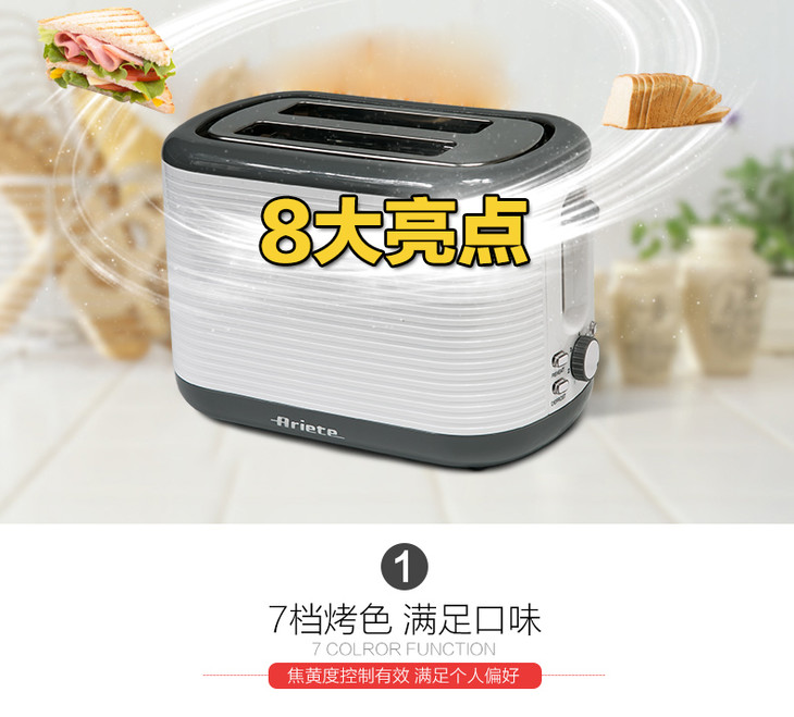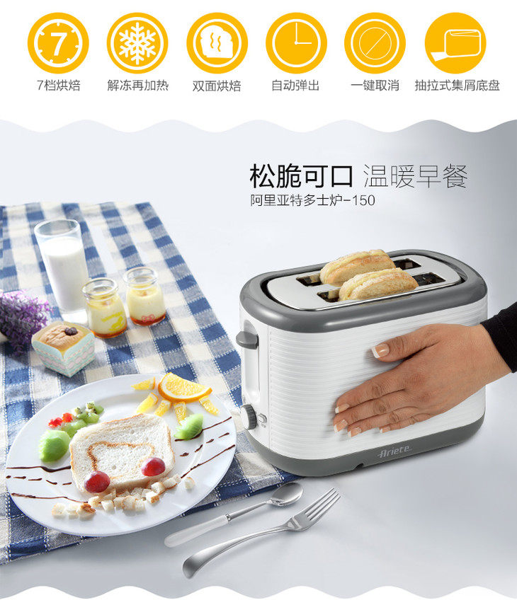 【阿里亚特】阿里亚特(Ariete)意大利烤面包机150家用多士炉吐司机白色
